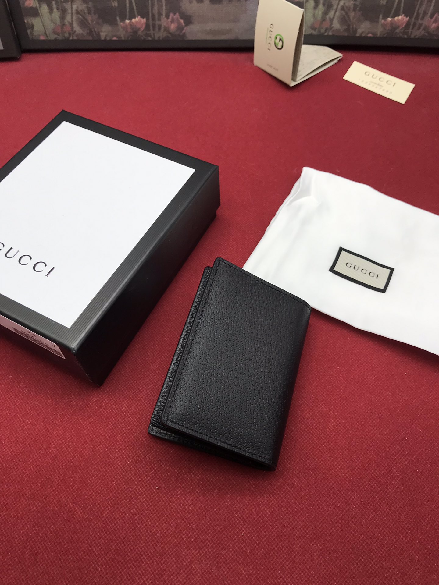 A fold-over card case, distinguished by our signature Double G hardware. Made in heat-stamped to achieve a boar effect, giving it a textured appearance