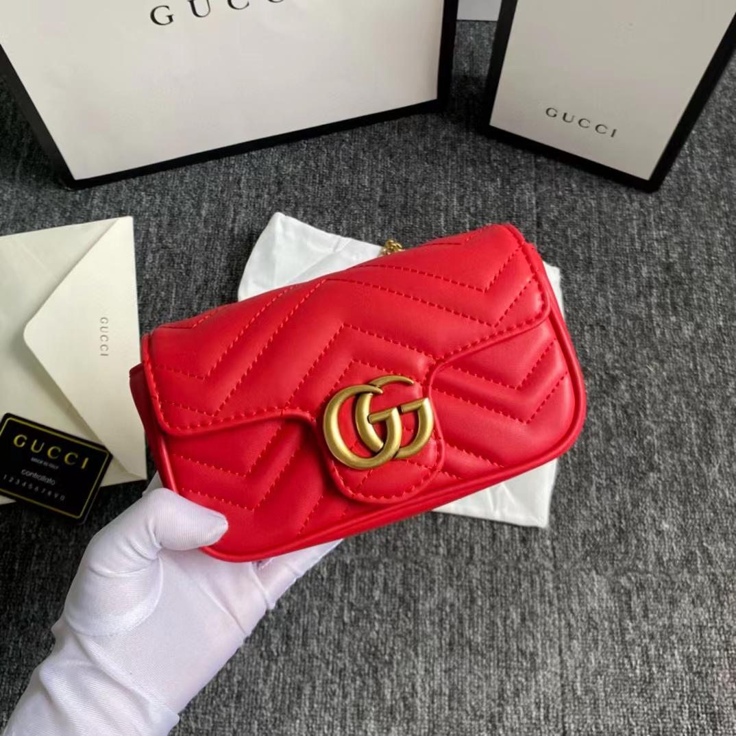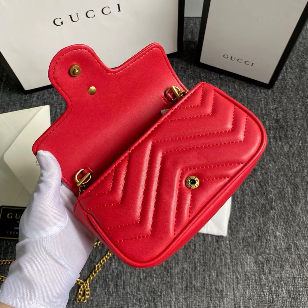 Replica Gucci GG Marmont Leather Super Mini Bag Red For Women – 476433 DTDCT 6433