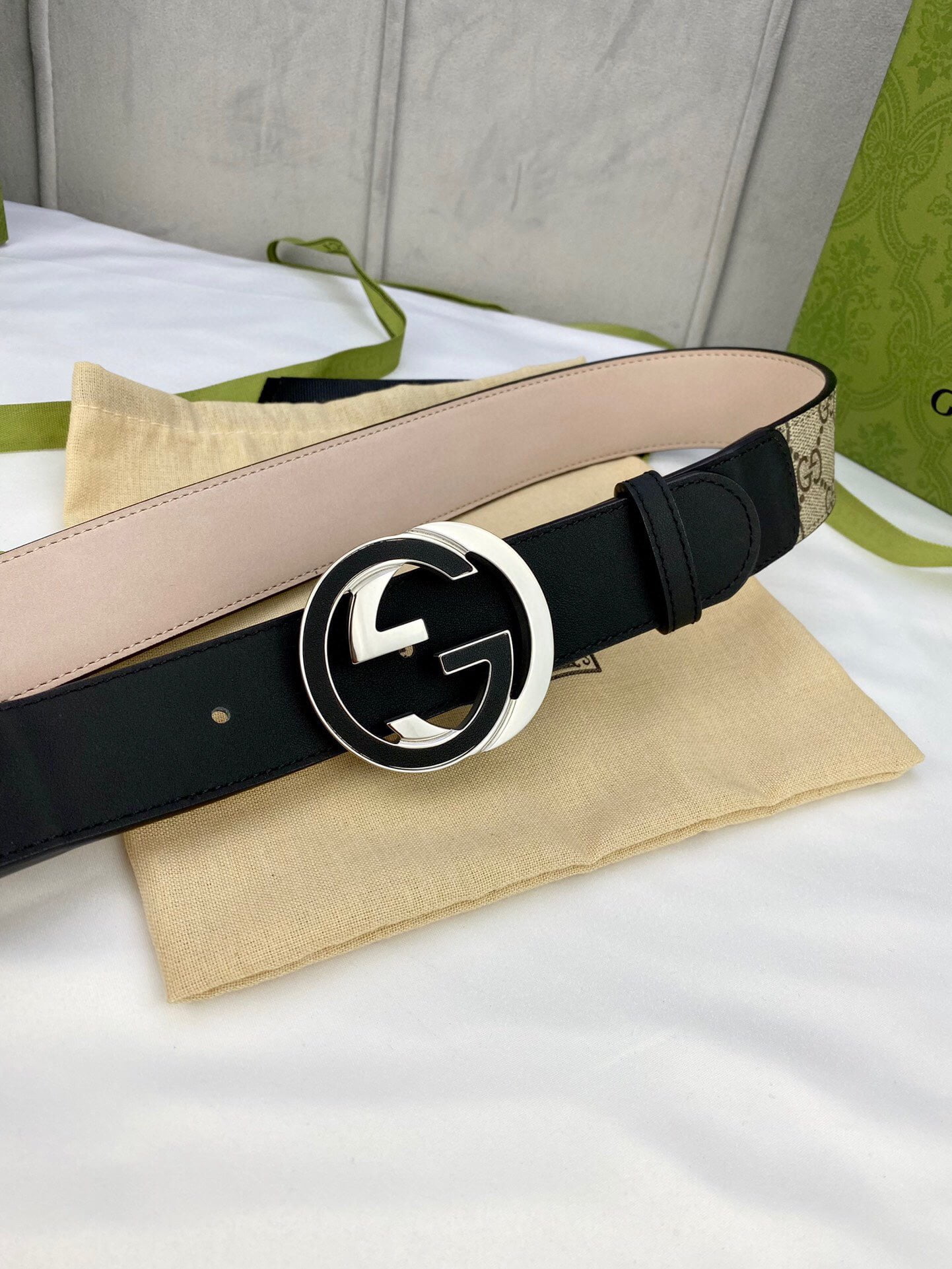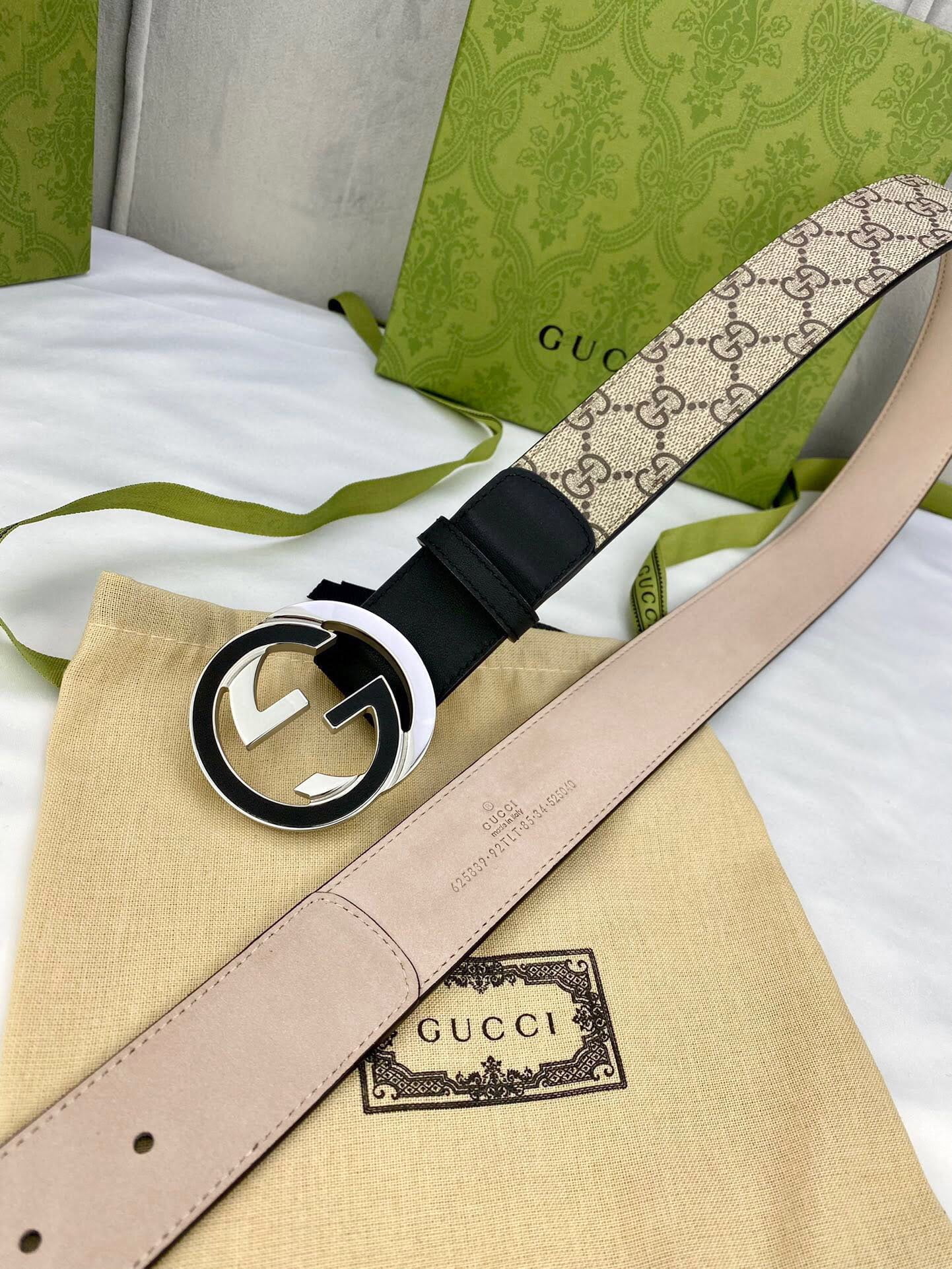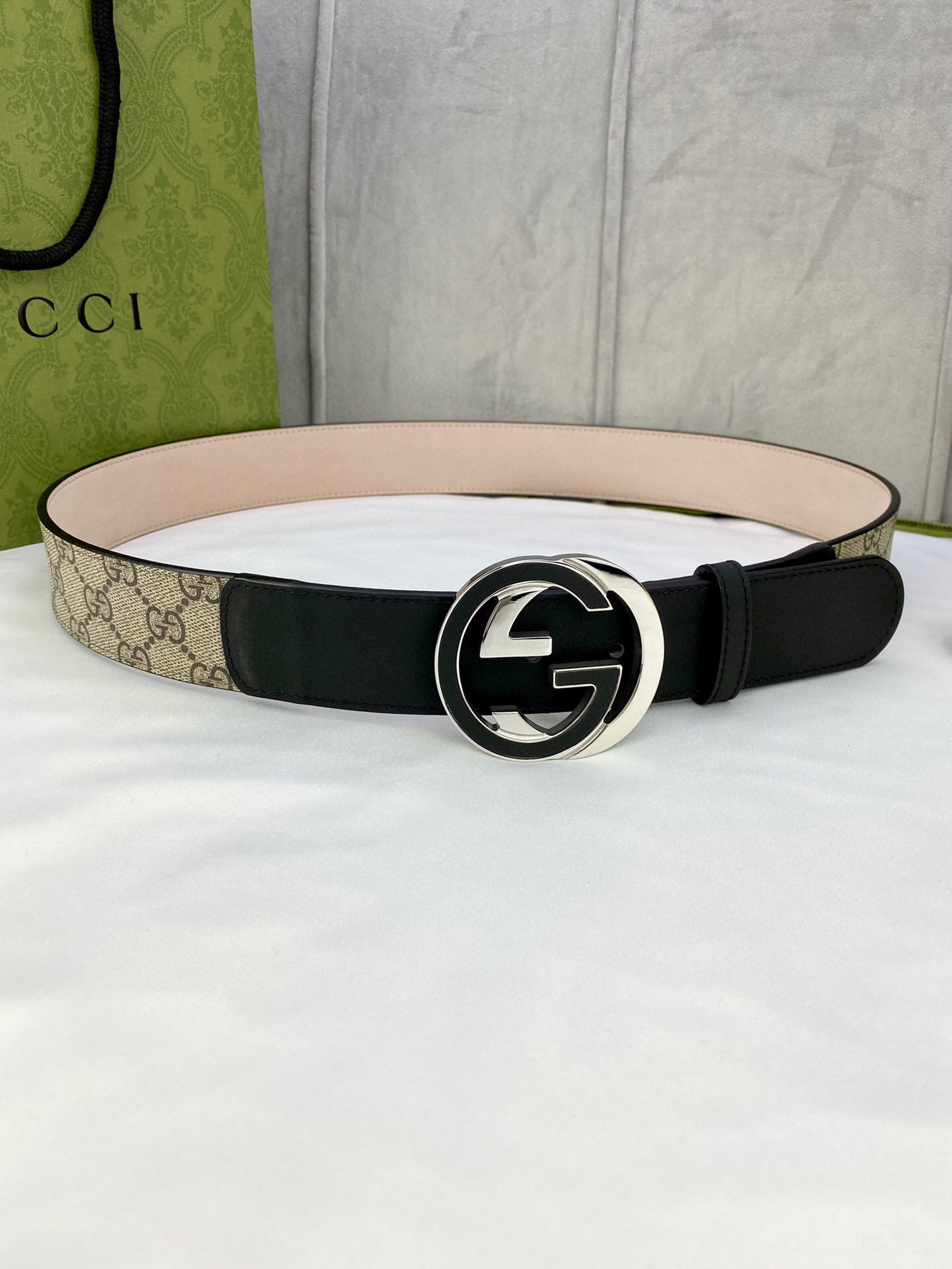Gucci GG Supreme Belt With Interlocking G Buckle Beige/Ebony GG Supreme And Black For Women, Women Belt