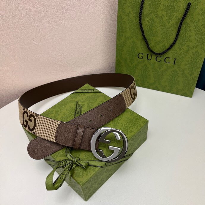 1:1 Replica Gucci GG Supreme Belt With Interlocking G Buckle Camel And Ebony Jumbo GG Canvas And Brown For Women, Women Belt