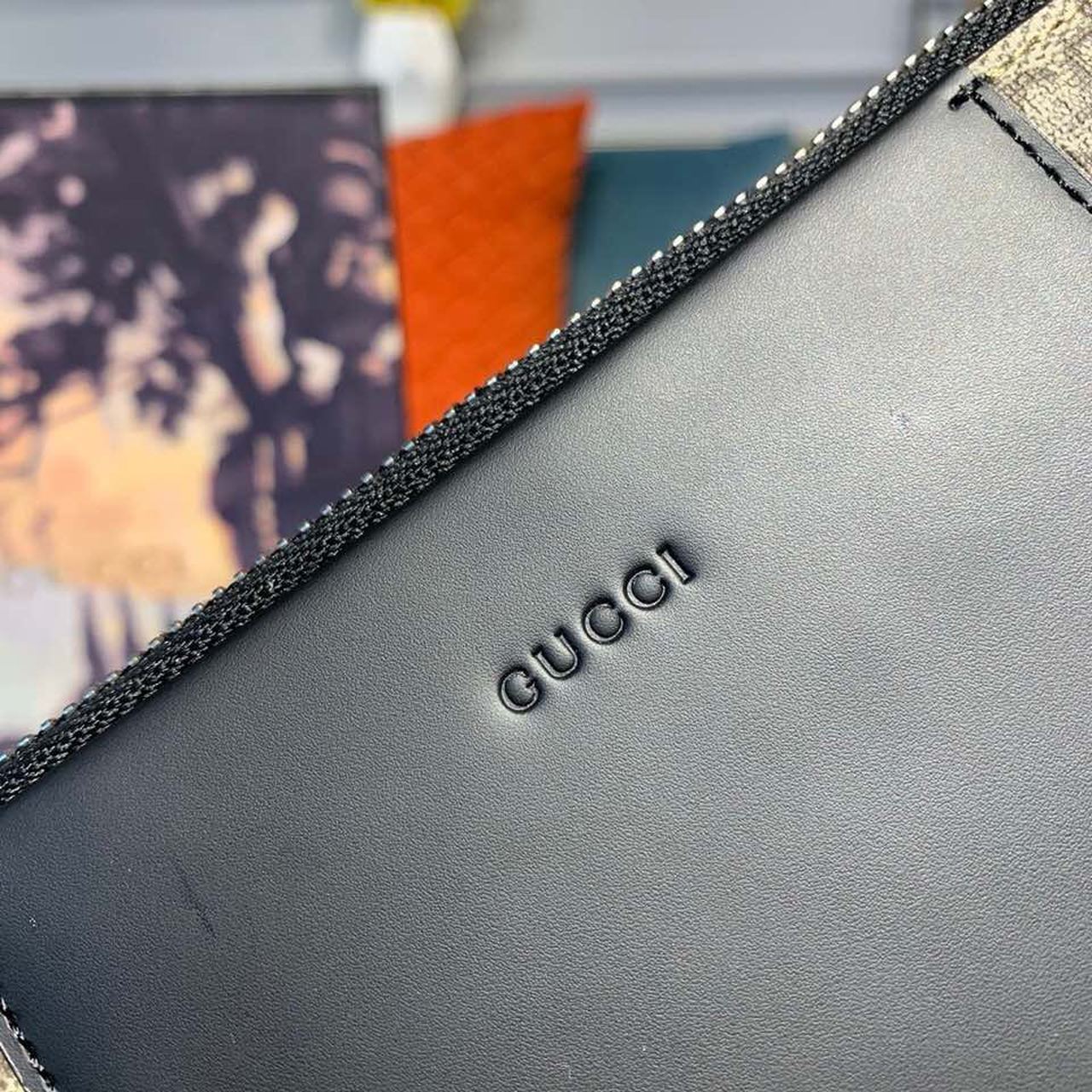 A slim pouch made in GG Supreme canvas with a Gucci embossed detail.