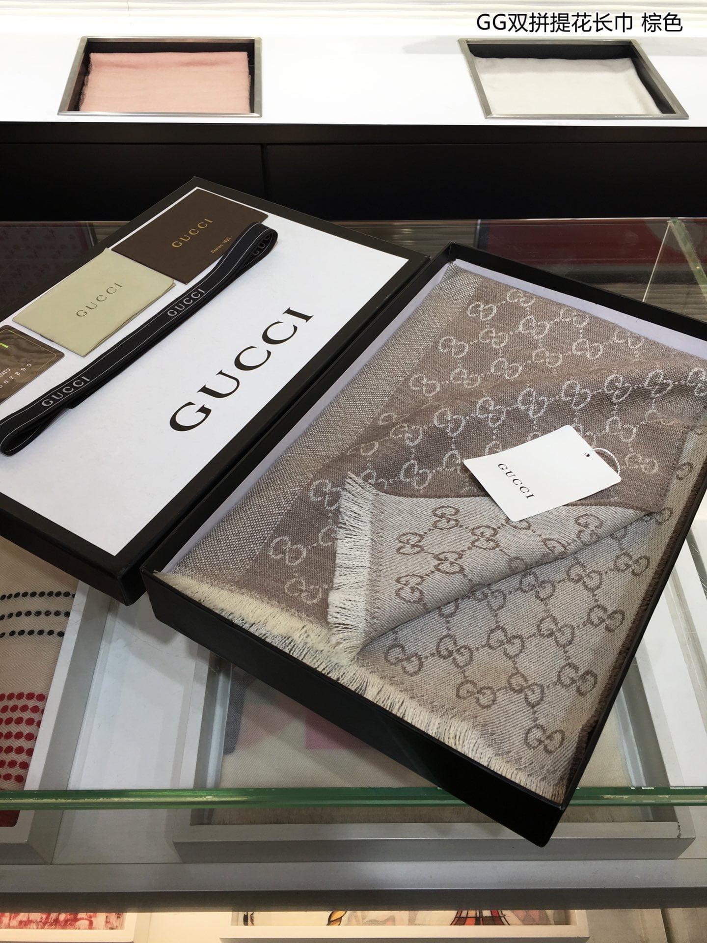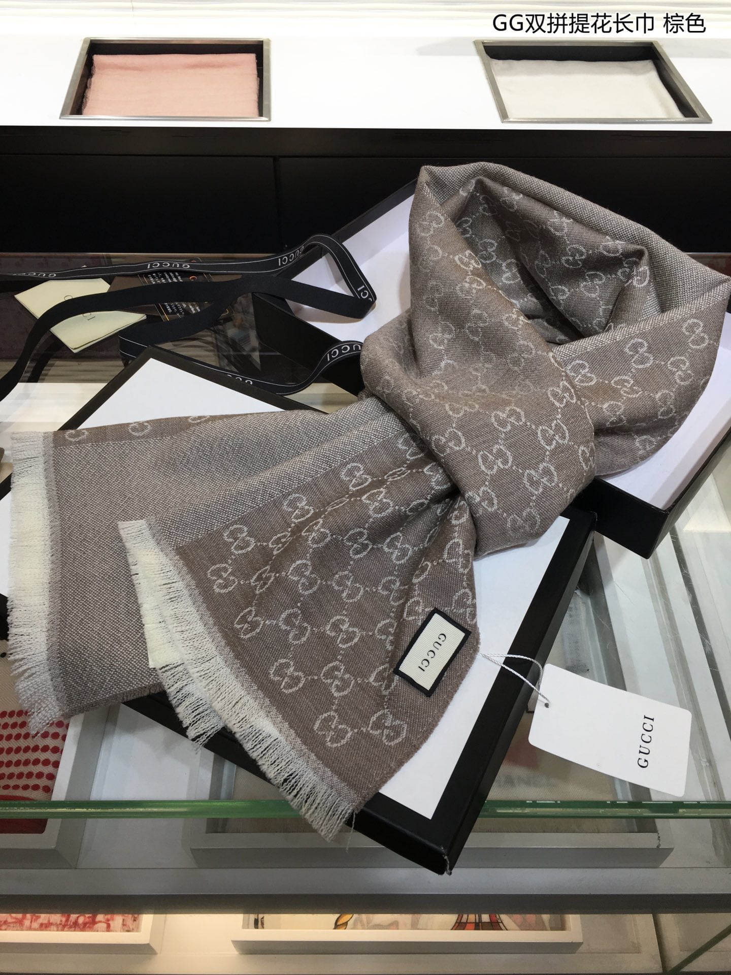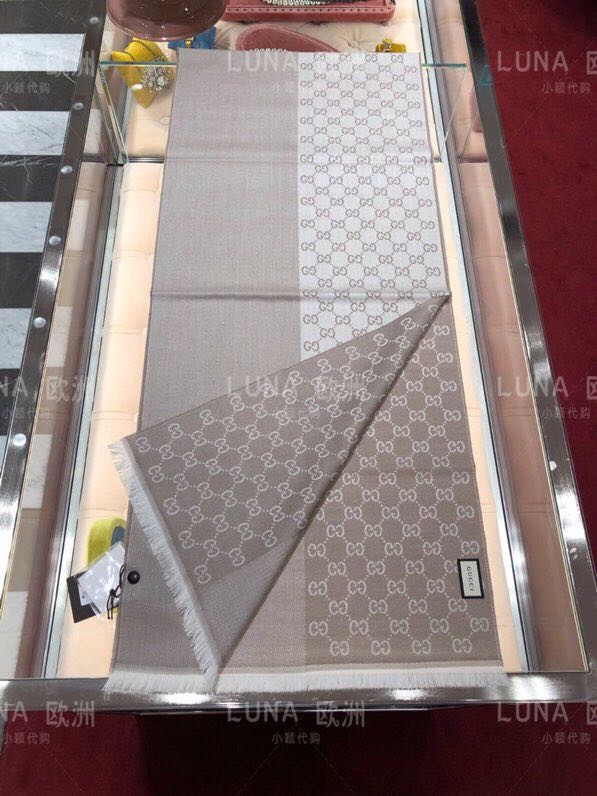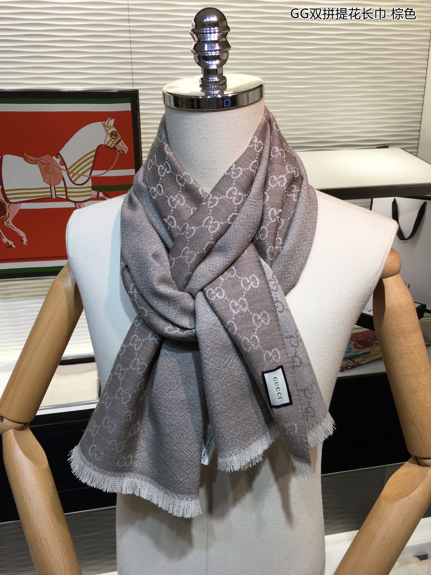 Gucci GG Wool Jacquard Scarf Grey 71in/180cm