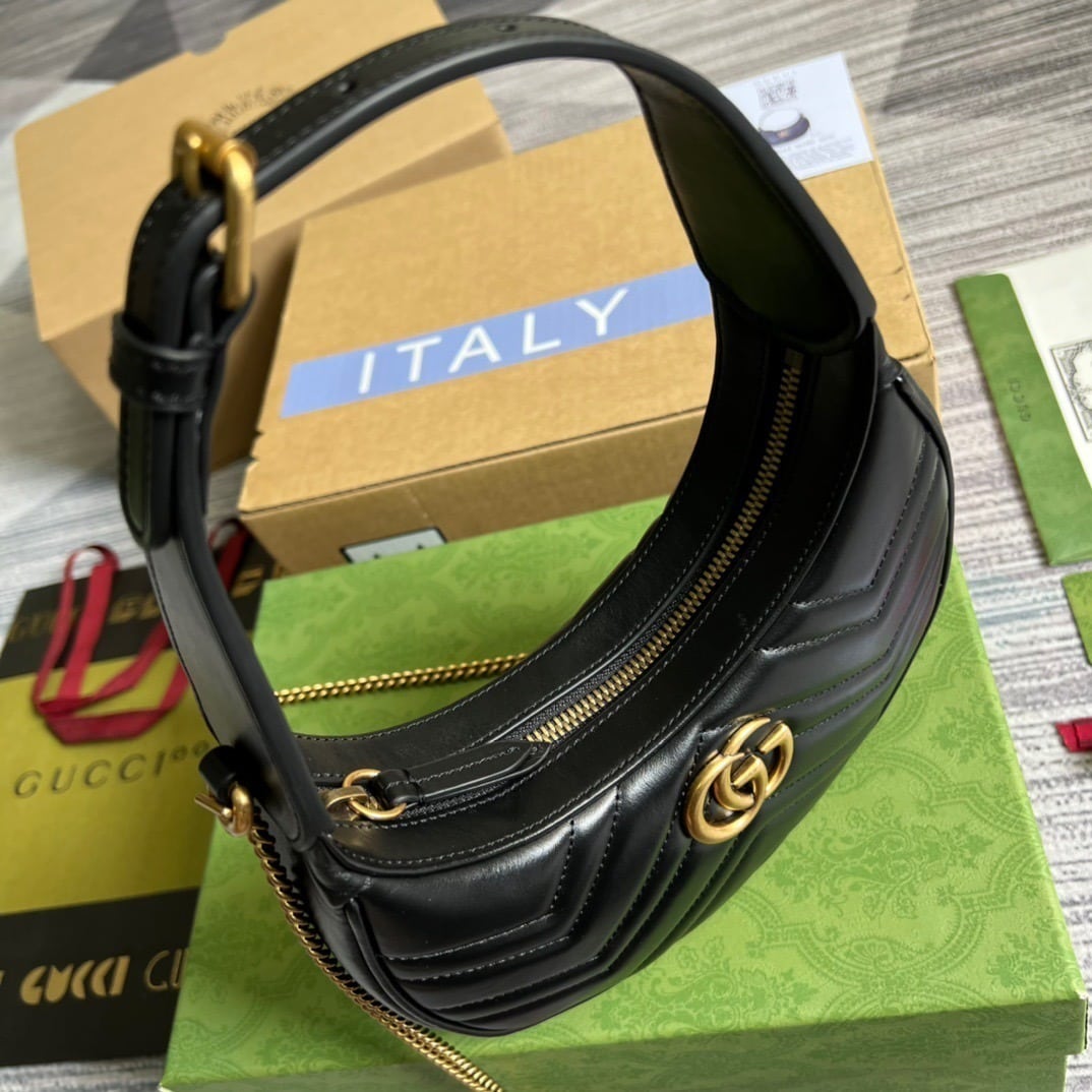 Gucci Marmont Half Moon Shaped Mini Bag Black For Women, Women’s Bags 8.5in/22cm GG 699514 DTDHT 1000