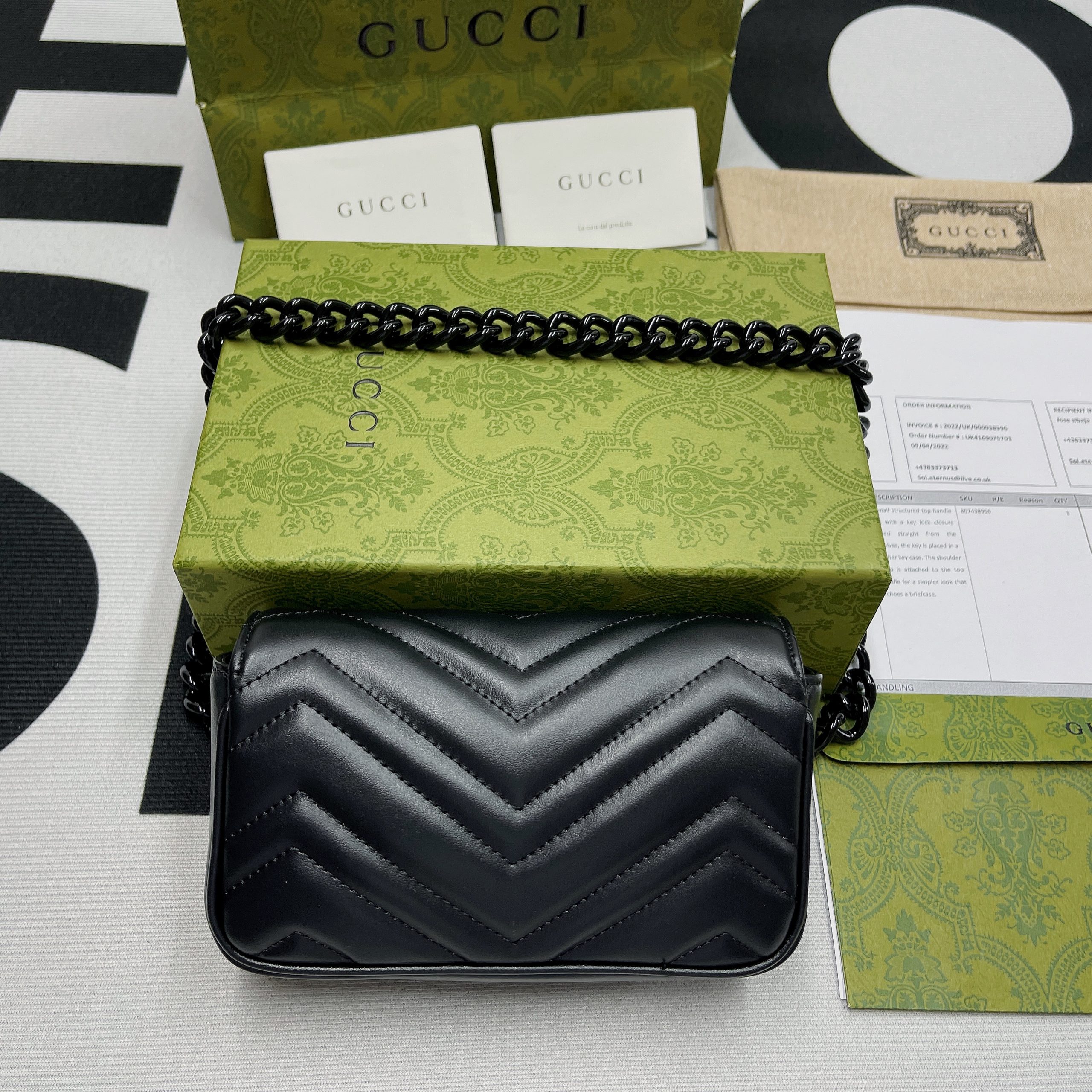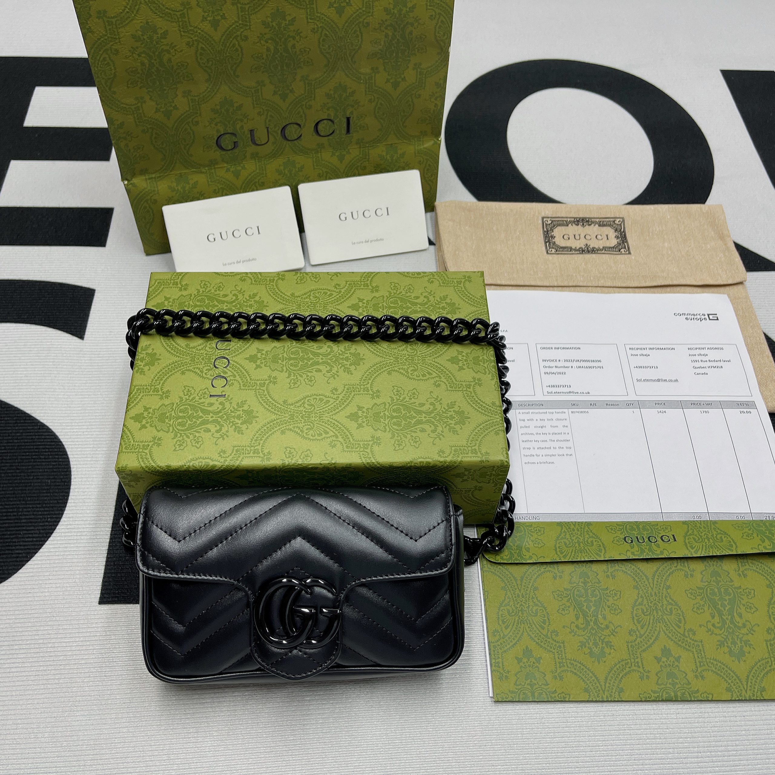 Gucci Marmont Super Mini Bag Black For Women, Women’s Bags 6.2in/17cm GG
