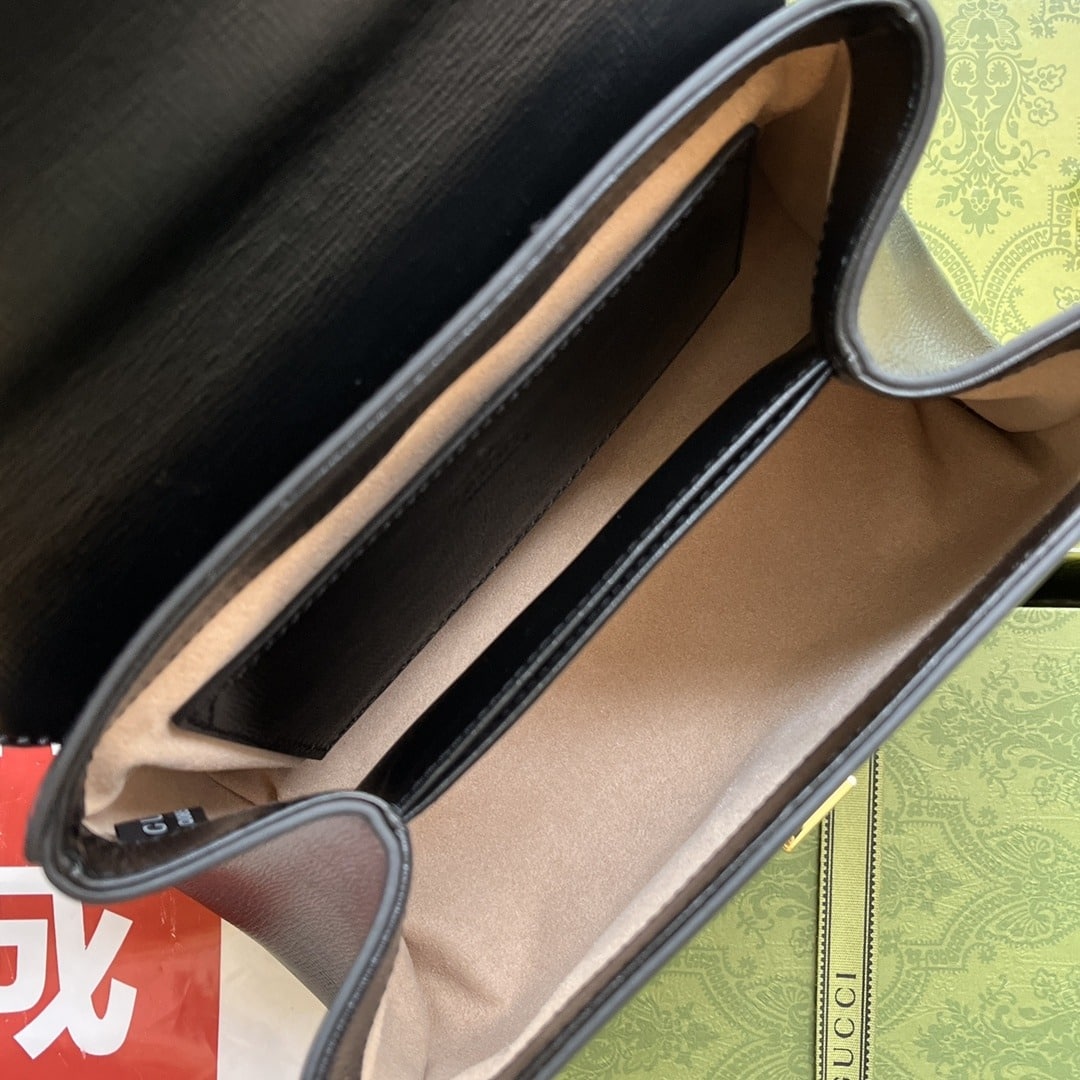 The Gucci Horsebit 1955 is presented as a top handle bag. The collection unifies details first introduced on the original bag that inspired the line from over six decades ago with a modern spirit, highlighting the Horsebit. Part of Gucci’s genetic code, the double ring and bar design has been established as one of the most distinctive elements among the House symbols borrowed from the equestrian world.