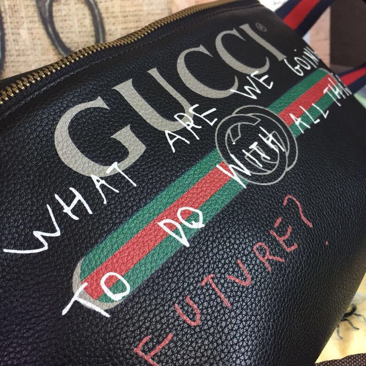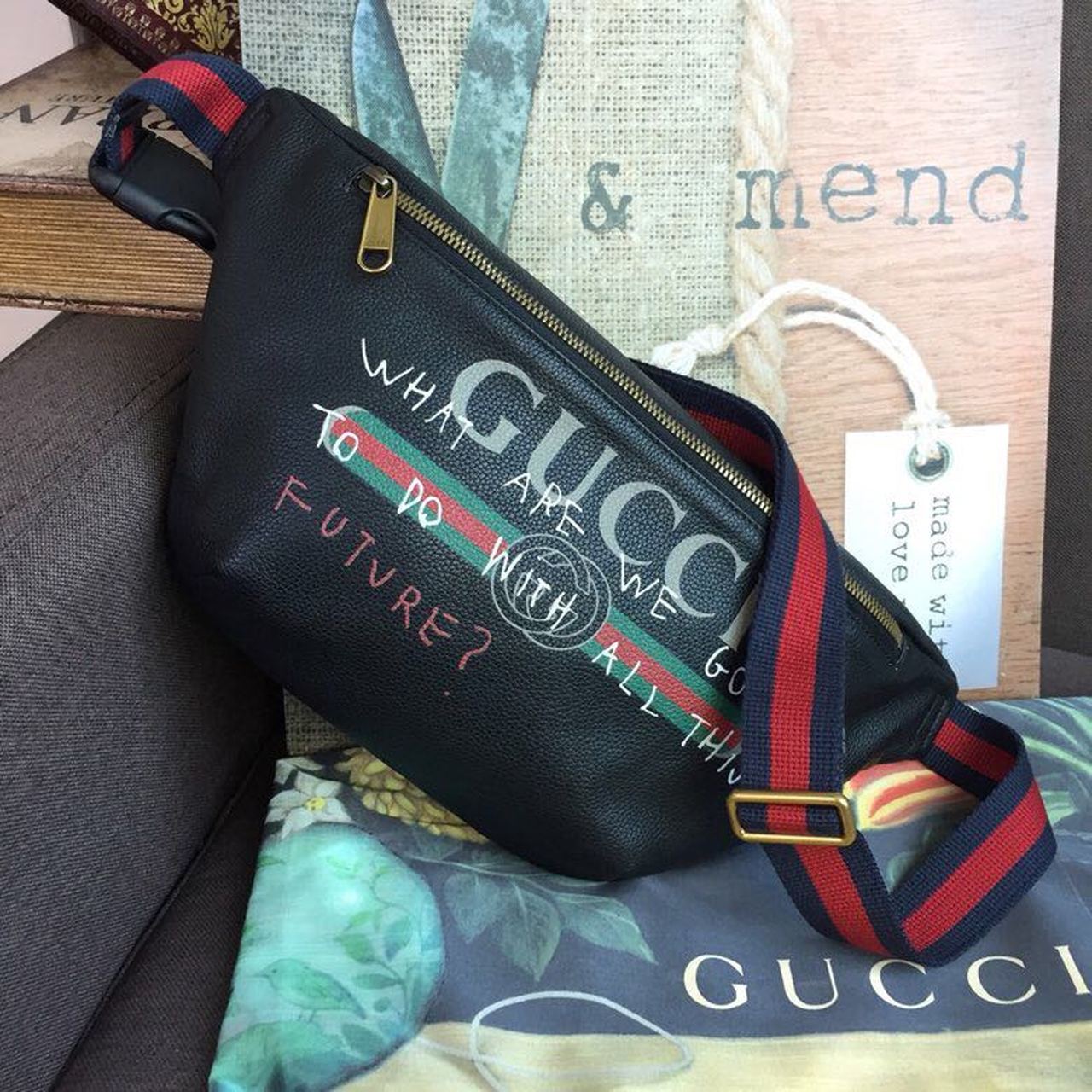 Gucci Print Waist Belt Bag Black For Women And Men 15in/39cm GG 530412