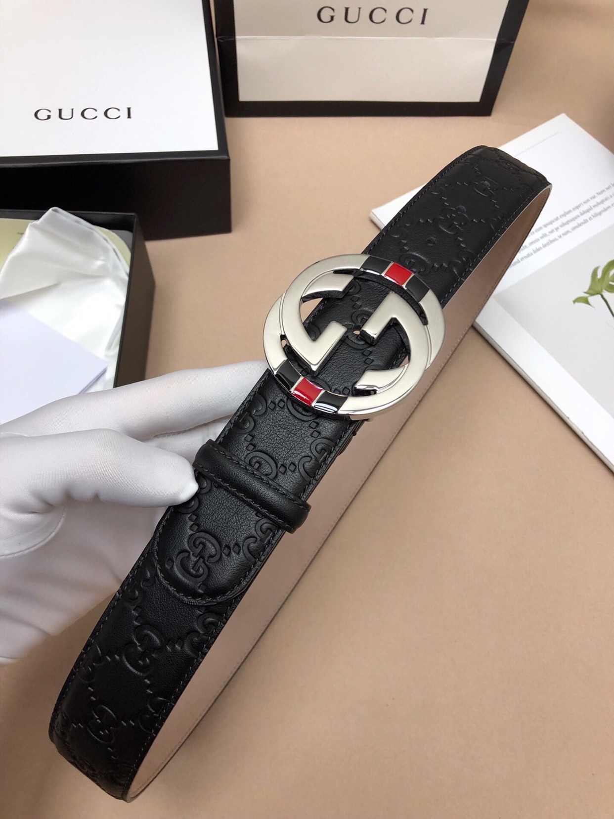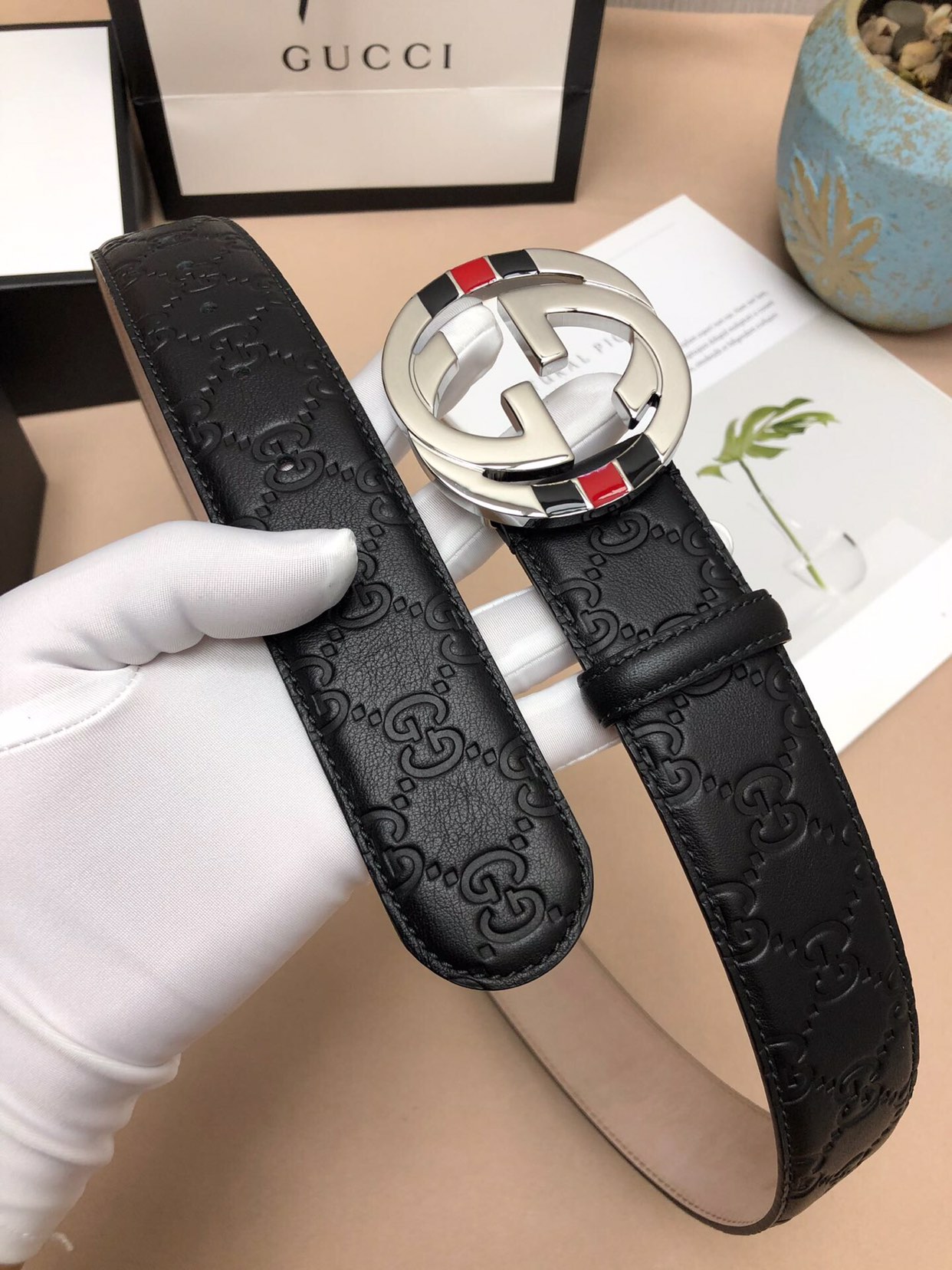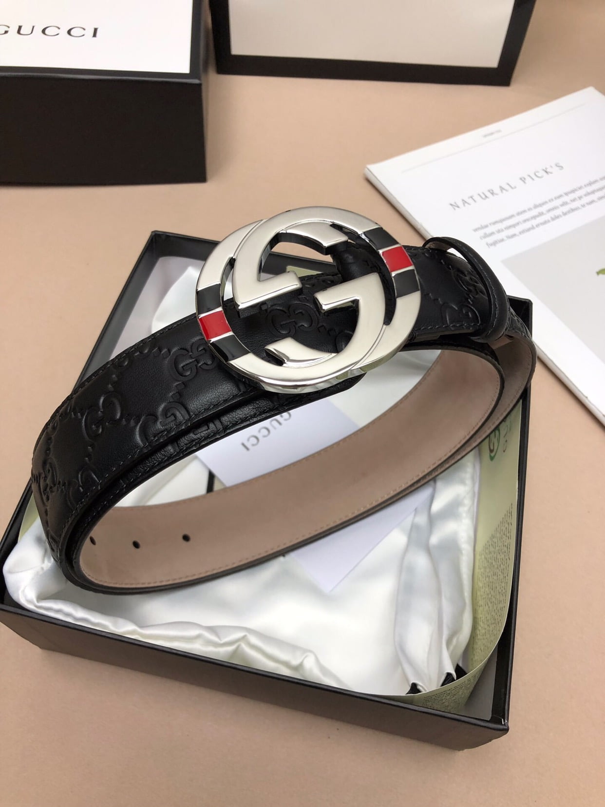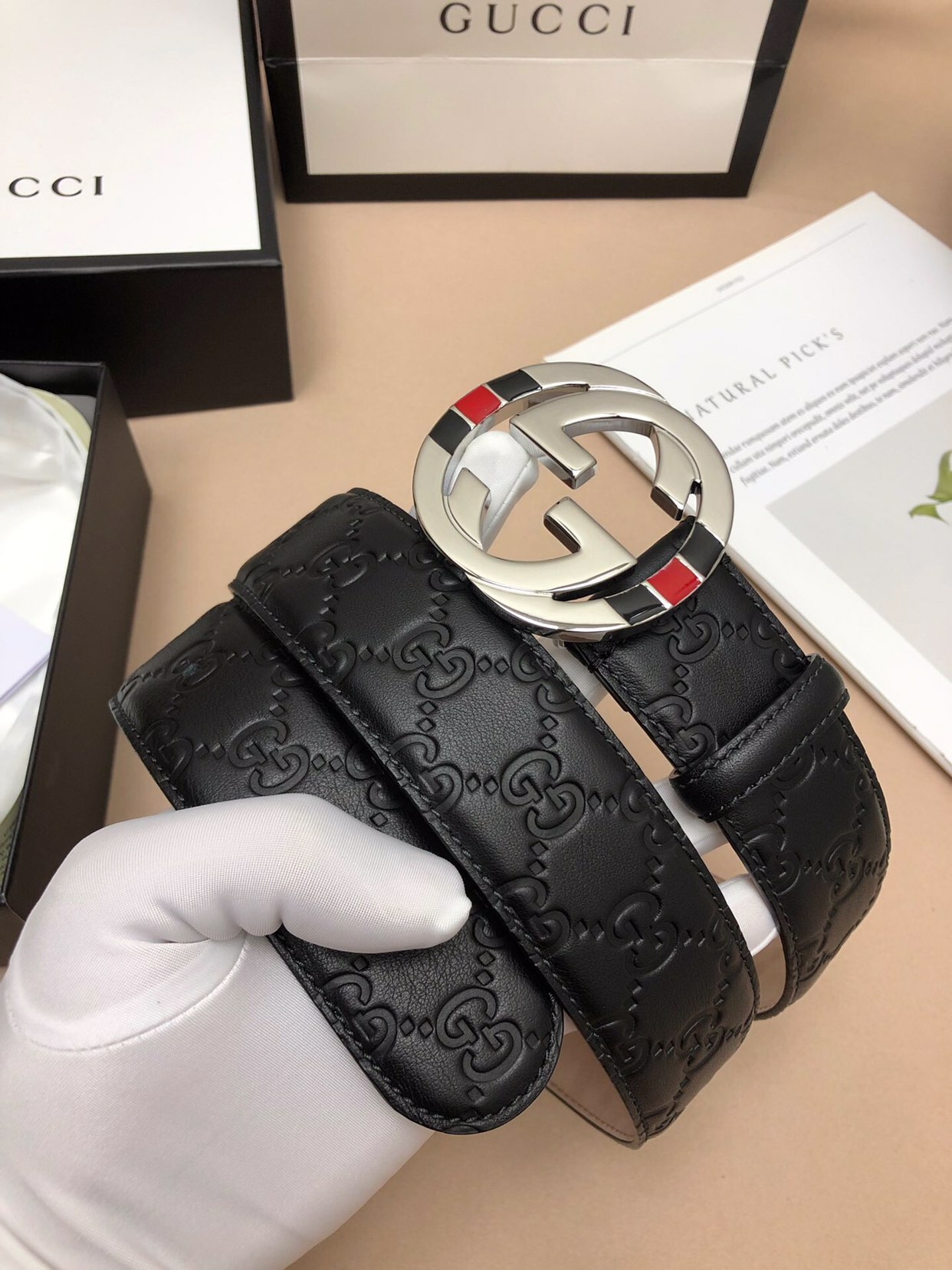 The Interlocking G buckle belt, made in heat debossed Gucci Signature with a defined print and firm texture.