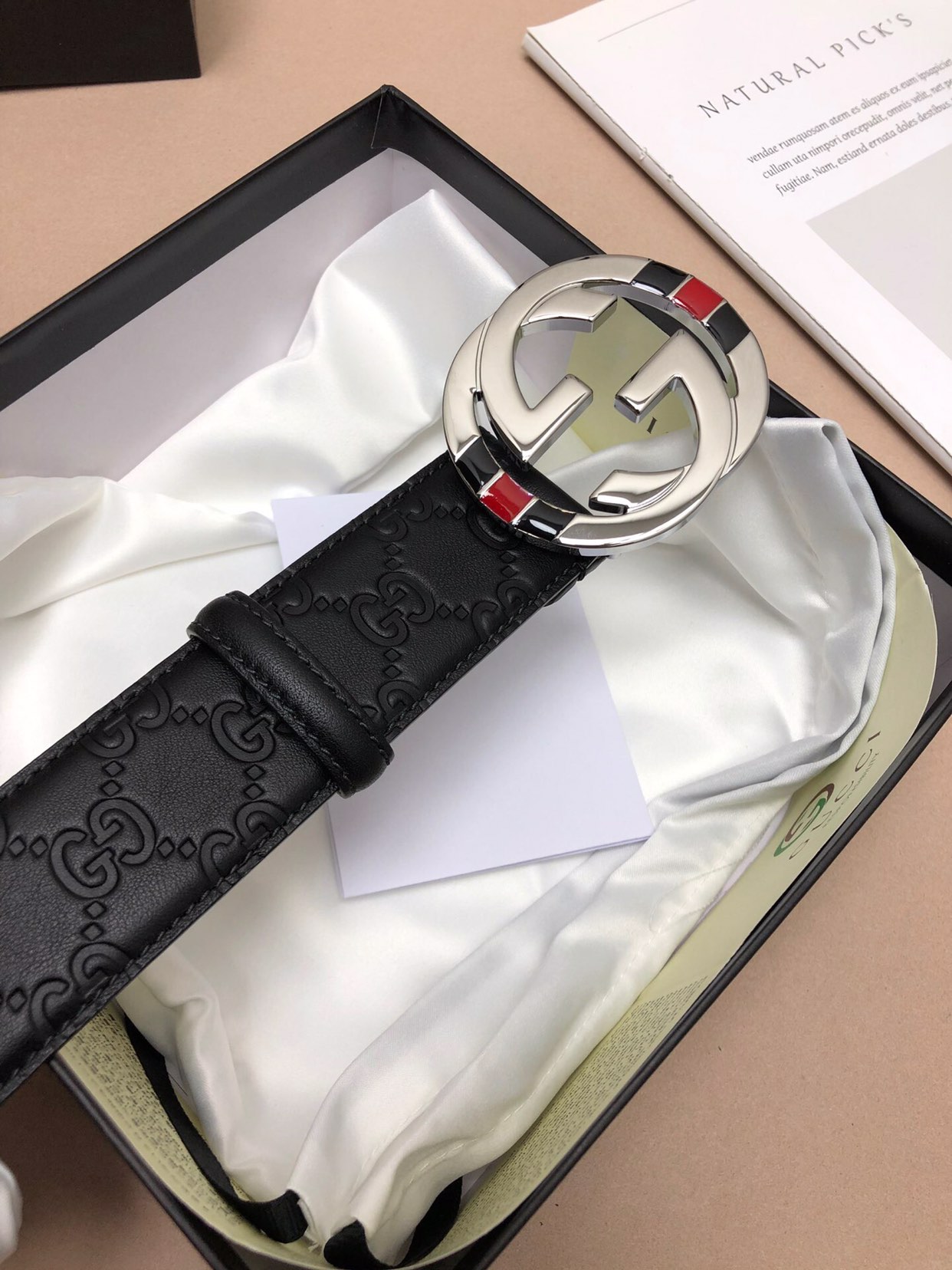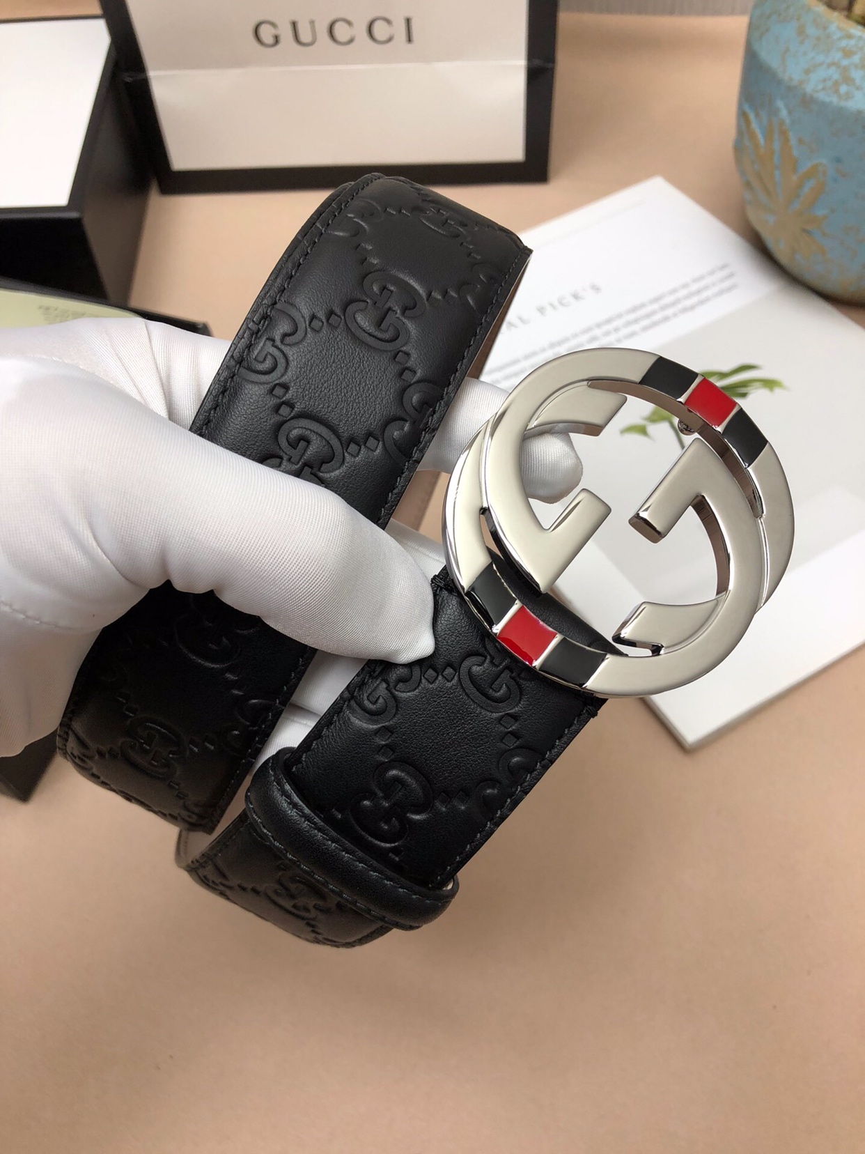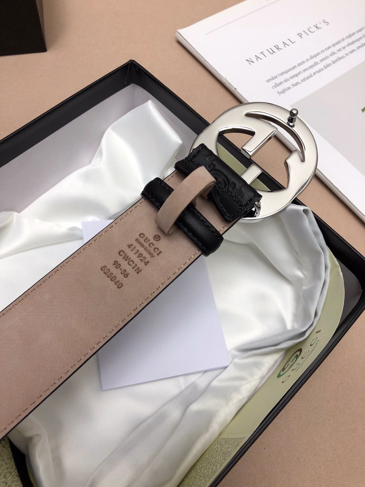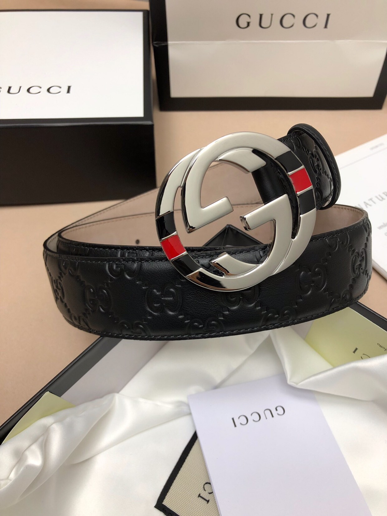 The Interlocking G buckle belt, made in heat debossed Gucci Signature with a defined print and firm texture.