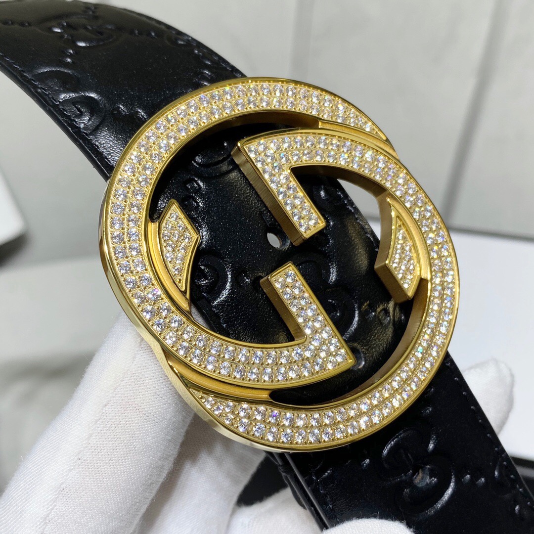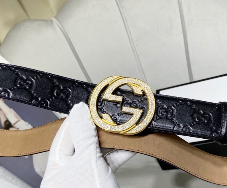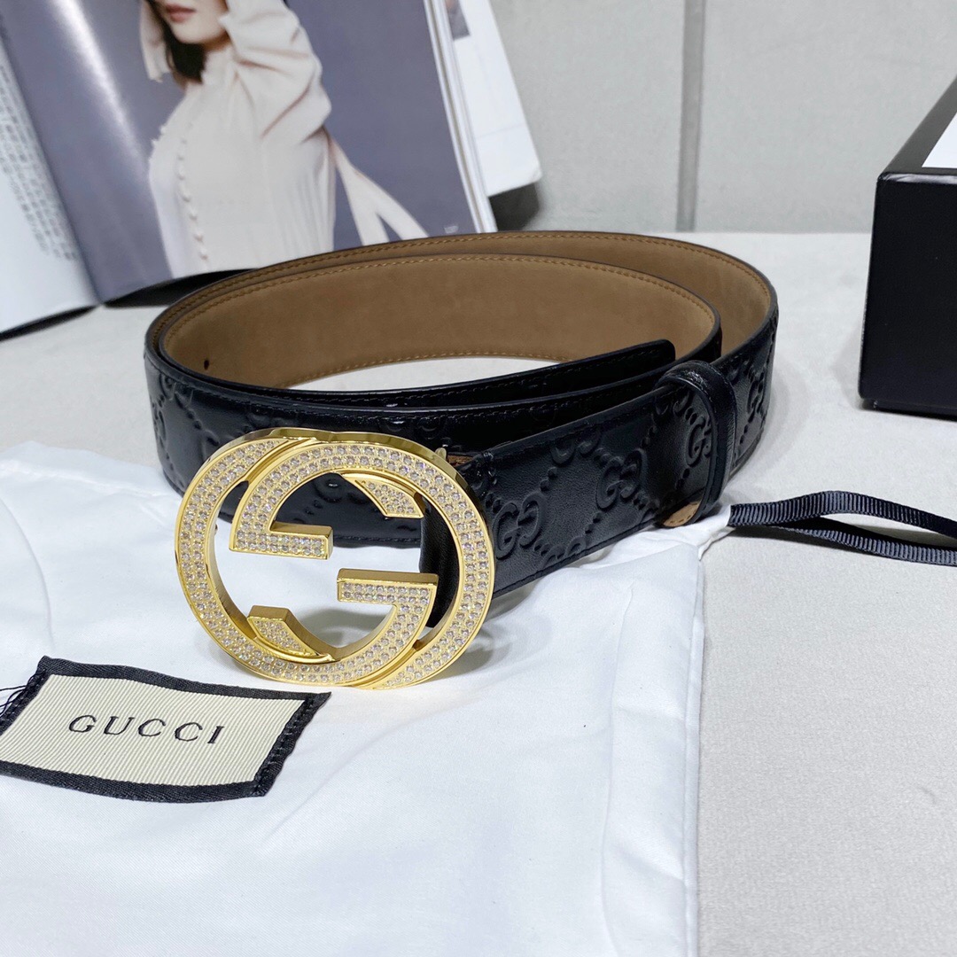 Gucci Signature Belt With Crystal Interlocking G Buckle Black For Women, Women Belt