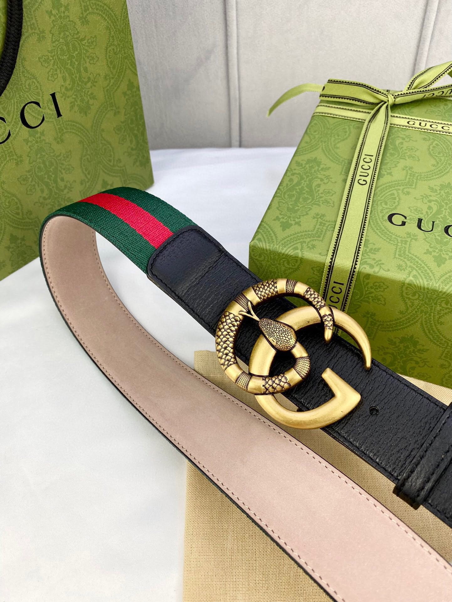 1:1 Replica Gucci Web Belt With Double G Snake Buckle Green/Red Web Fabric And Black For Women, Women Belt