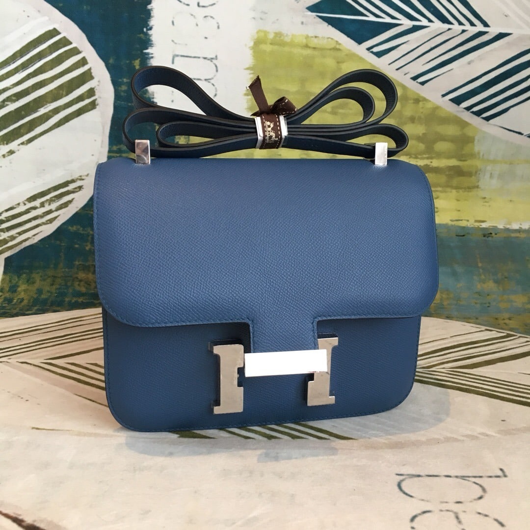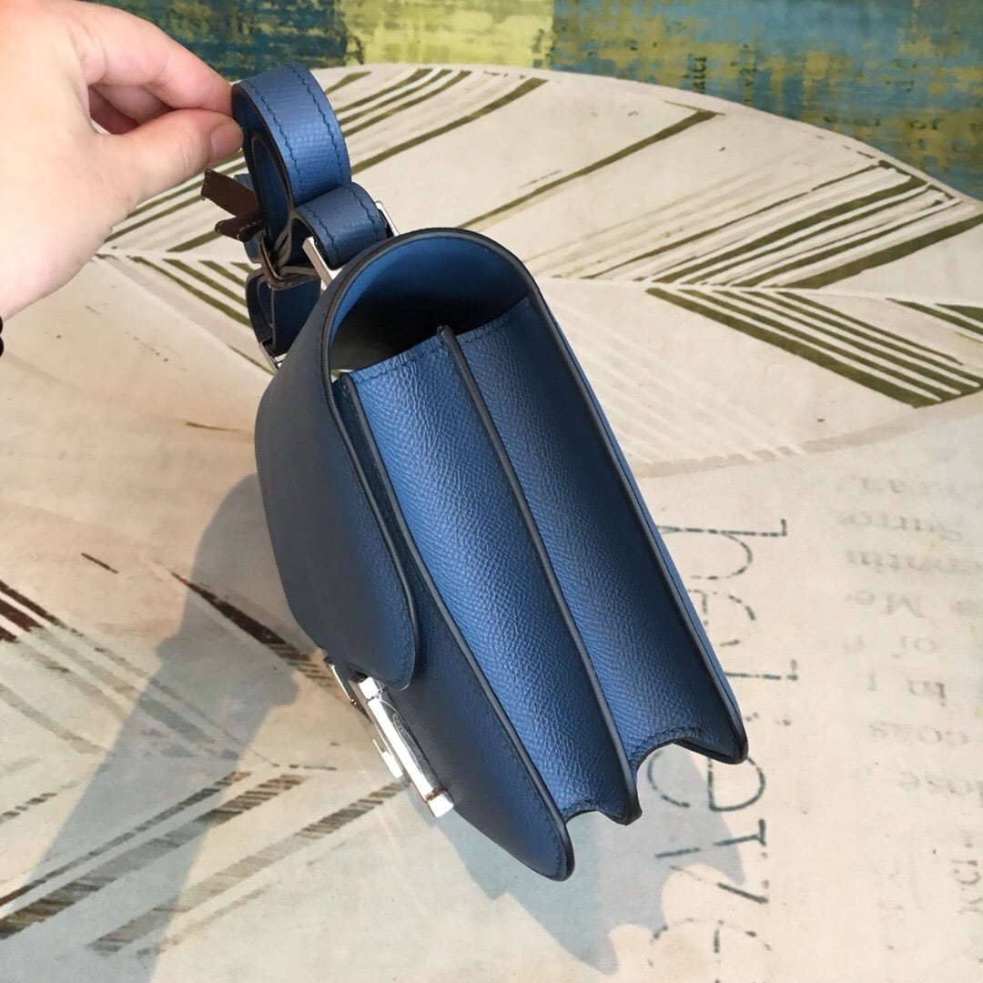 1:1 Replica Hermes Constance 18 Epsom Navy Blue For Women Silver Toned Hardware, Women’s Handbags, Shoulder Bags 7.1in/18cm