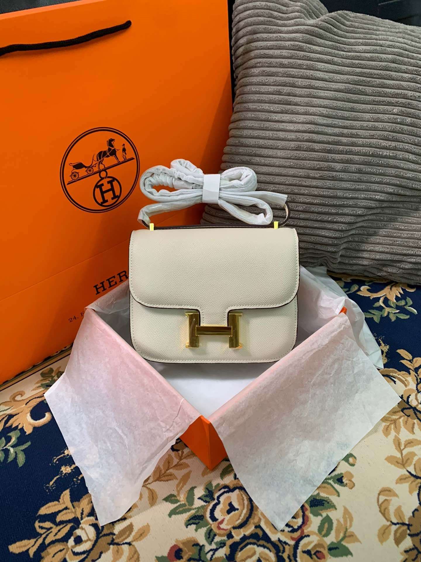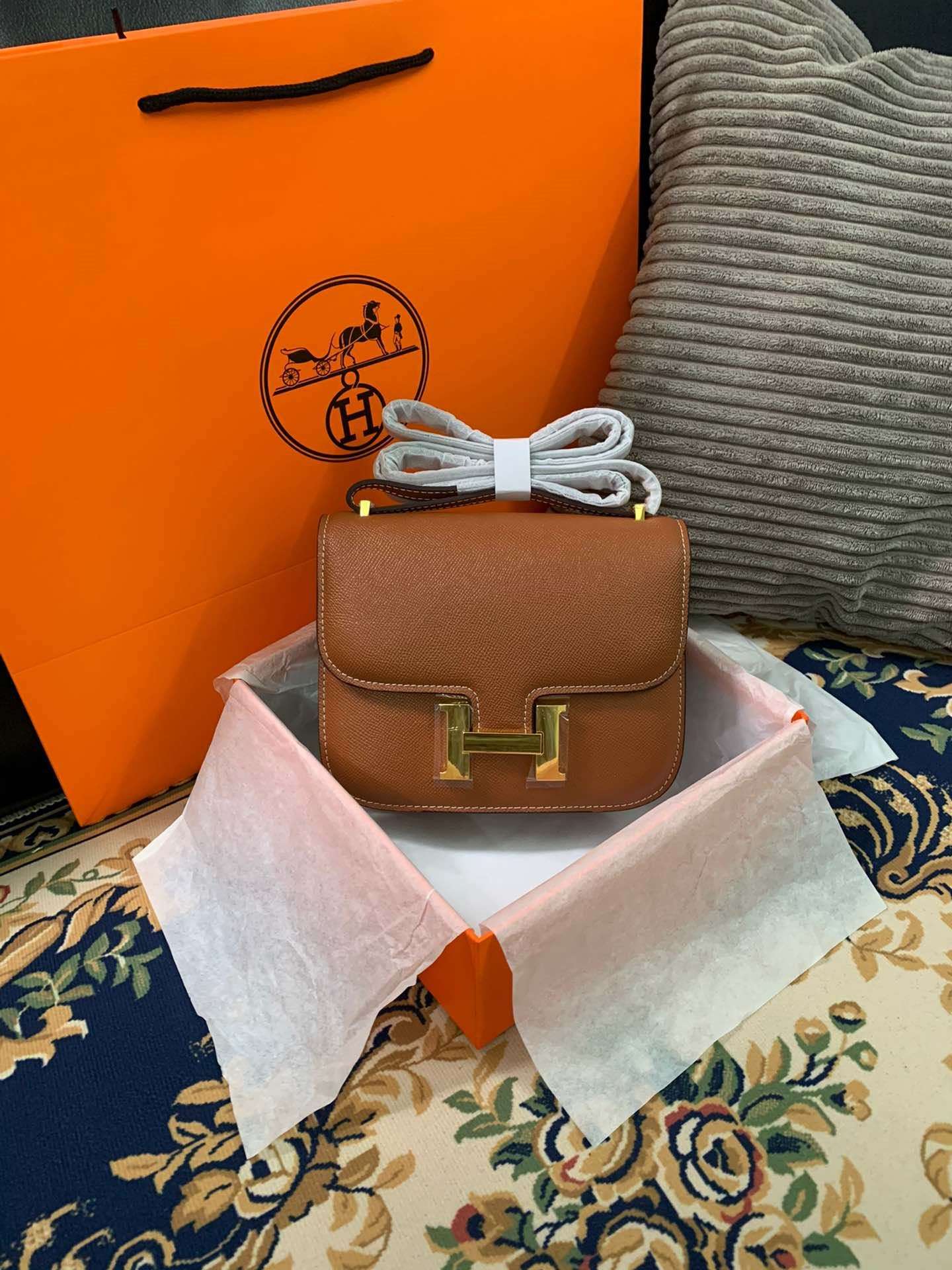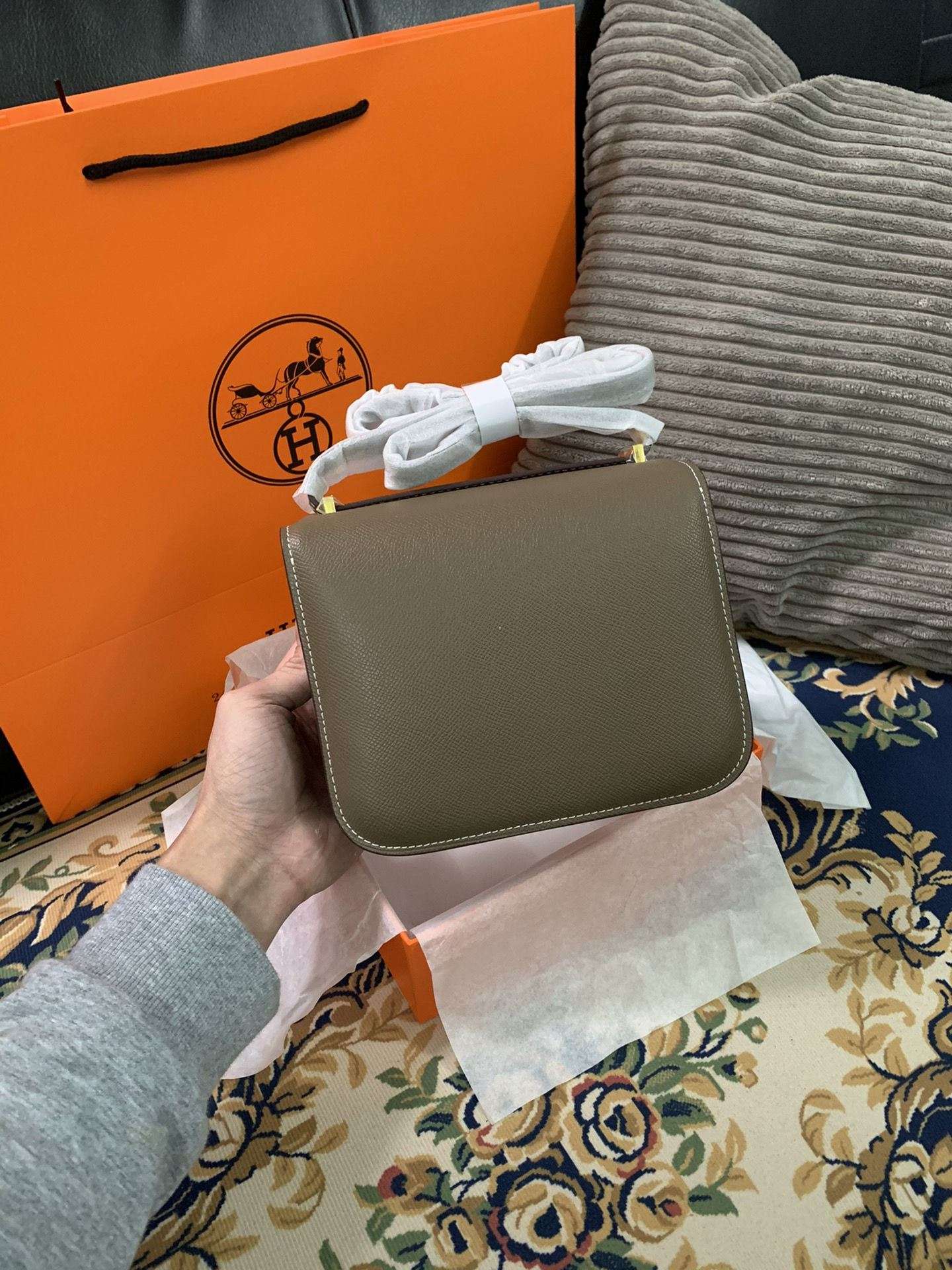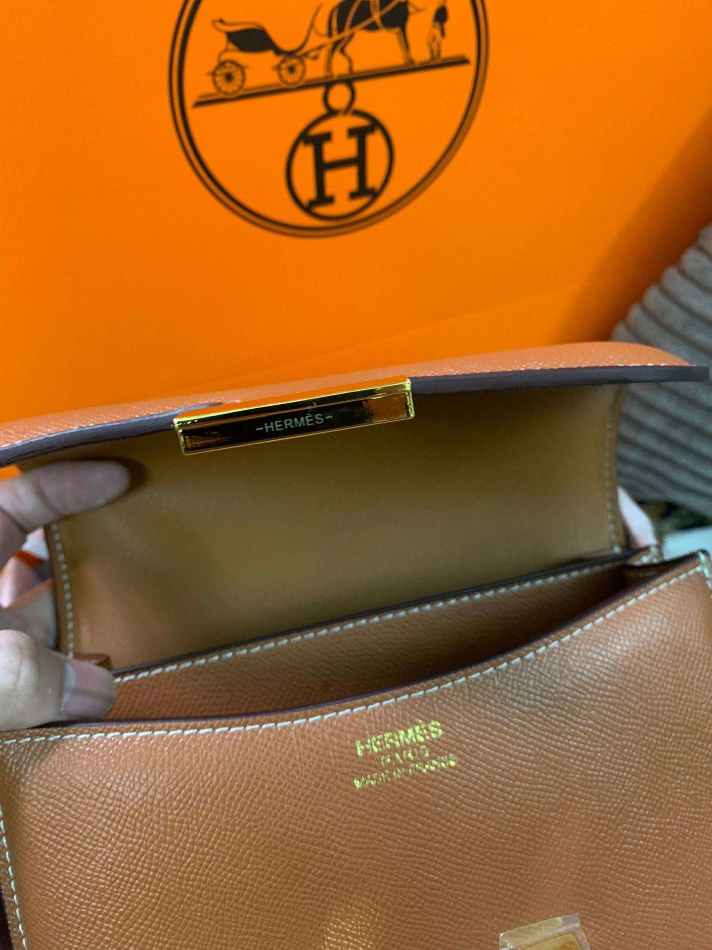 • Efficiency meets style in every Hermes bag, when sophistication is a must have, timeless attribute, as seen in this Constance shoulder bag. Featuring a smooth surface with a matte finish, gold-tone hardware, a foldover top with push-lock closure, interior compartments divided by a partition, an internal zipped pocket and a front centre logo stamp.