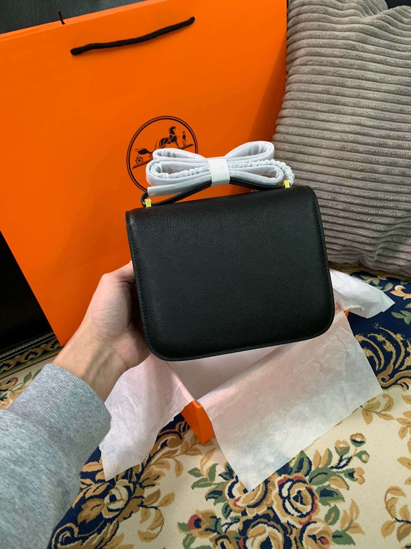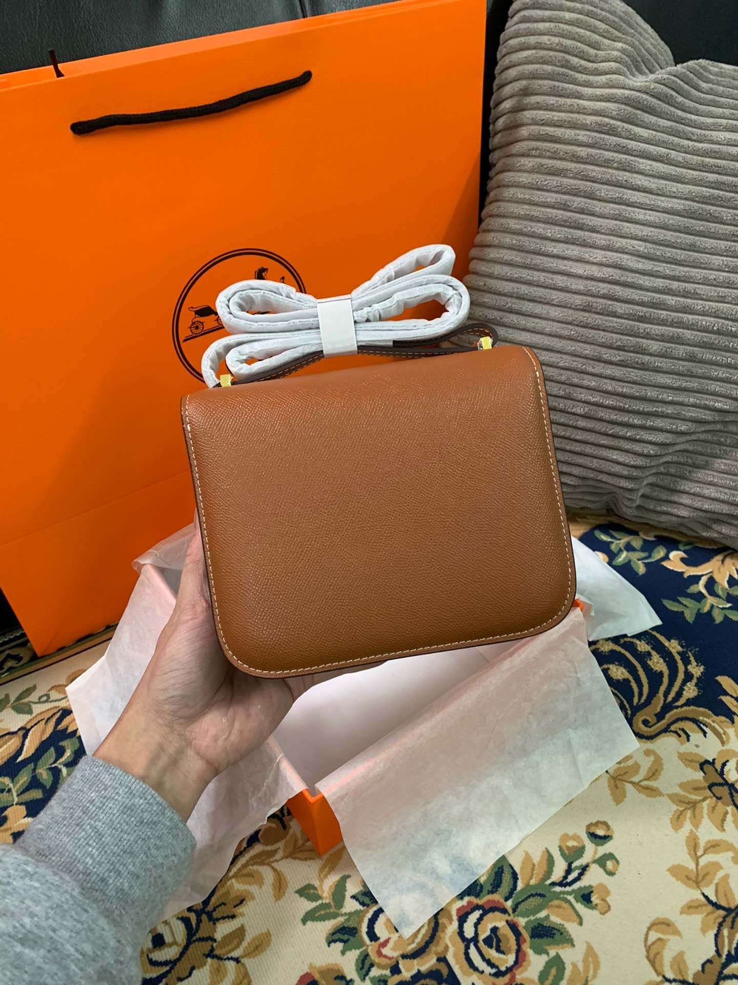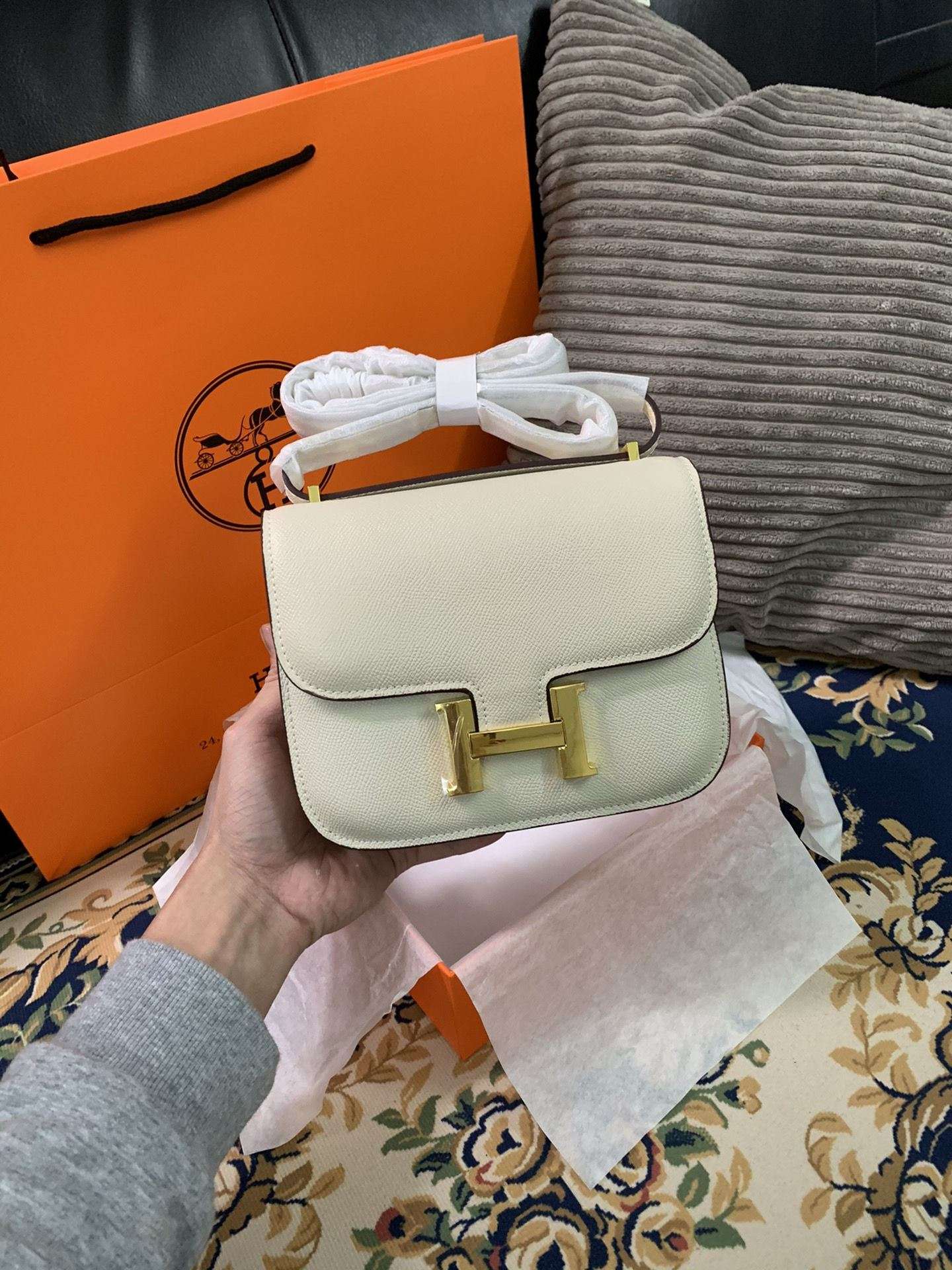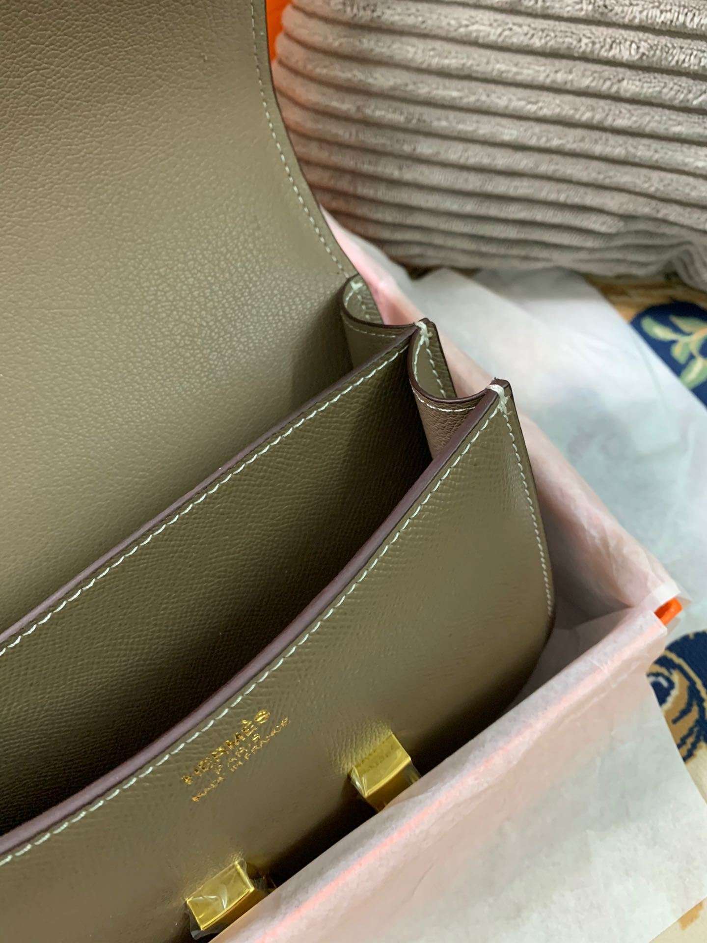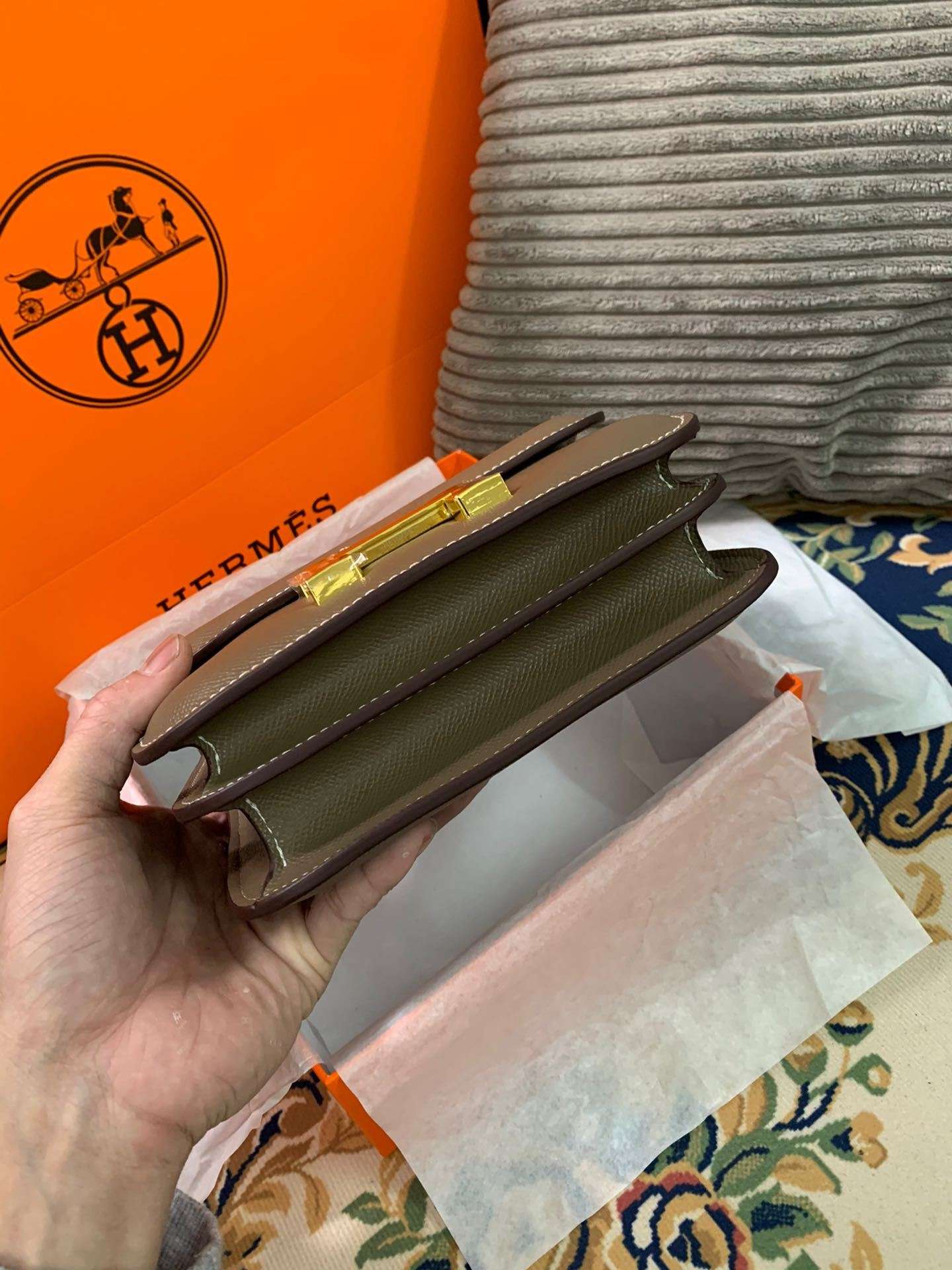 • Efficiency meets style in every Hermes bag, when sophistication is a must have, timeless attribute, as seen in this Constance shoulder bag. Featuring a smooth surface with a matte finish, gold-tone hardware, a foldover top with push-lock closure, interior compartments divided by a partition, an internal zipped pocket and a front centre logo stamp.