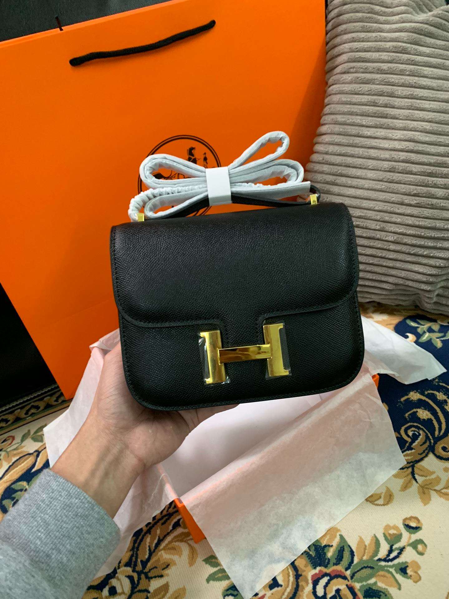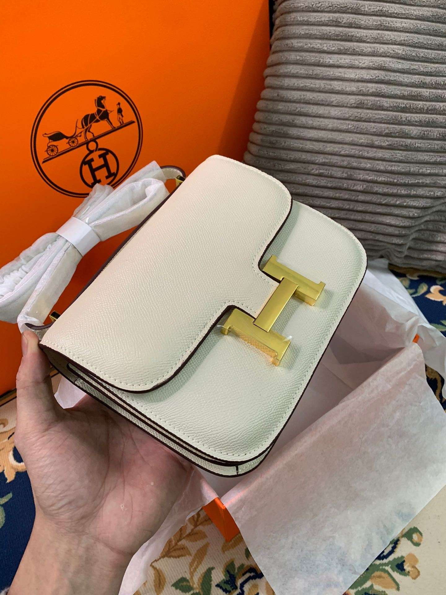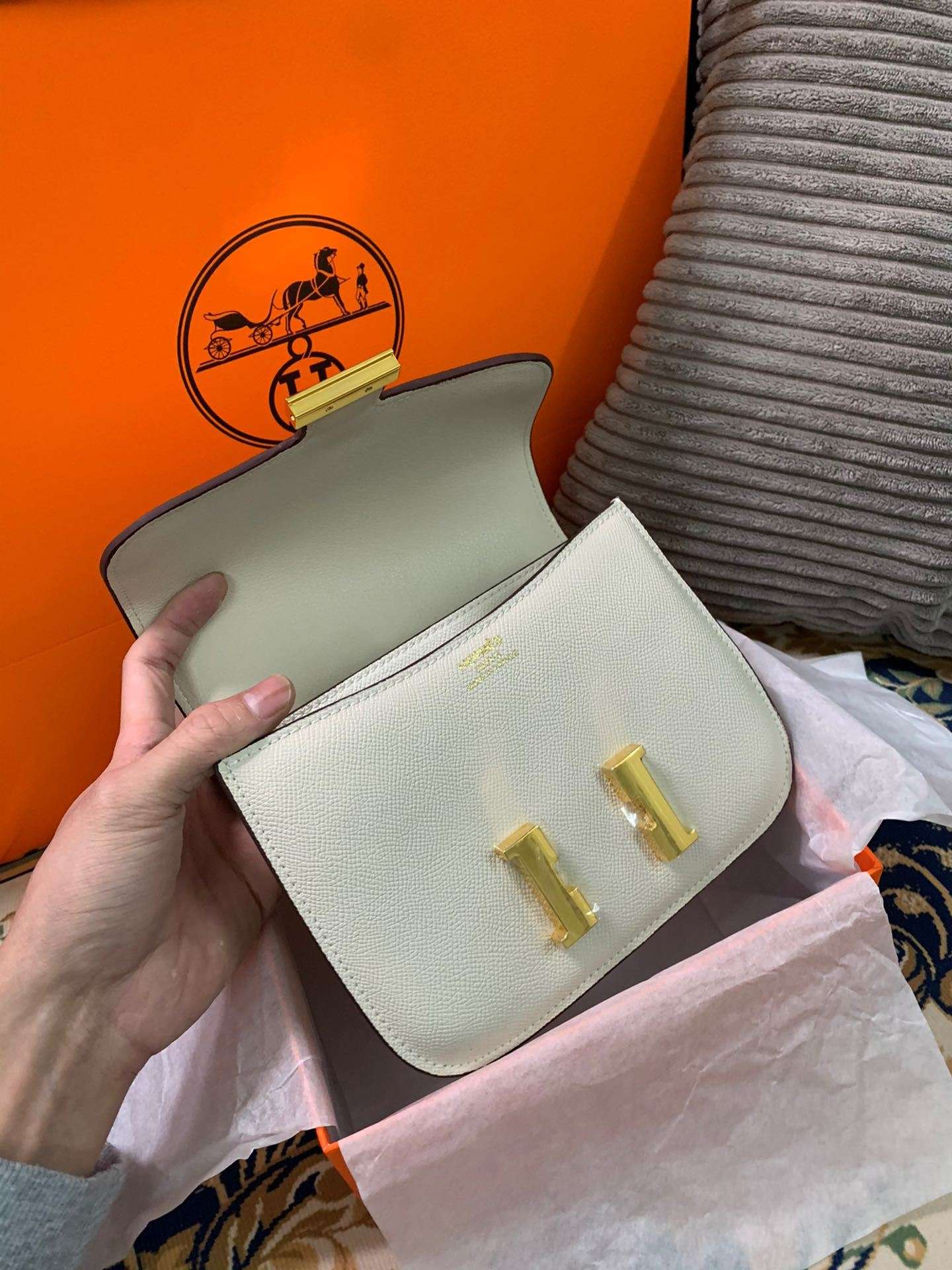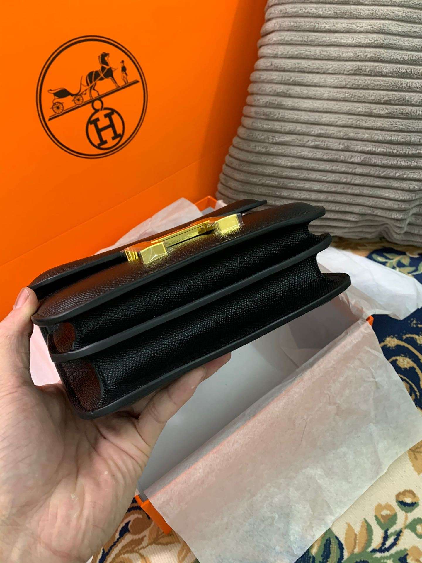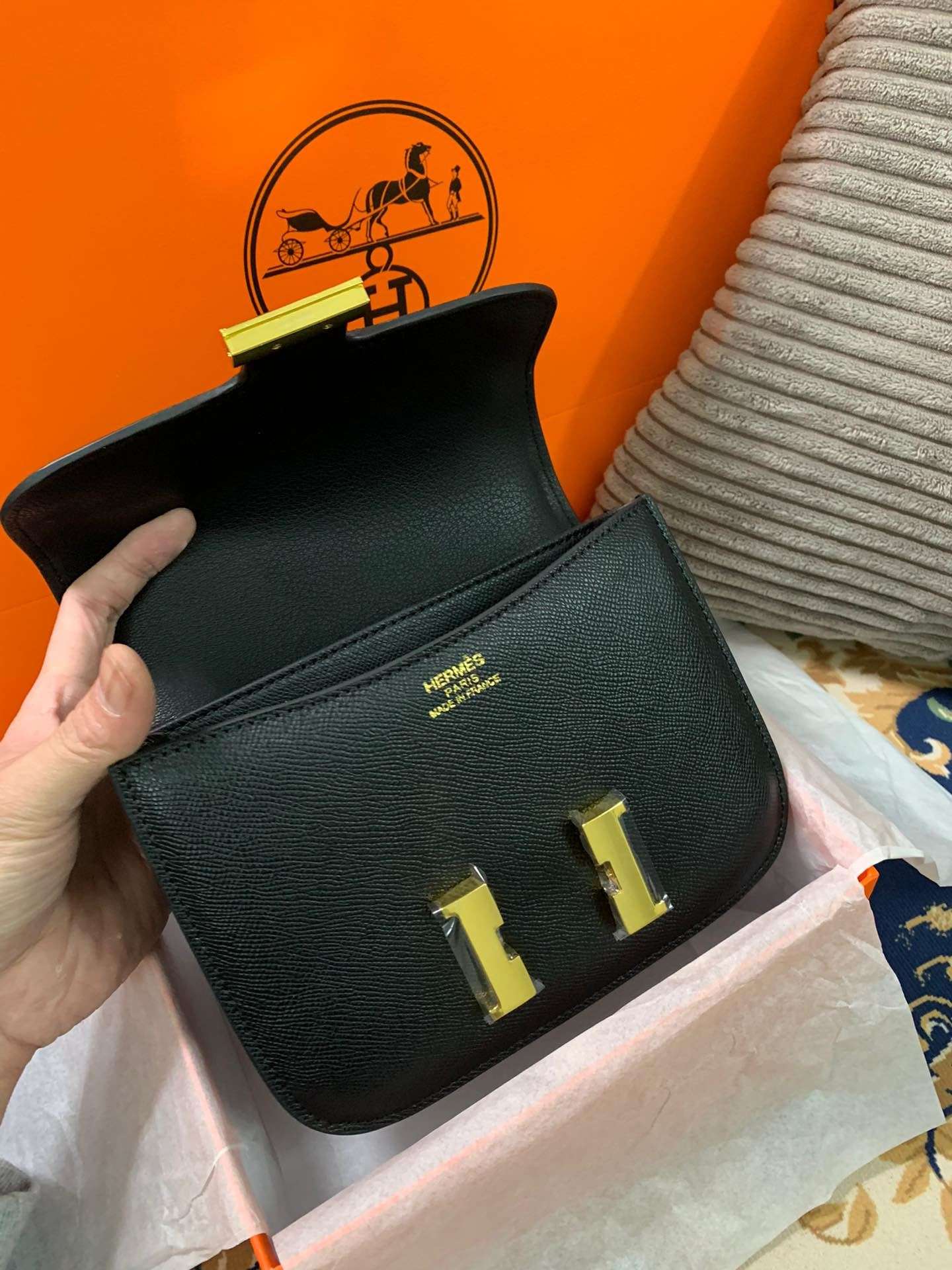 • Efficiency meets style in every Hermes bag, when sophistication is a must have, timeless attribute, as seen in this Constance shoulder bag. Featuring a smooth surface with a matte finish, gold-tone hardware, a foldover top with push-lock closure, interior compartments divided by a partition, an internal zipped pocket and a front centre logo stamp.