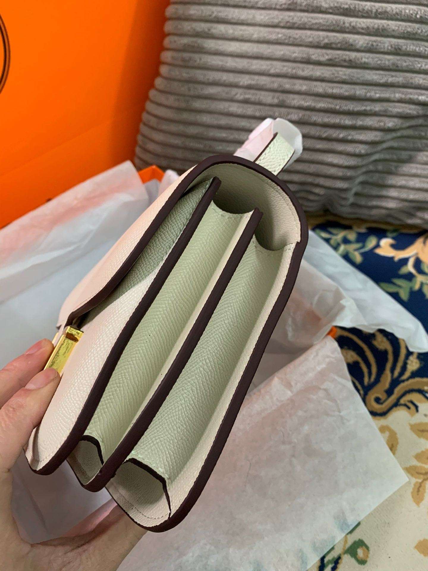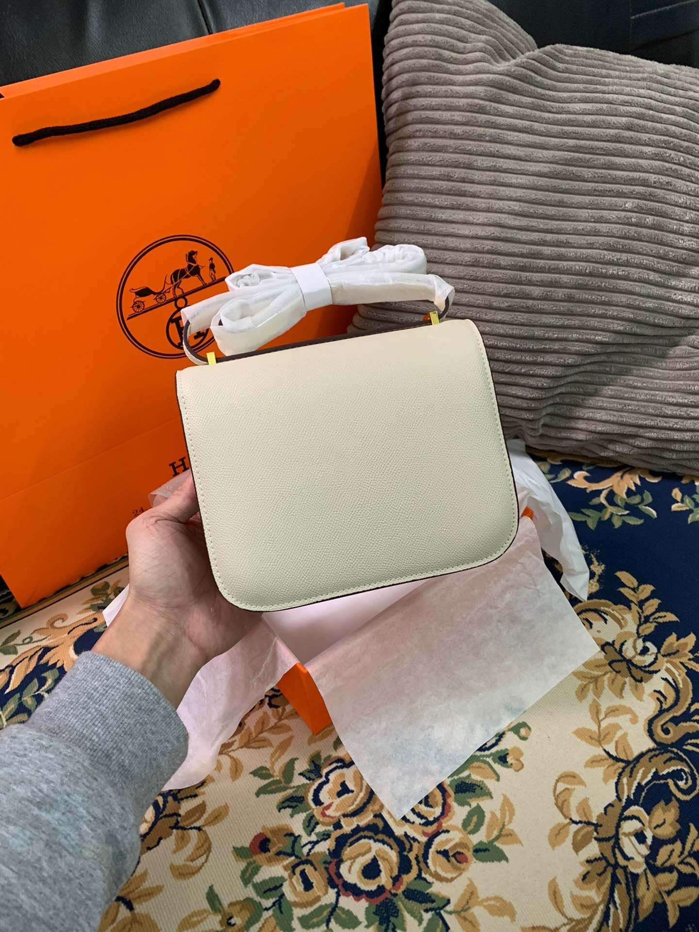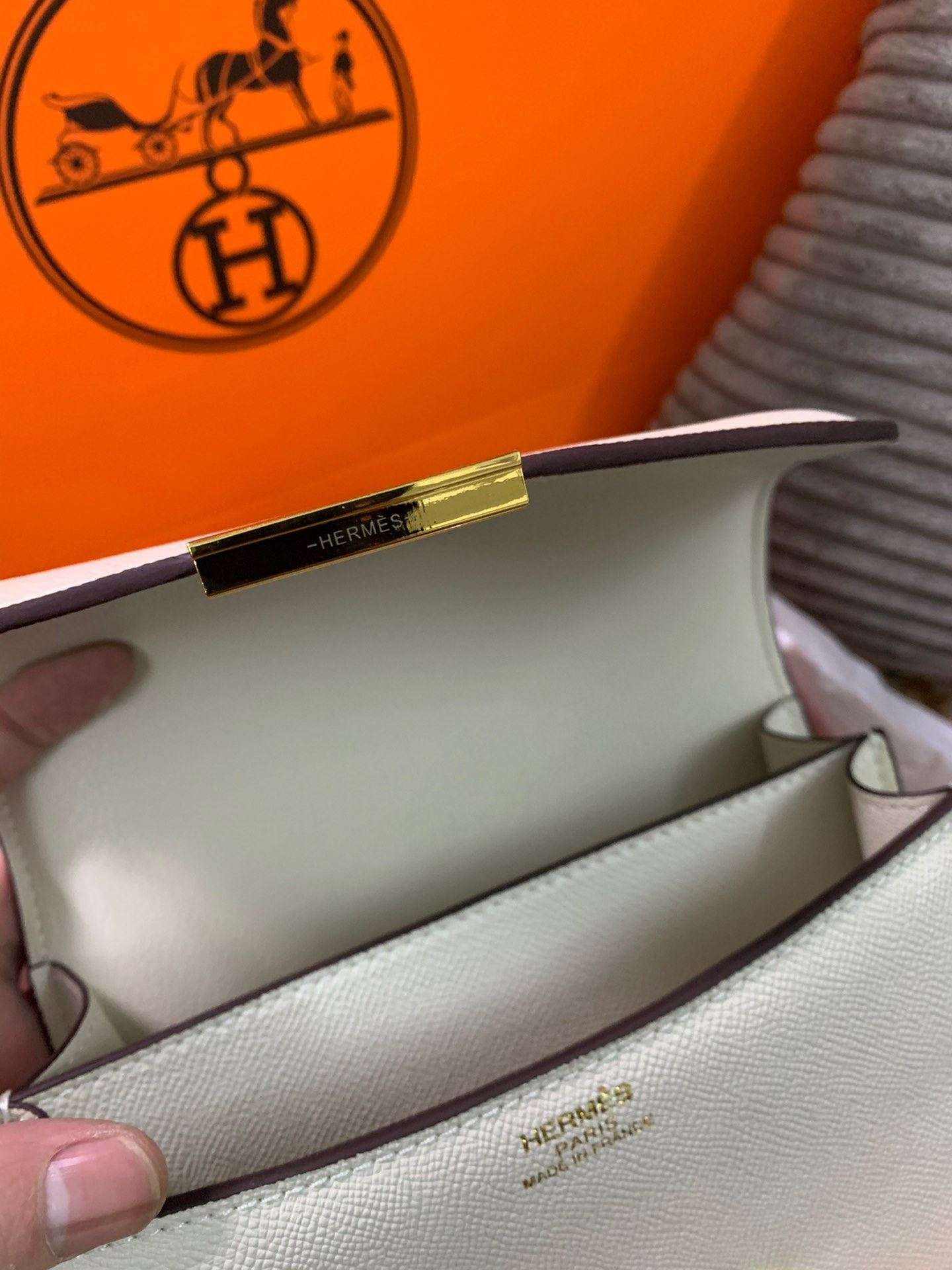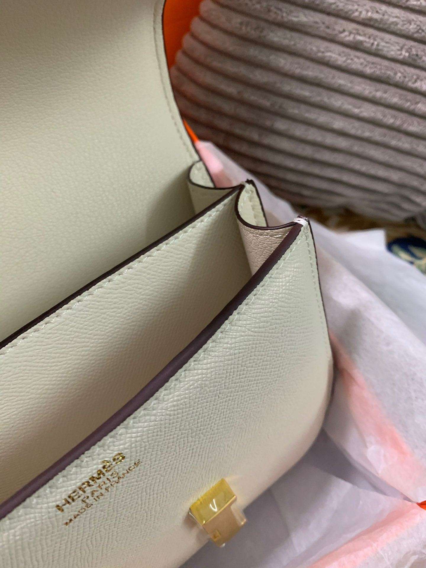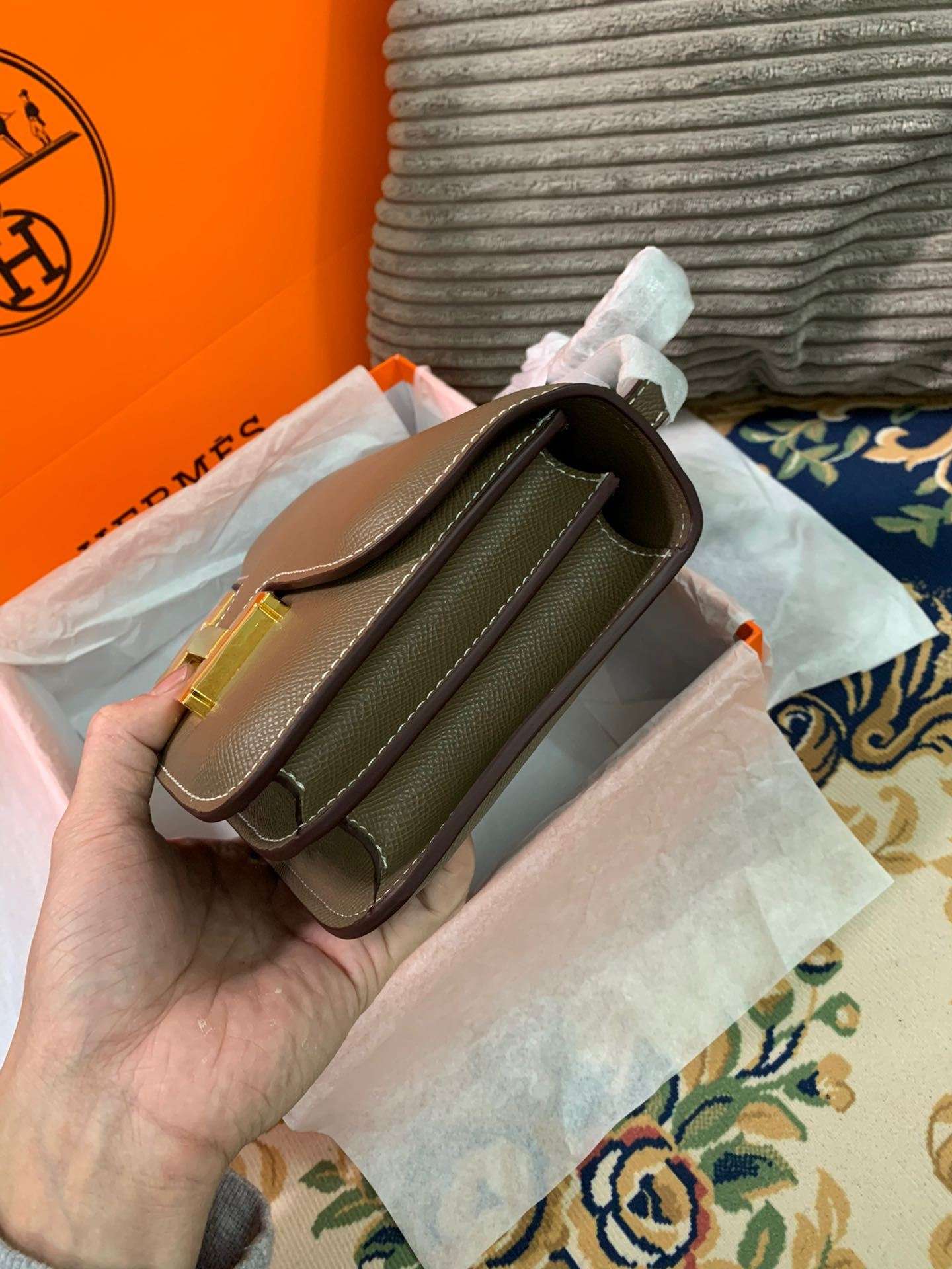 • Efficiency meets style in every Hermes bag, when sophistication is a must have, timeless attribute, as seen in this Constance shoulder bag. Featuring a smooth surface with a matte finish, gold-tone hardware, a foldover top with push-lock closure, interior compartments divided by a partition, an internal zipped pocket and a front centre logo stamp.