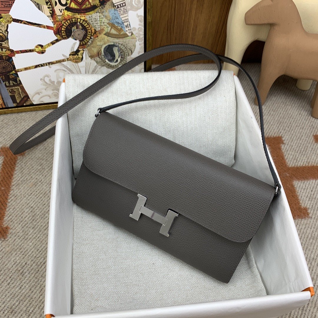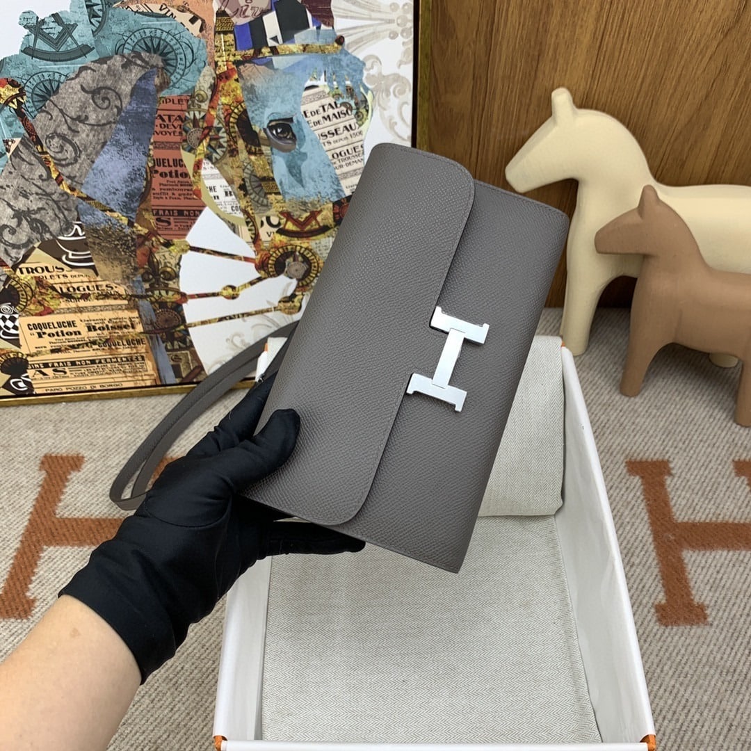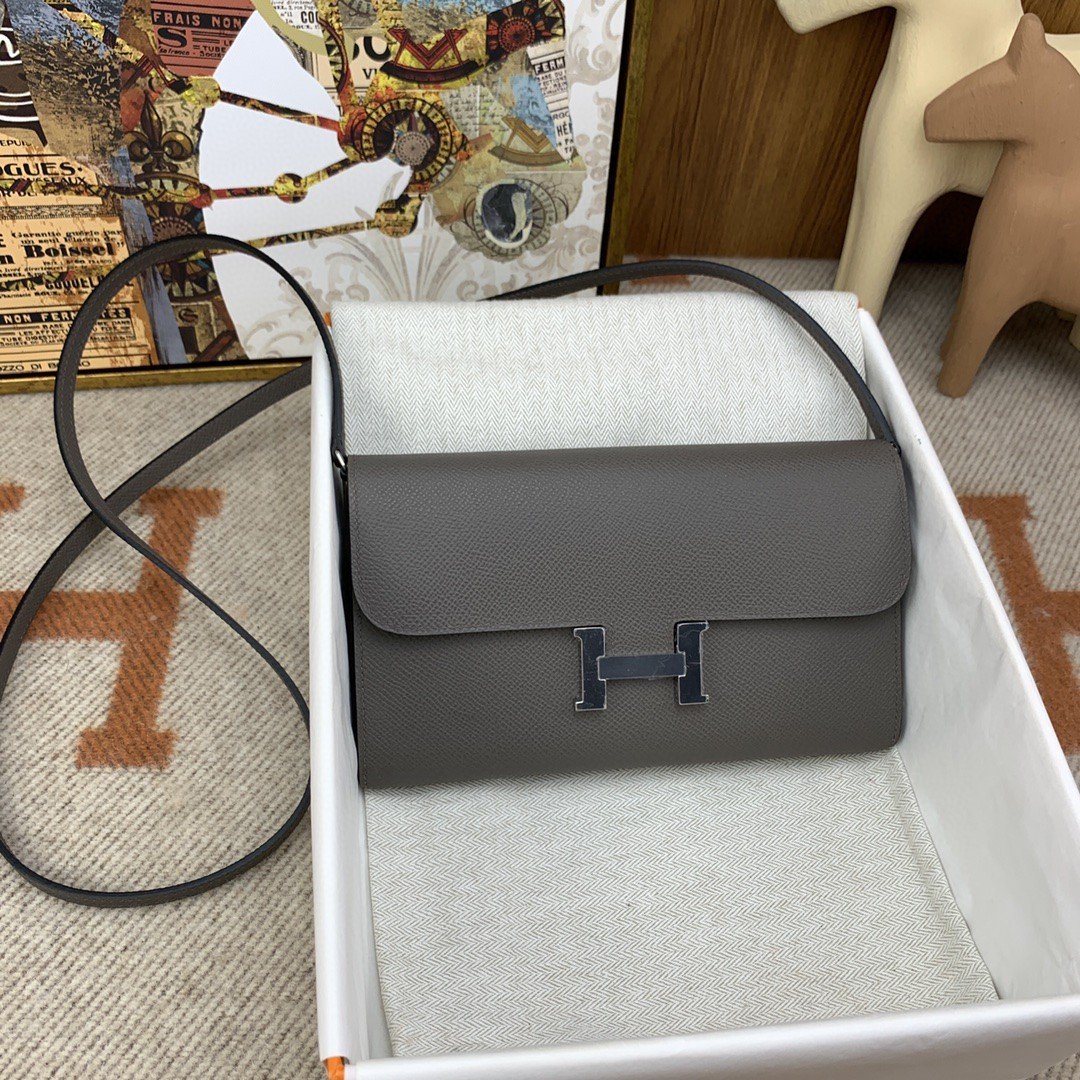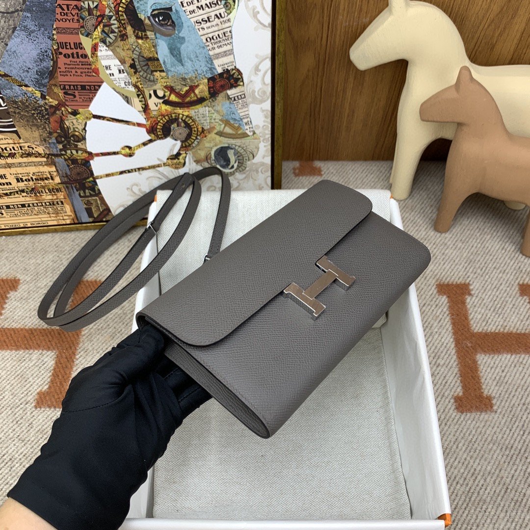 1:1 Replica Hermes Constance Long Togo Wallet Grey, Silver Toned Hardware Bag For Women, Women’s Handbags, Shoulder Bags 8.1in/21cm