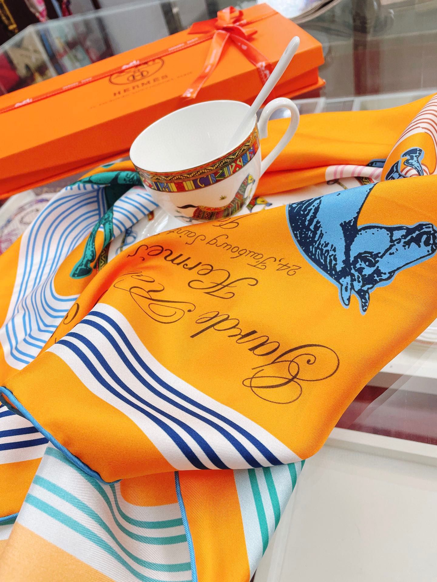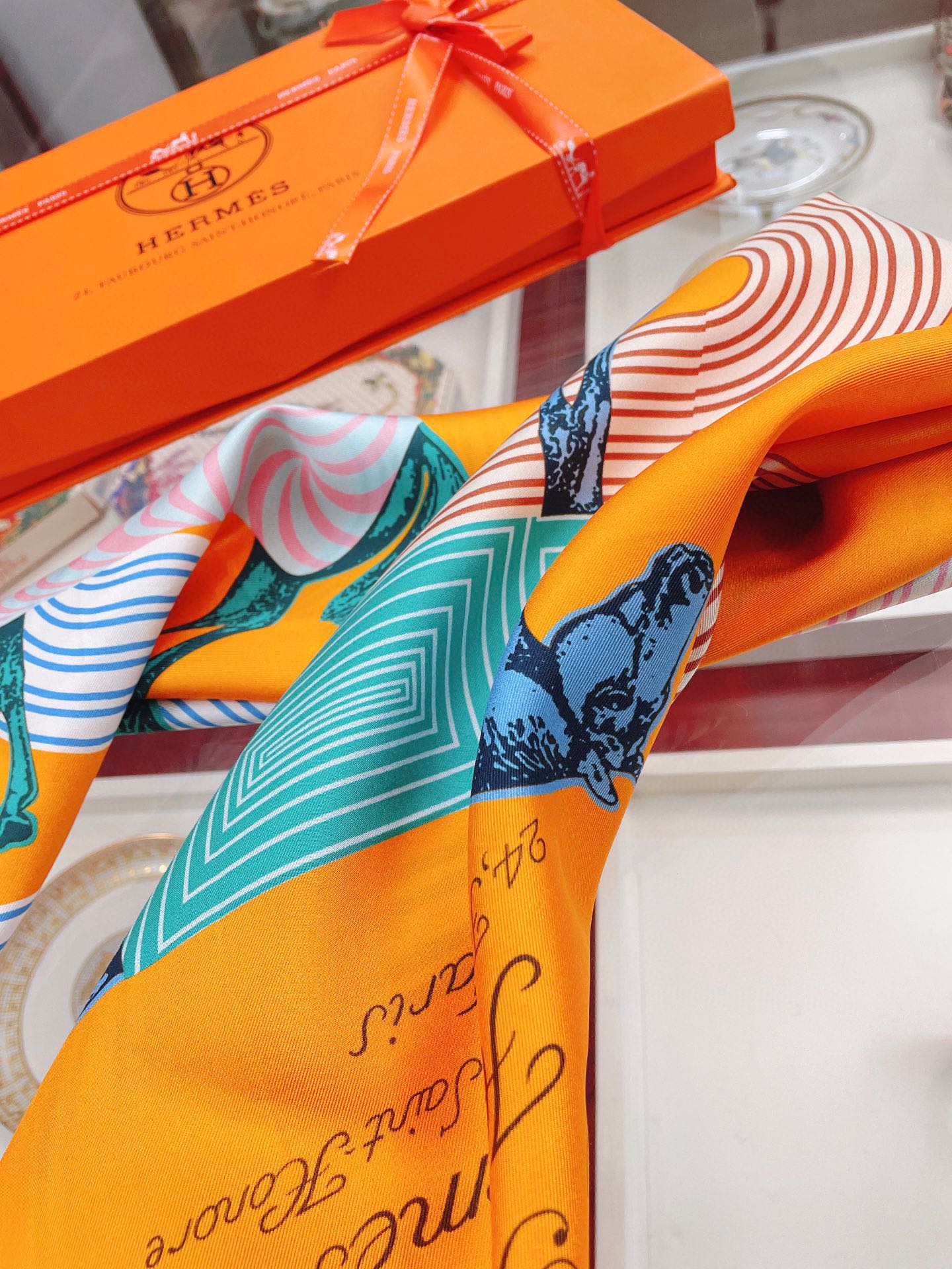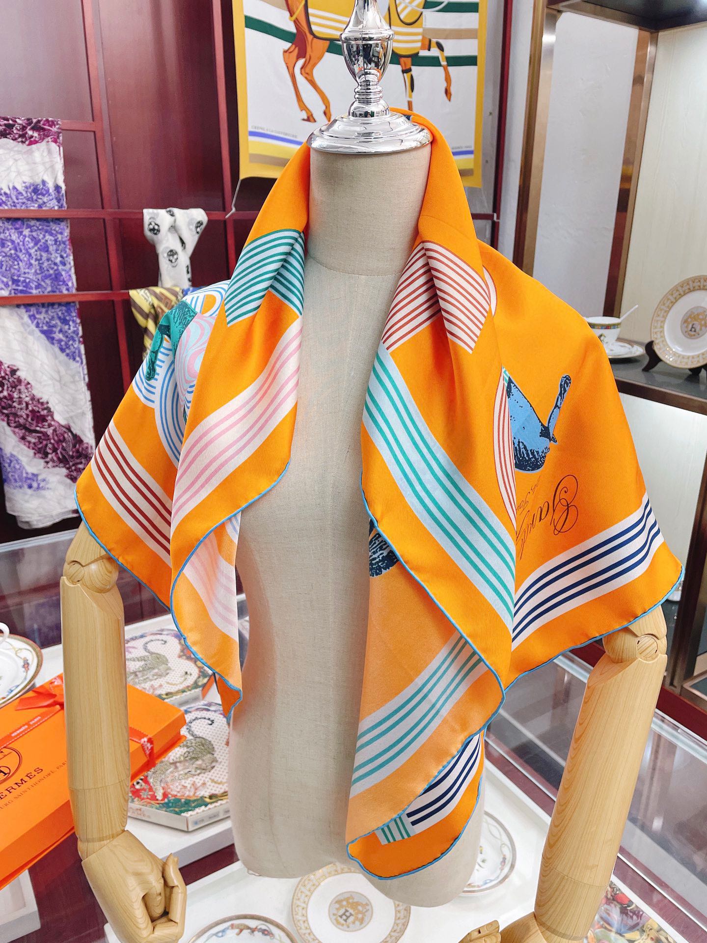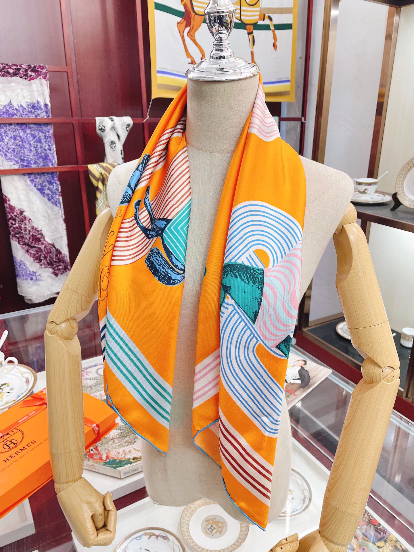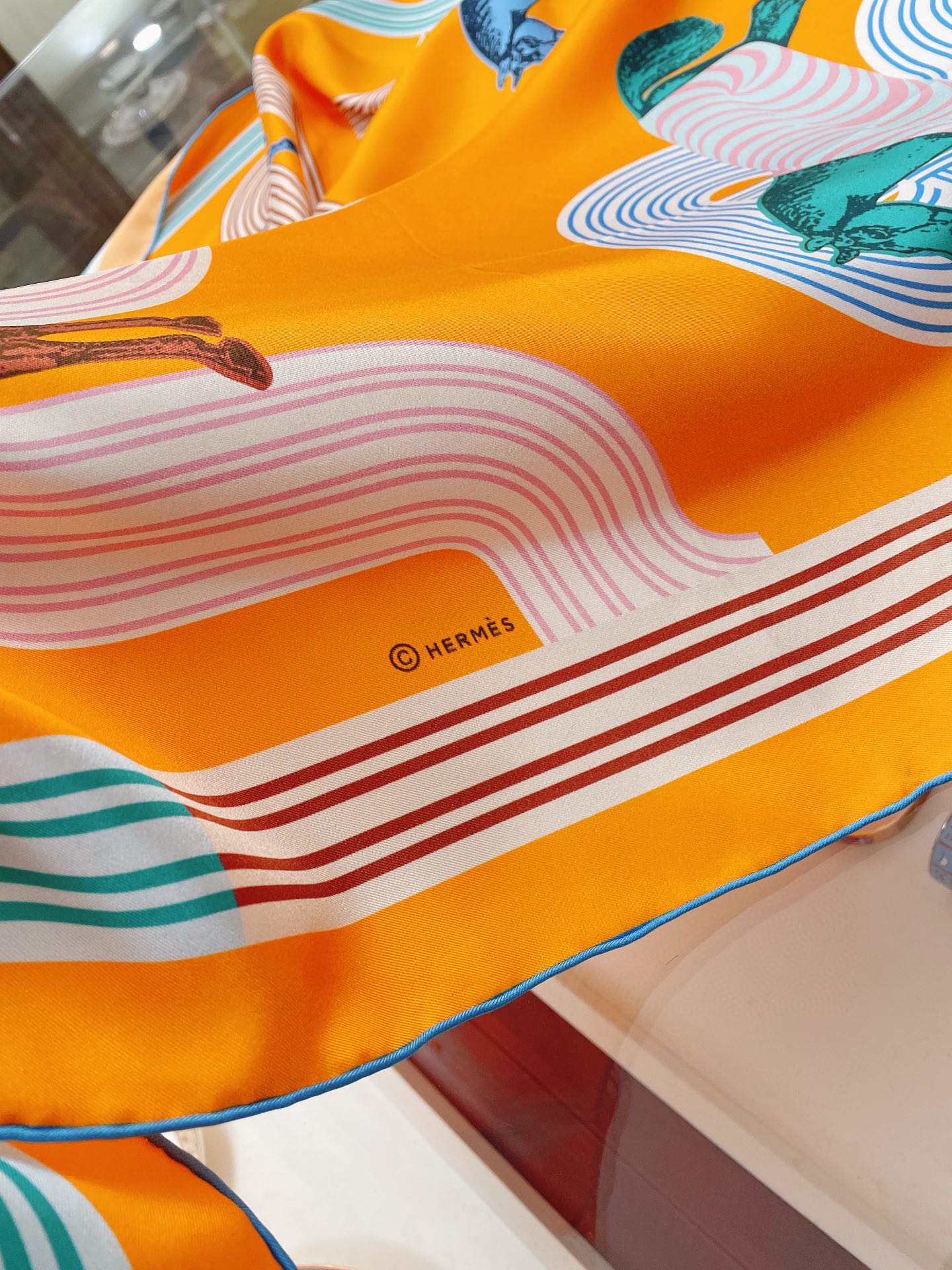 Hermes Garde-Robe Pop Detail Abricot/Rose/Bleu Square Scarf 90cm/35in H893888S 01