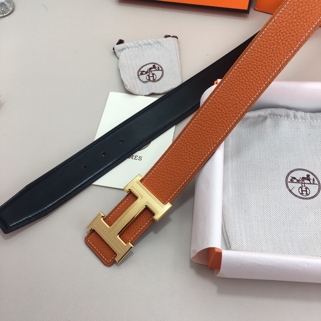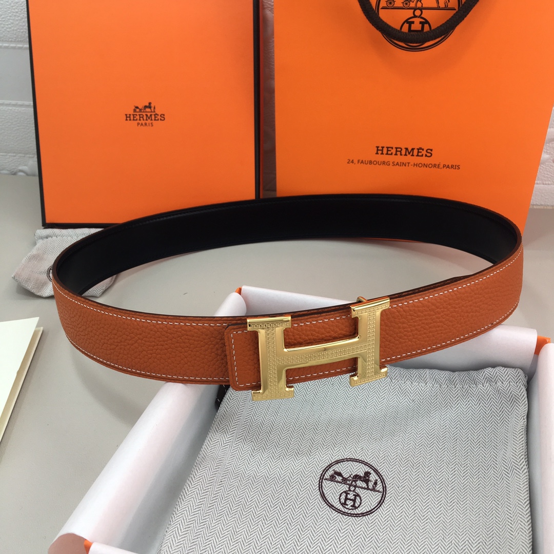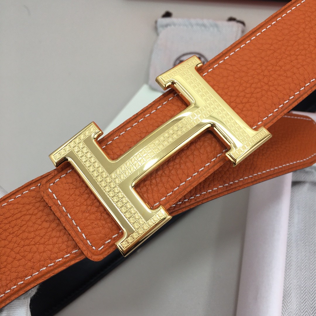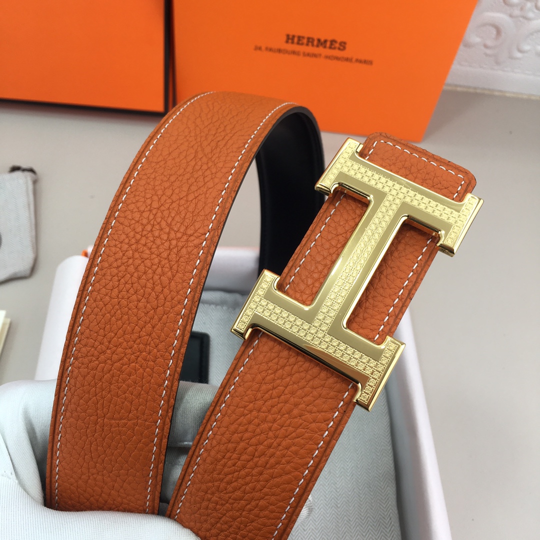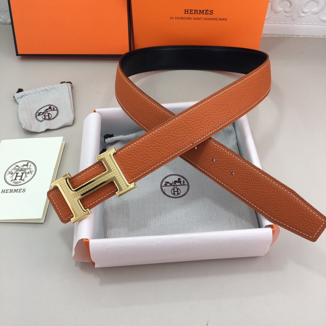 Hermes H Guillochee Belt Buckle & Reversible Orange For Women, Women Belt