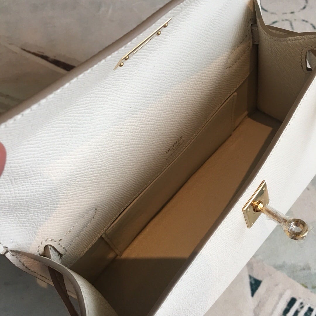 Hermes Kelly Pochettee White For Women Gold Toned Hardware 8.5in/22cm