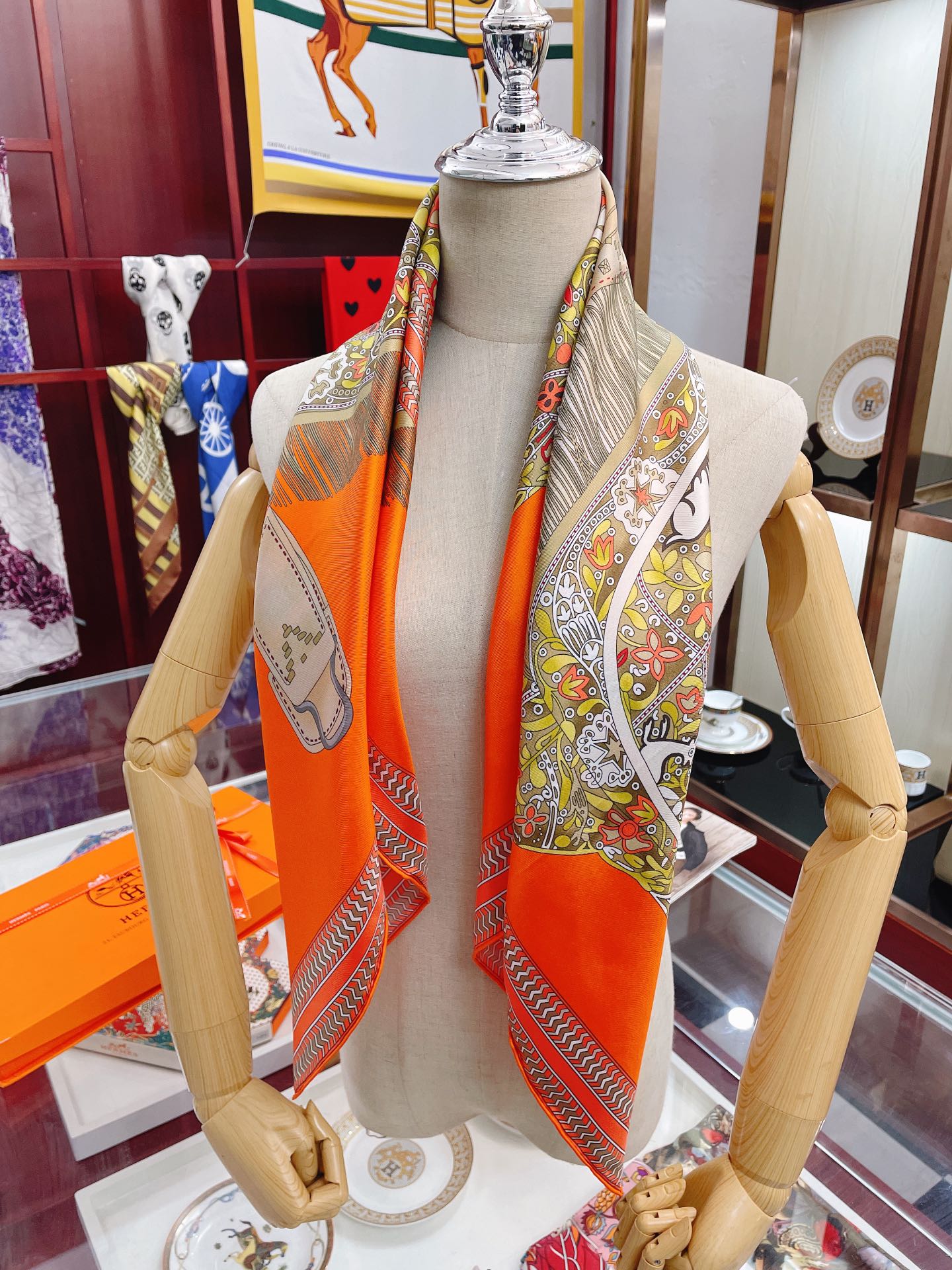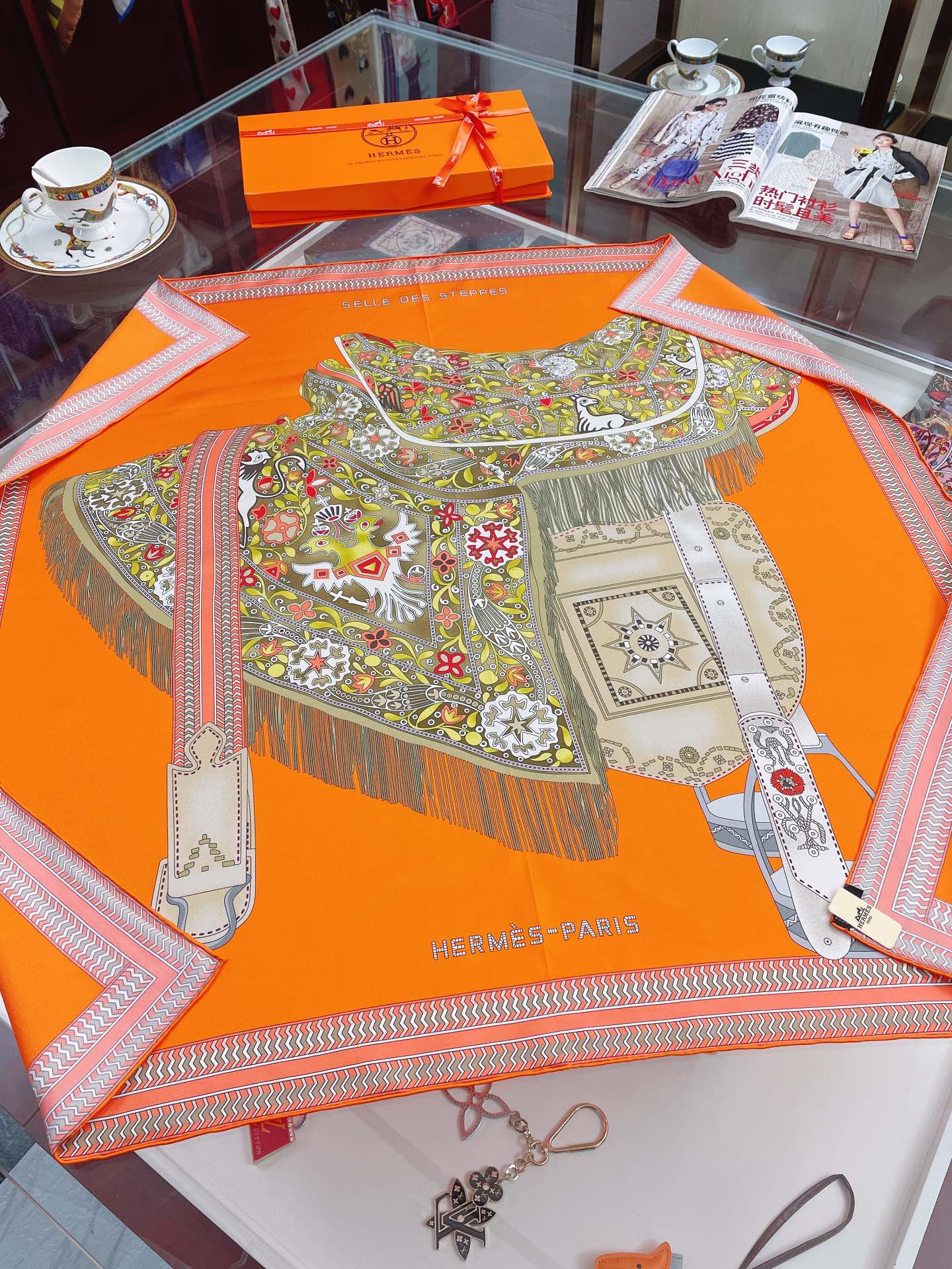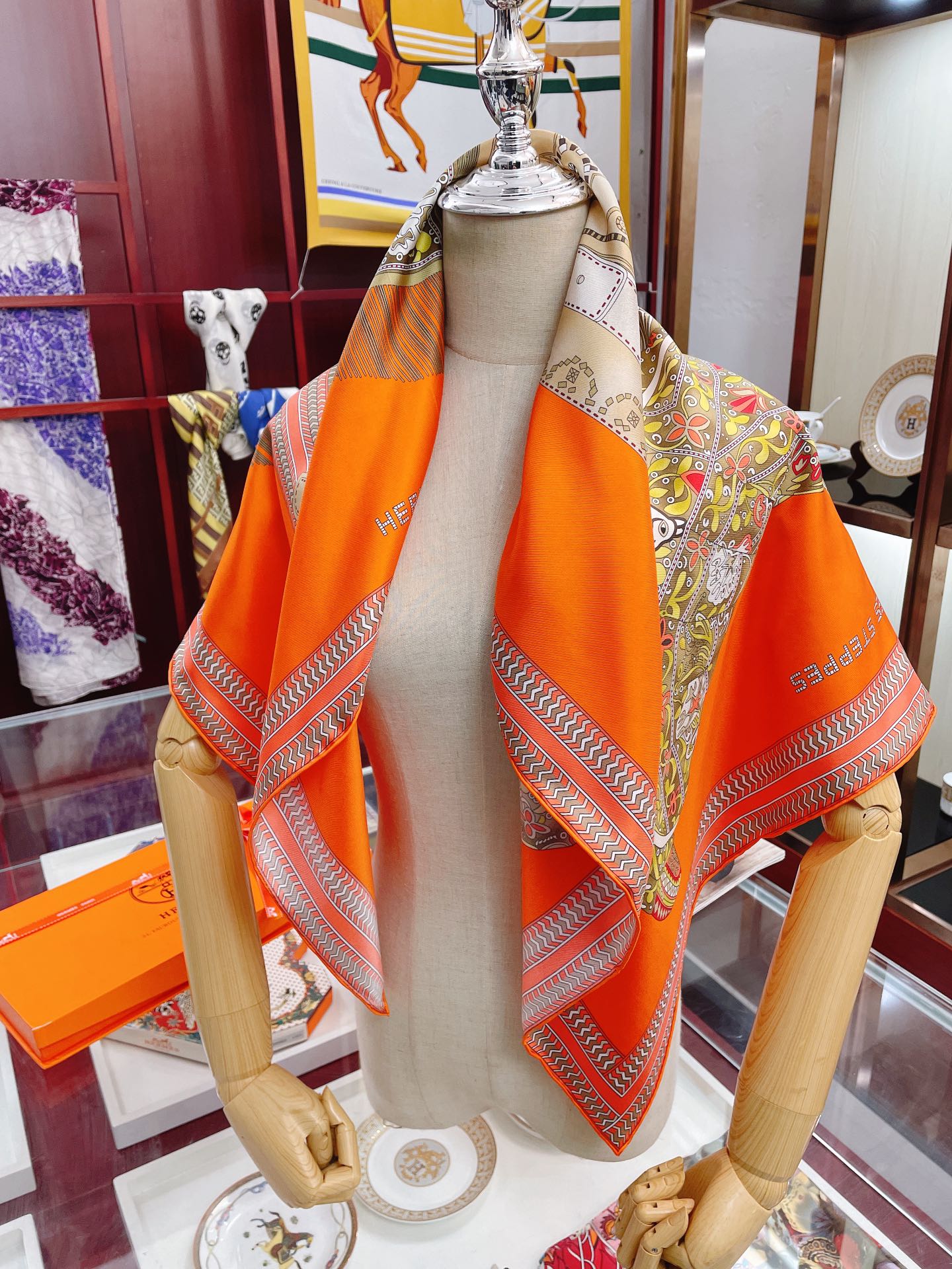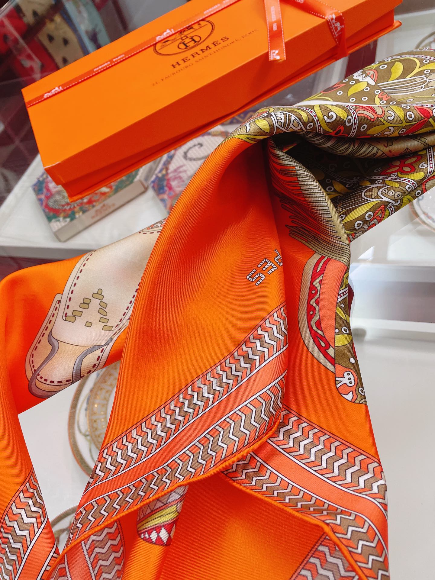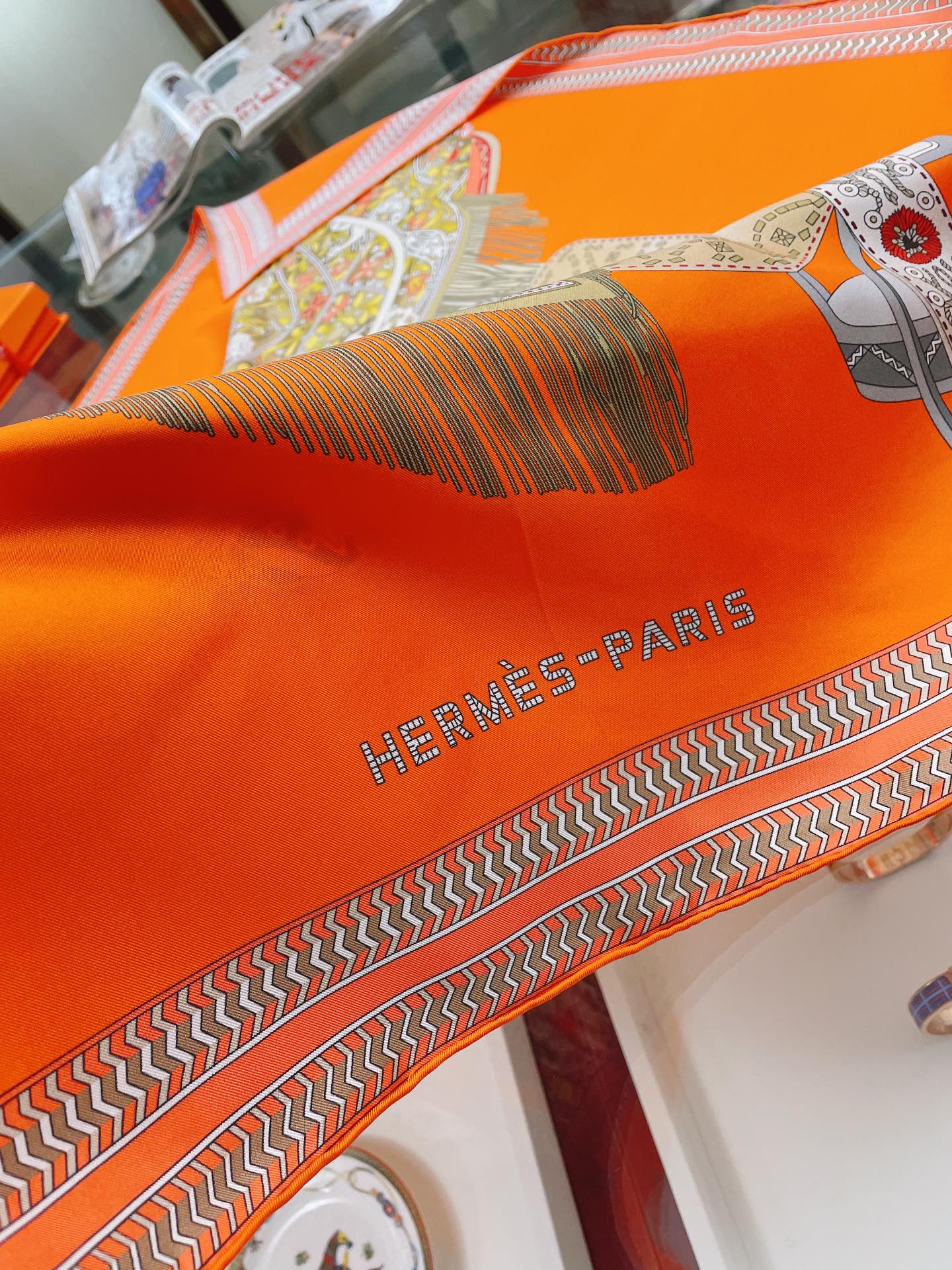 Hermes Selle des Steppes Orange Square Scarf 90cm/35in