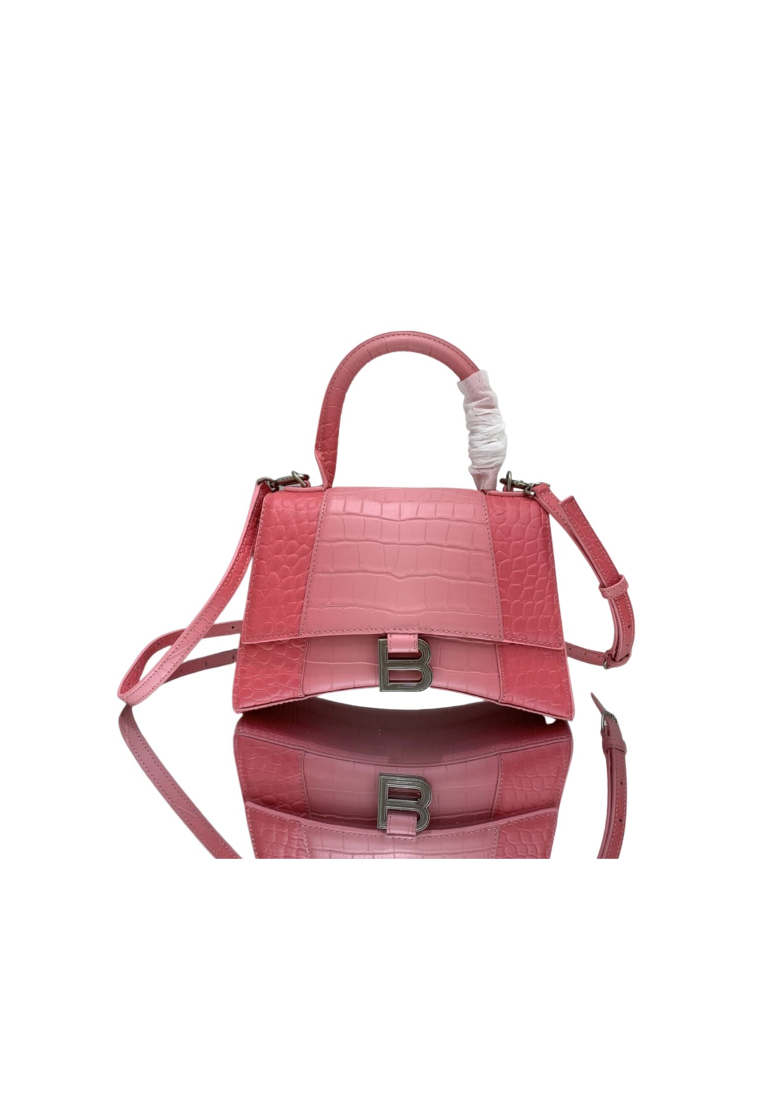 Balenciaga Hourglass Small Handbag Embossed In Pink/Brown