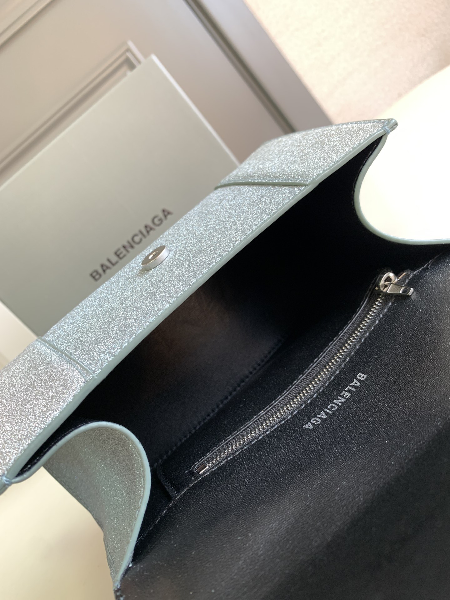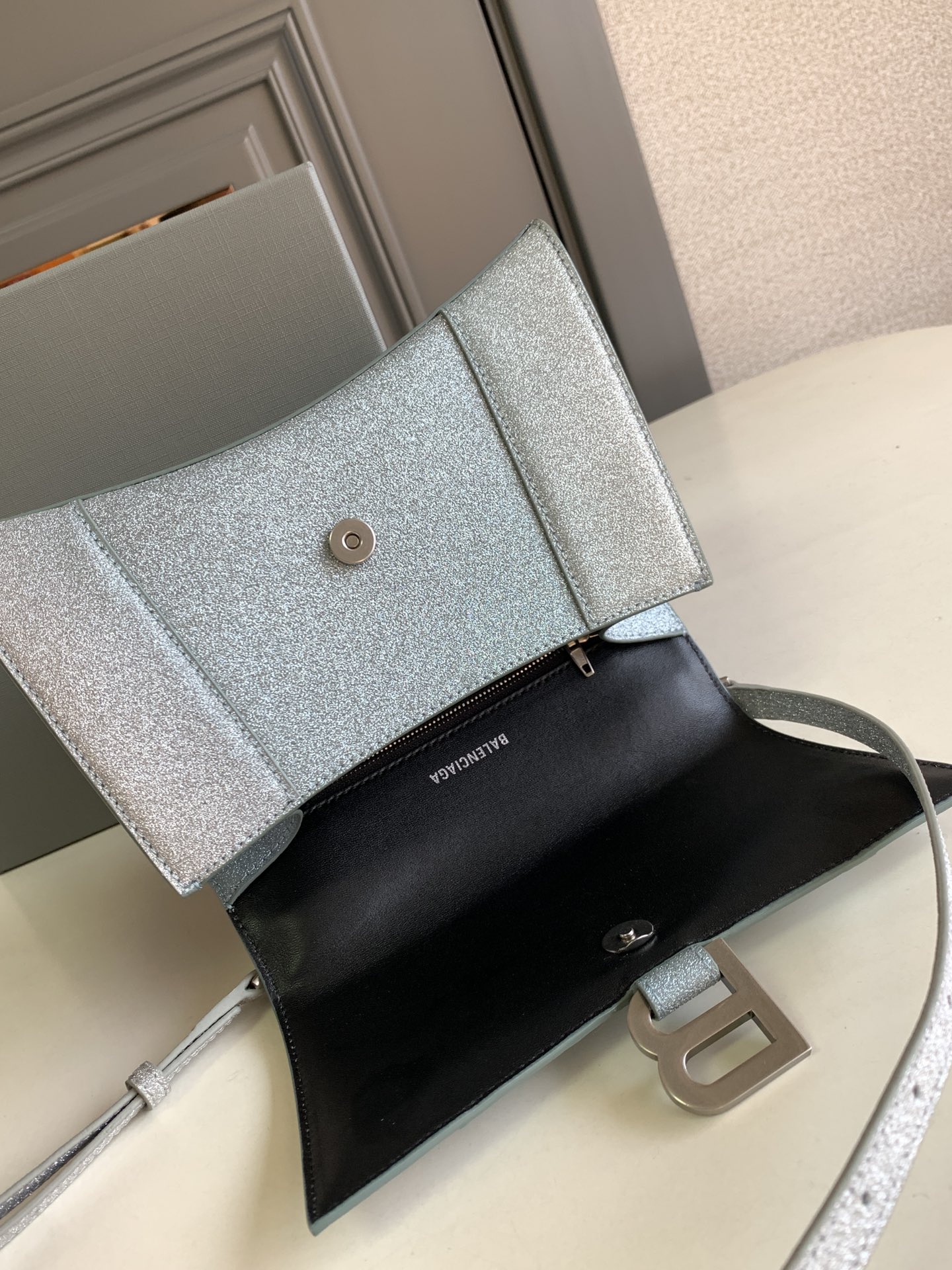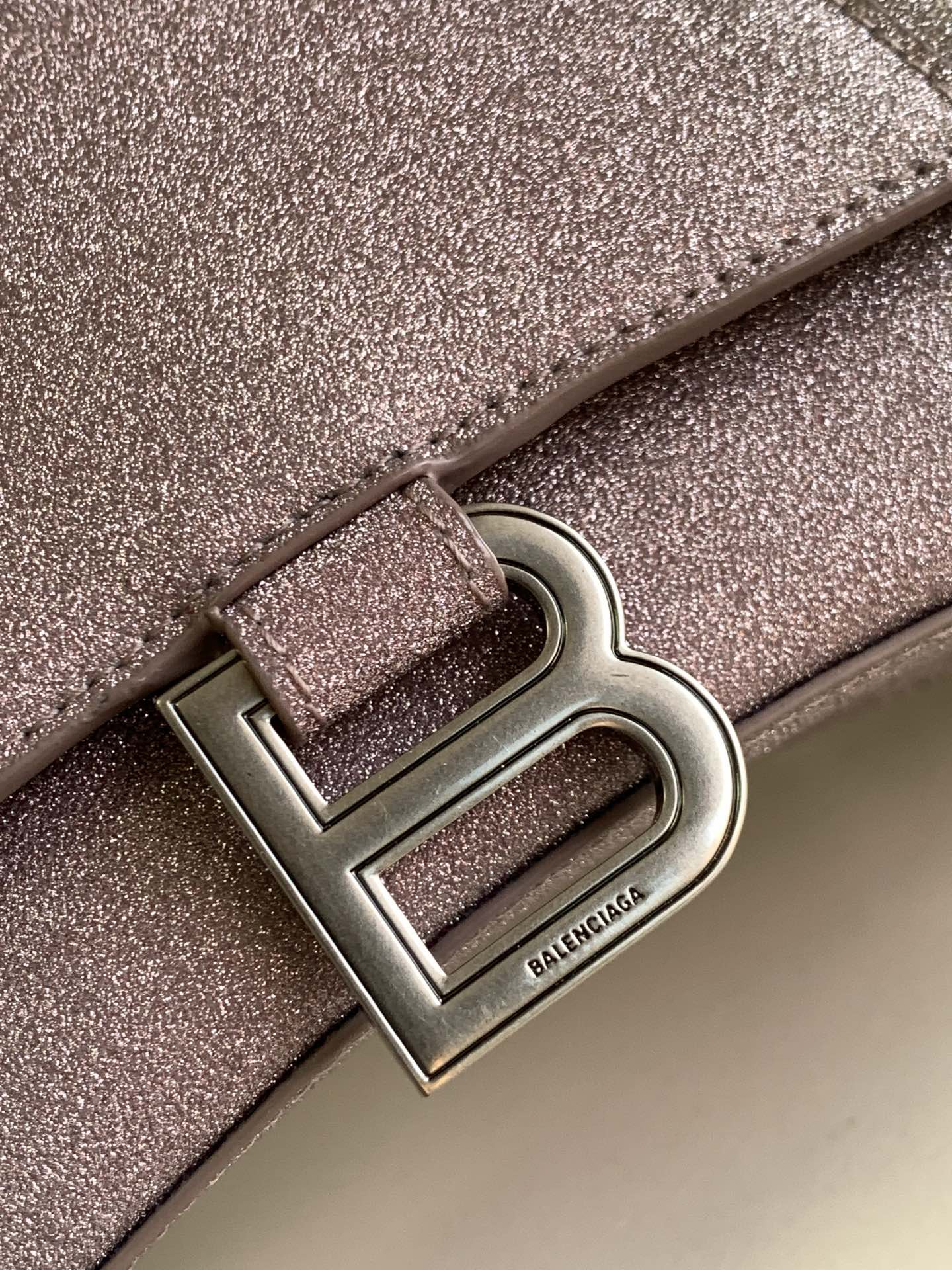 • Aged-silver B logo hardware