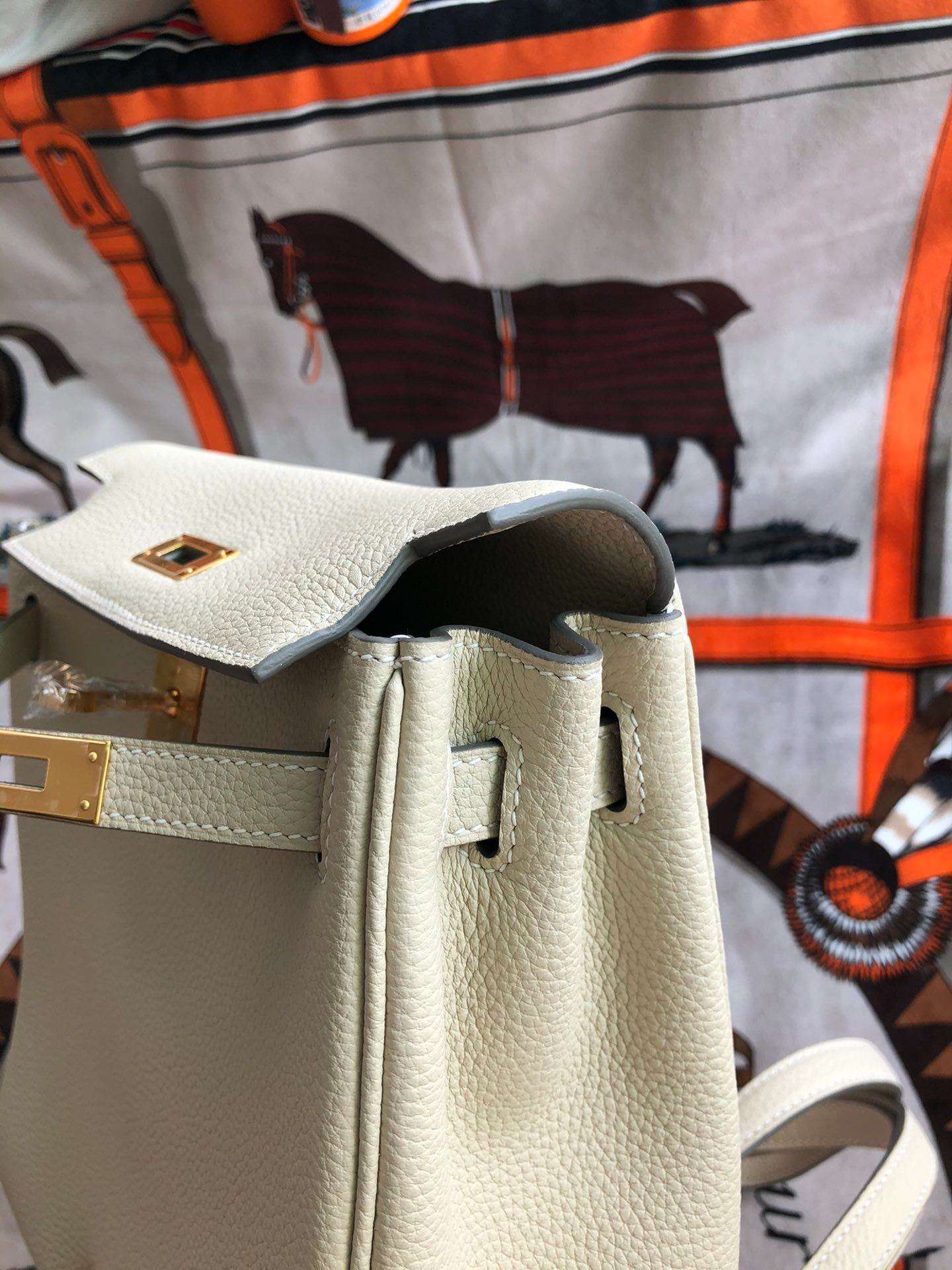• Hermès Kelly Danse crossbody or belt bag in Veau Swift. Opens with a Palladium Kelly-Buckle. Lined in Veau swift with one open pocket against the back. Comes with a adjustable shoulder strap. Has been carried and is in excellent condition.