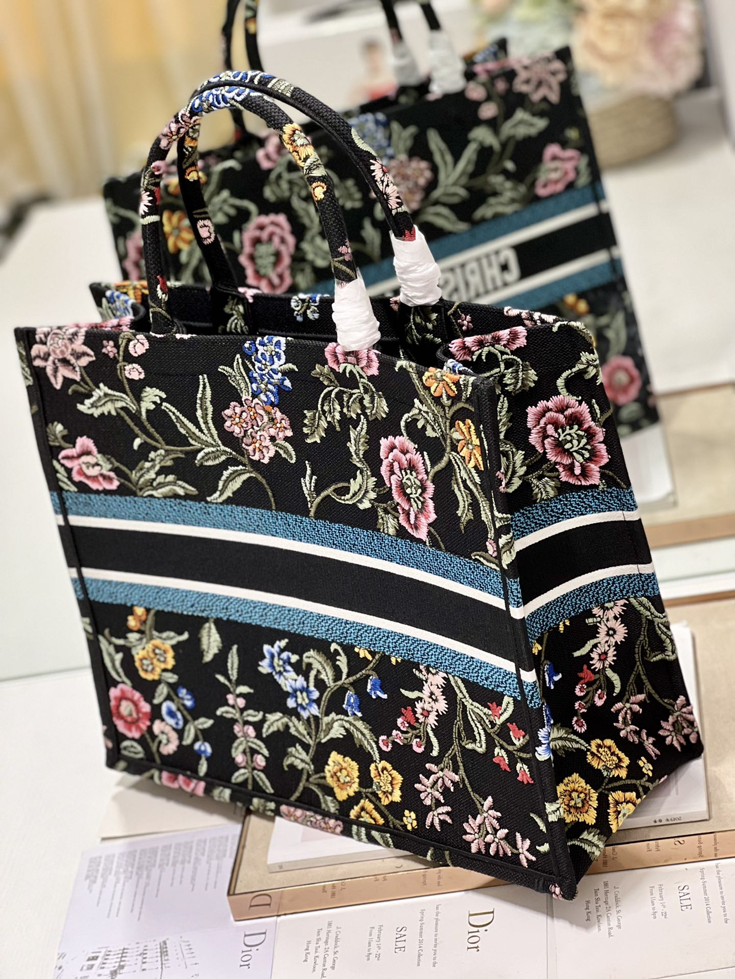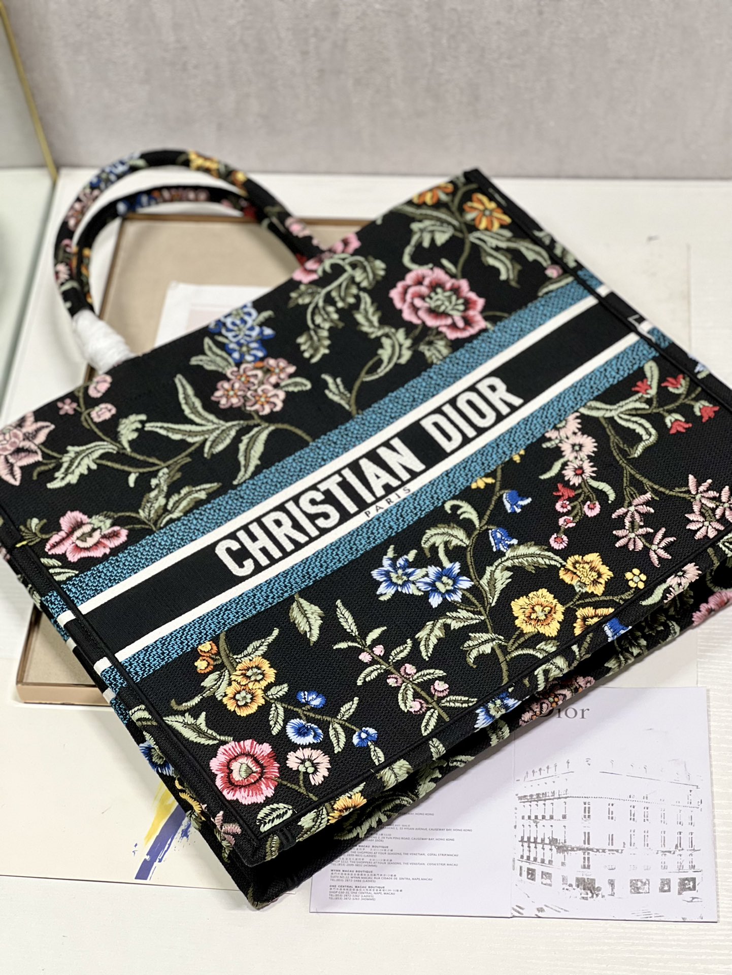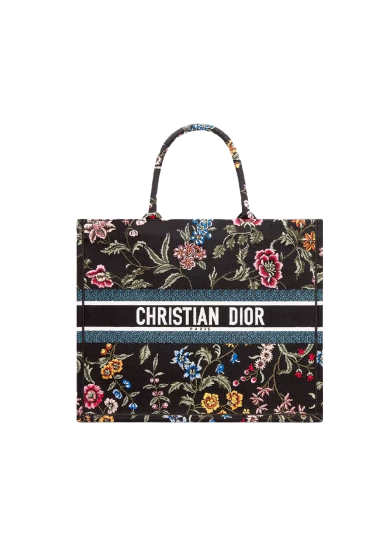 Introduced by Maria Grazia Chiuri, Creative Director of Christian Dior, the Large Dior Book Tote Bag has become a staple of the Dior aesthetic. Designed to hold all daily essentials, the style is fully embroidered with a multicolor Dior Petites Fleurs motif, a romantic and vibrant homage to Mr. Dior’s passion for florals. Adorned with the Christian Dior Paris signature on the front, the small tote exemplifies the House’s signature savoir-faire and may be carried by hand.