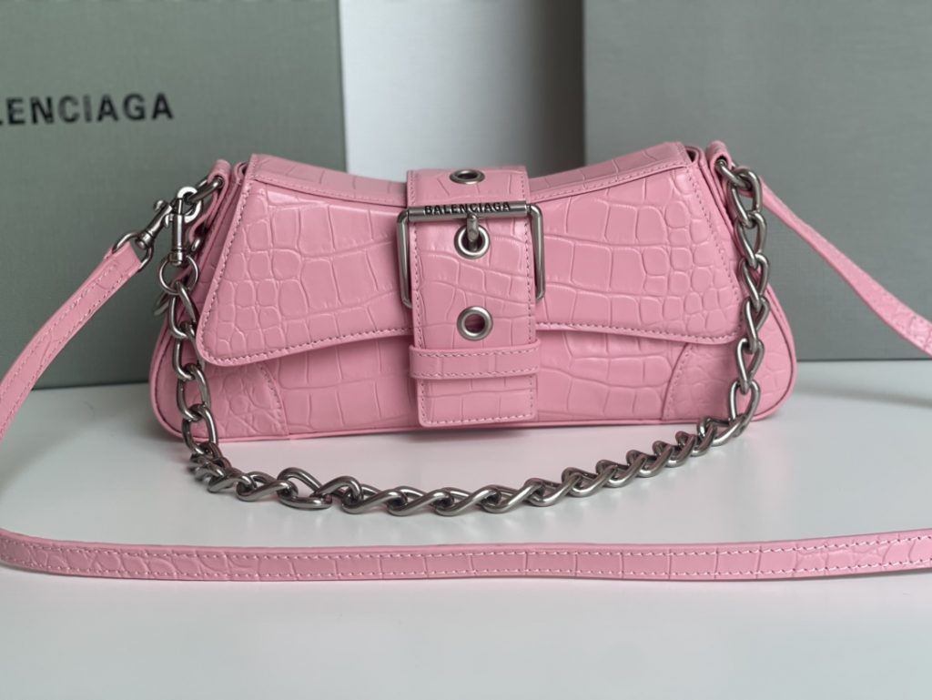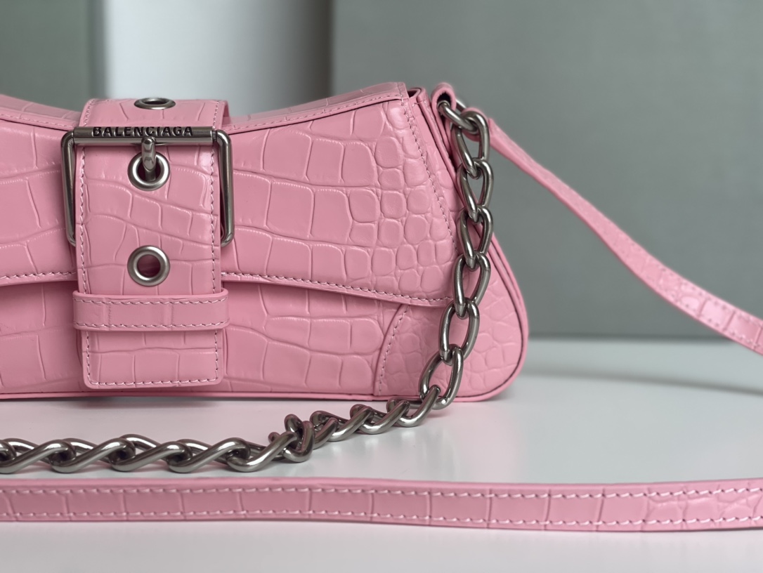 Balenciaga Lindsay Small Embossed Shoulder Bag In White/Pink/Black