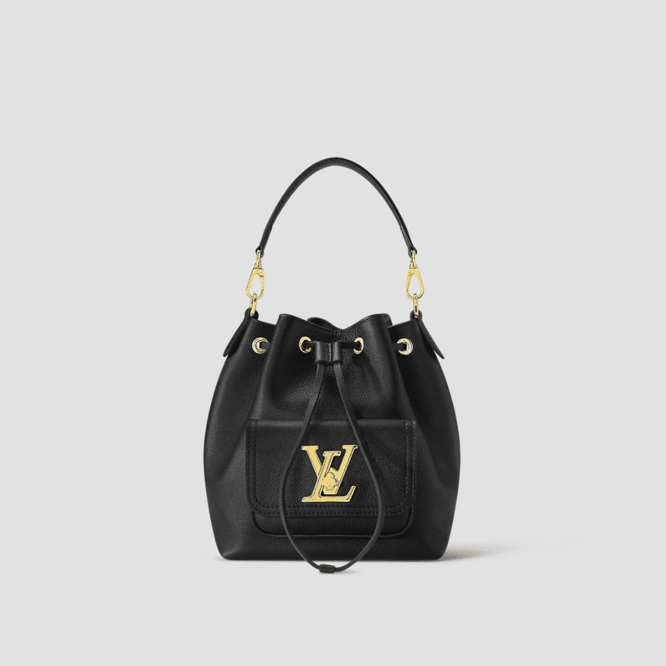 The Lockme Bucket bag in grained is immediately recognizable by its faceted LV turn lock on the front pocket. This supple bag with curvy proportions is comfortable to carry. The removable and adjustable strap in means it can be worn on the shoulder and cross-body, while a removable top handle enables hand and elbow carry.