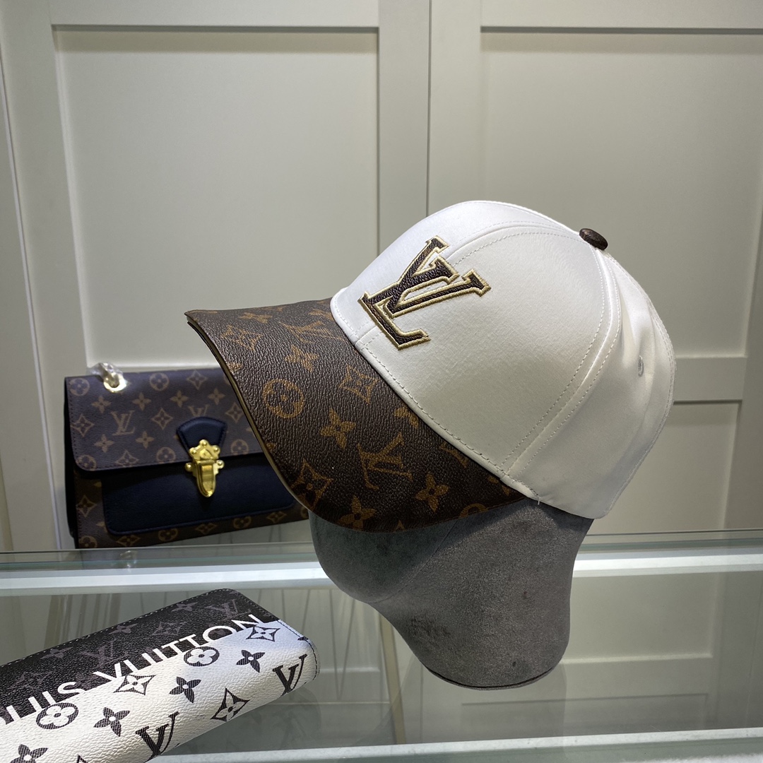 Louis Vuitton Embroidered Logo Baseball Cap White/Brown LV Cap