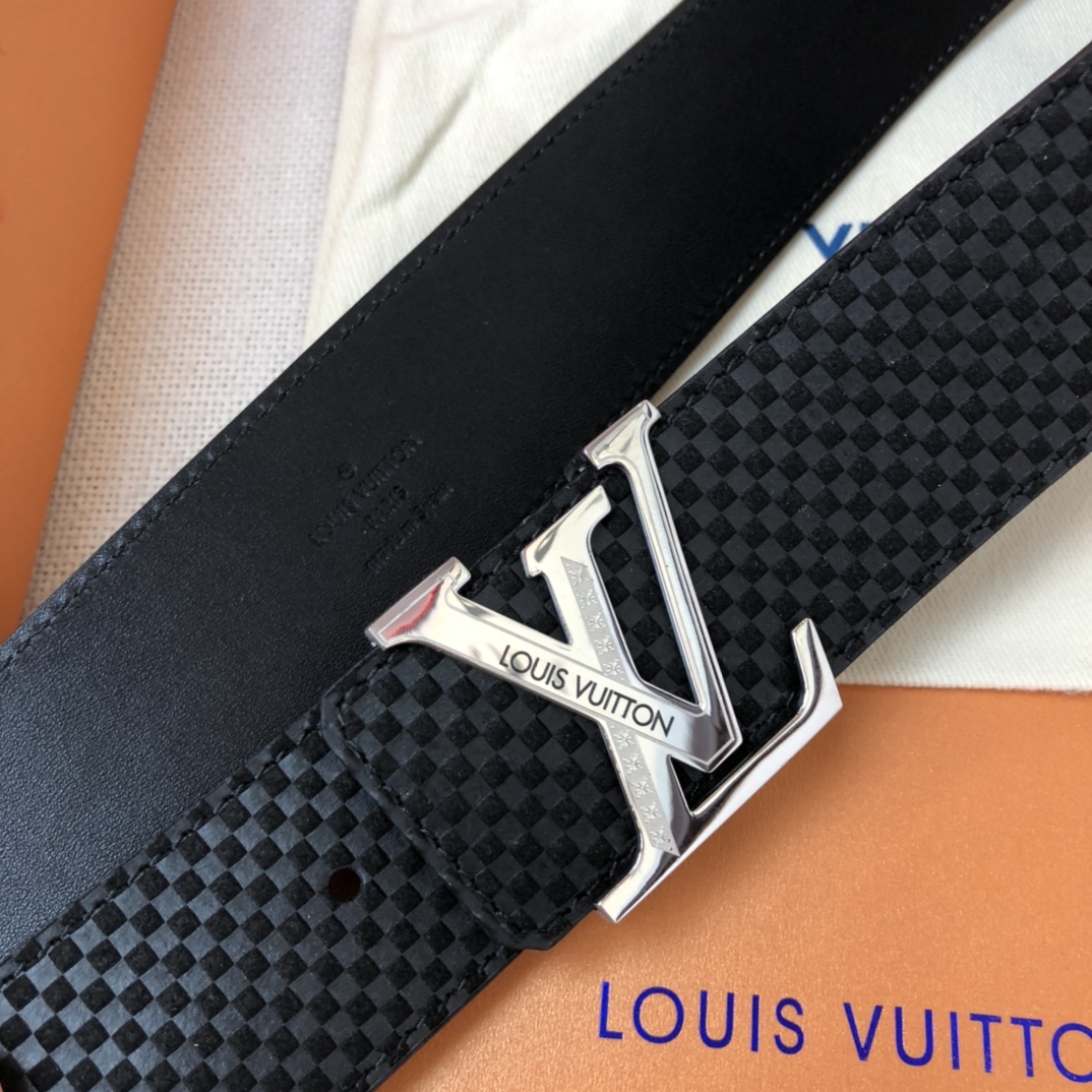 1:1 Replica Louis Vuitton Initiales LV Belt Damier Black With Silver Buckle LV Women Belt