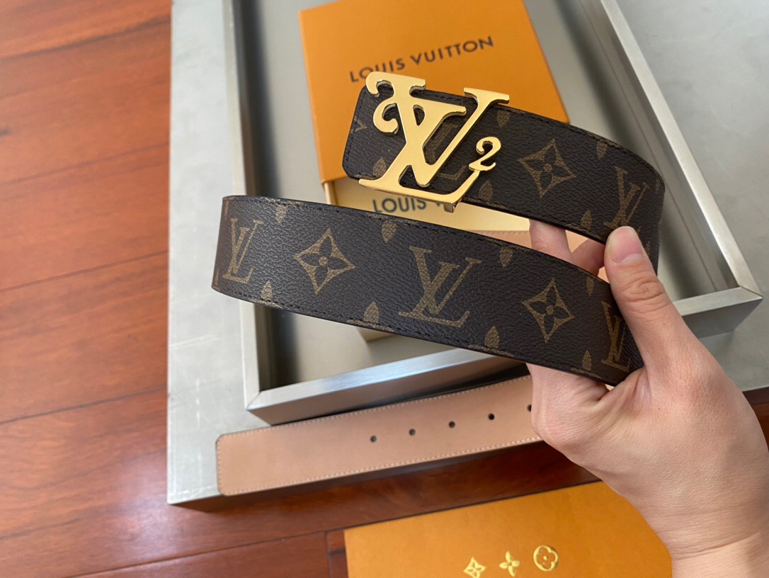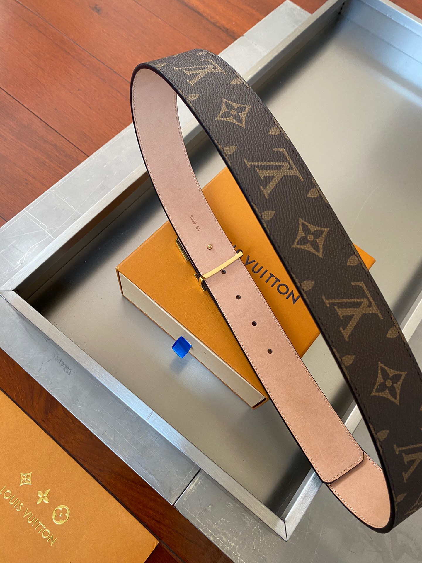 Louis Vuitton Initiales Reversible LV Belt Monogram Canvas with Gold Toned Hardware LV Women Belt