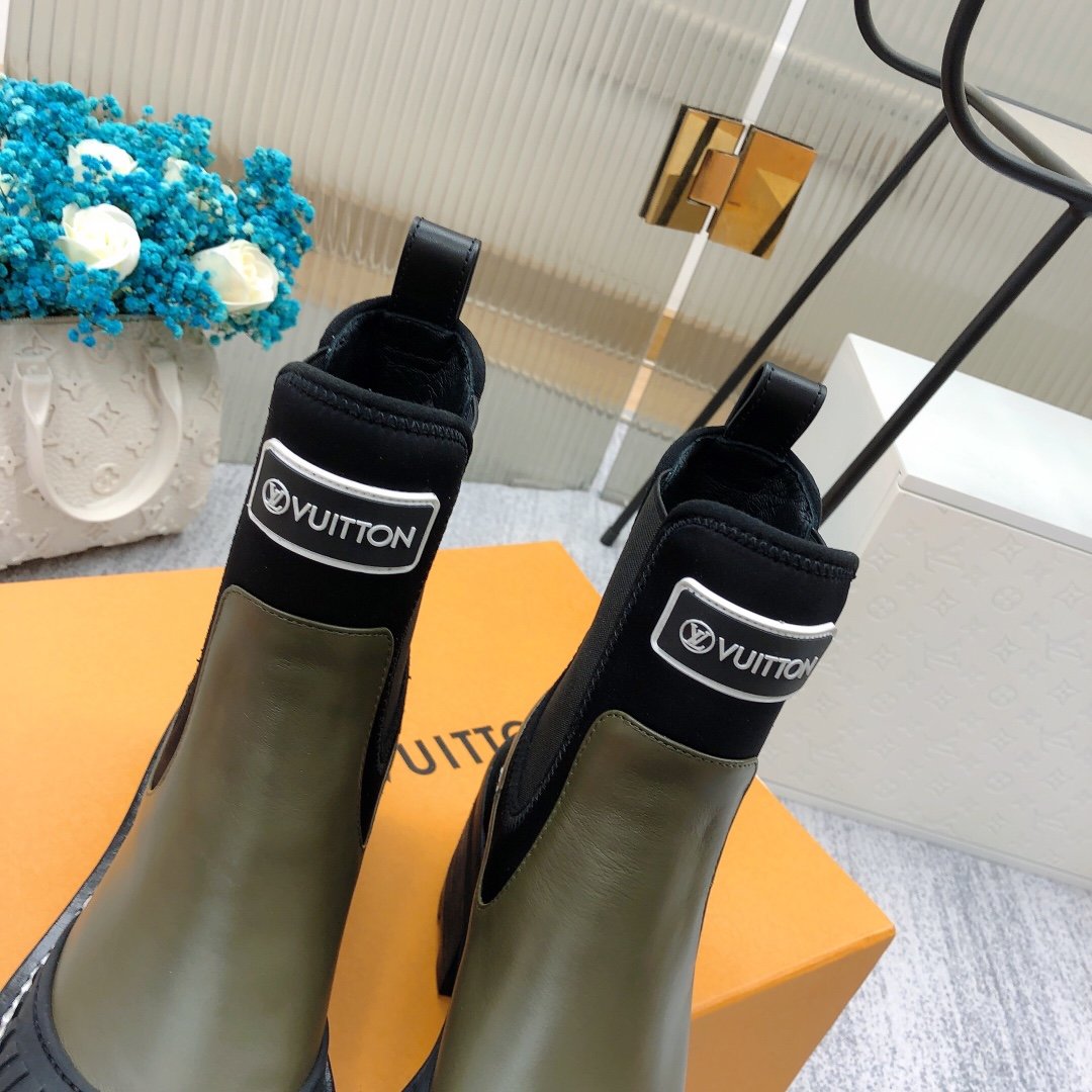 Louis Vuitton LV Beaubourg Ankle Boot Neoprene Khaki Green For Women LV 1A9GYT