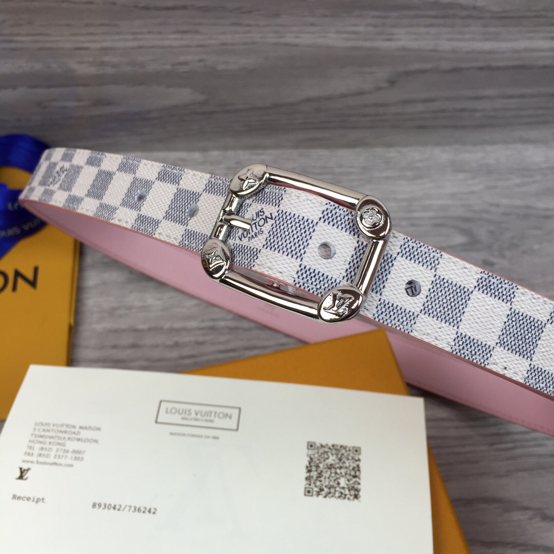 1:1 Replica Louis Vuitton LV Malletier Belt Damier Azur Silver Toned Hardware LV Women Belt