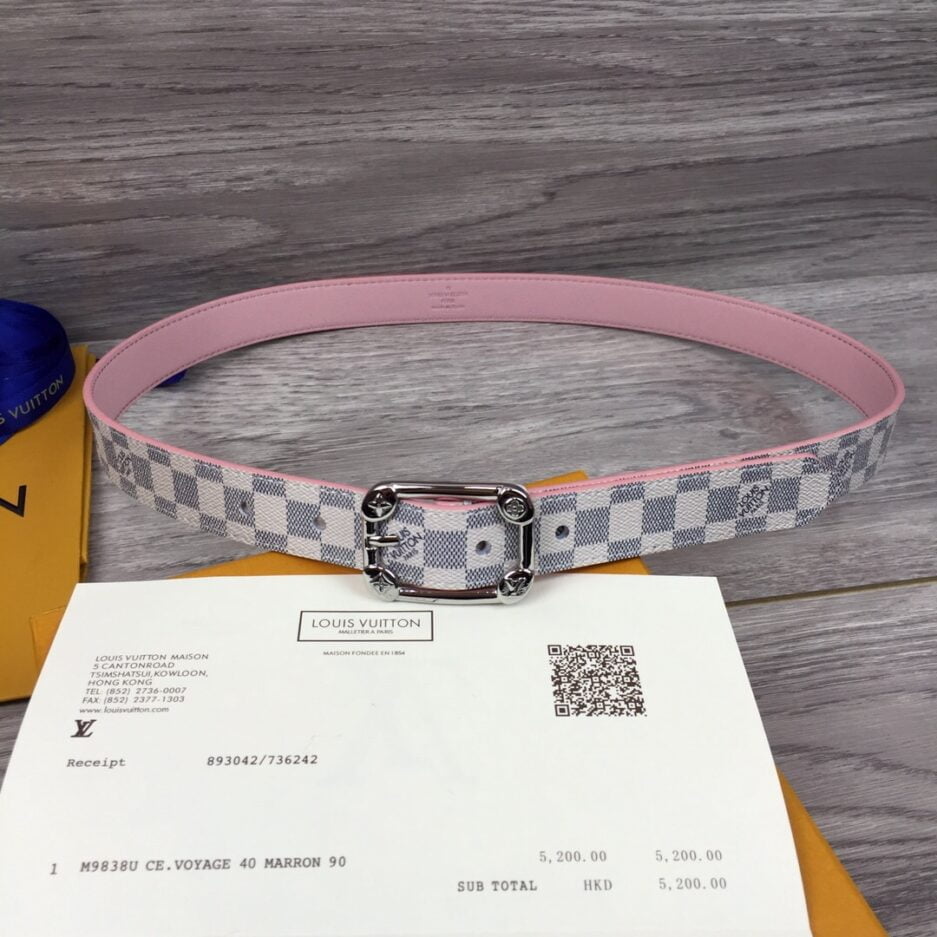 Louis Vuitton LV Malletier Belt Damier Azur Silver Toned Hardware LV Women Belt