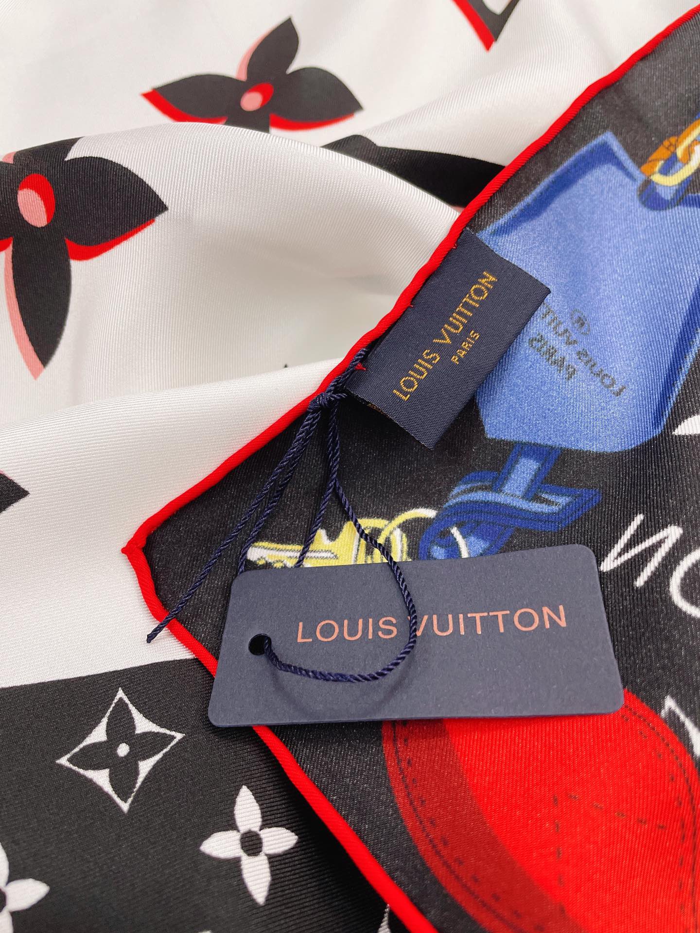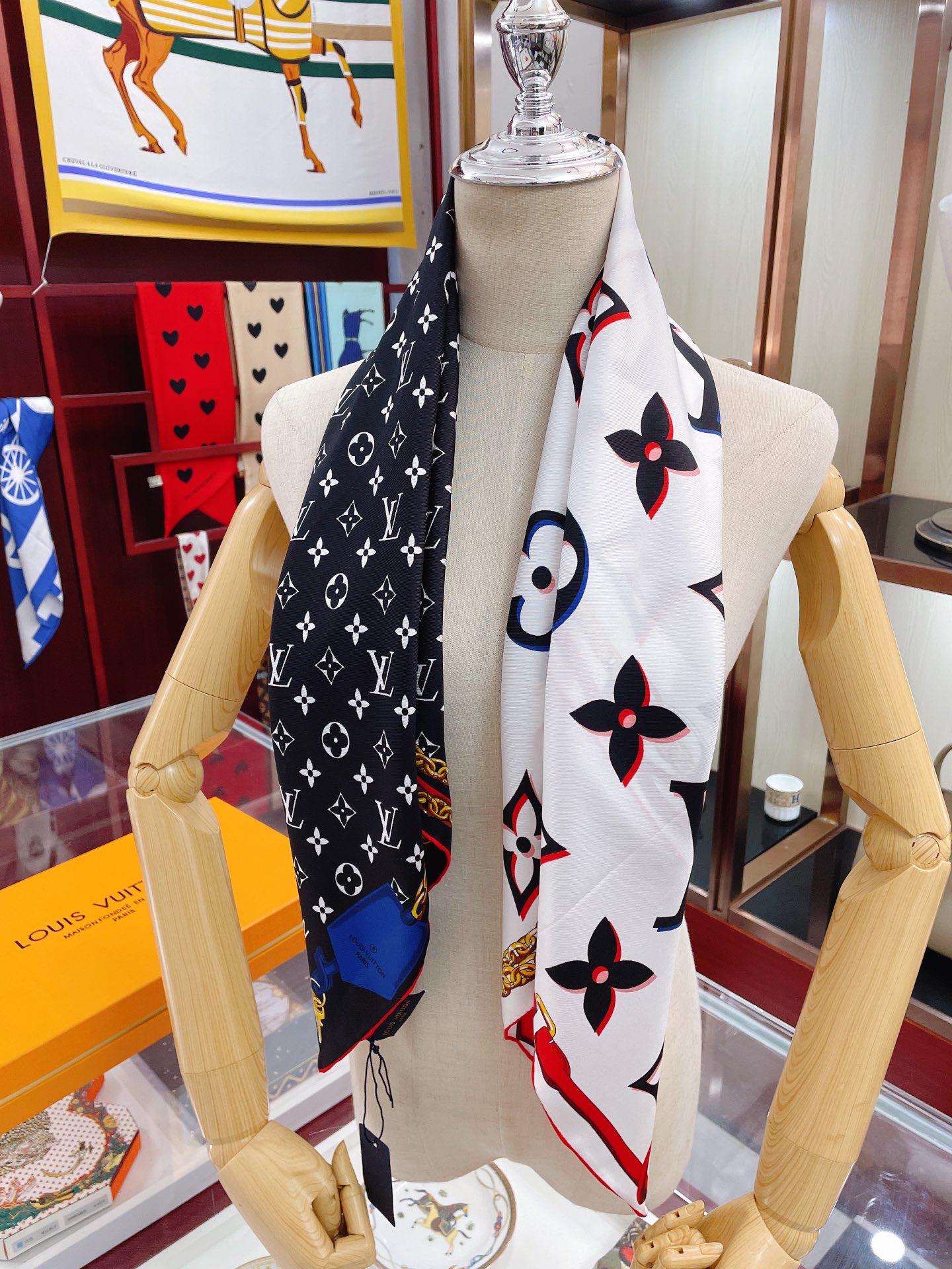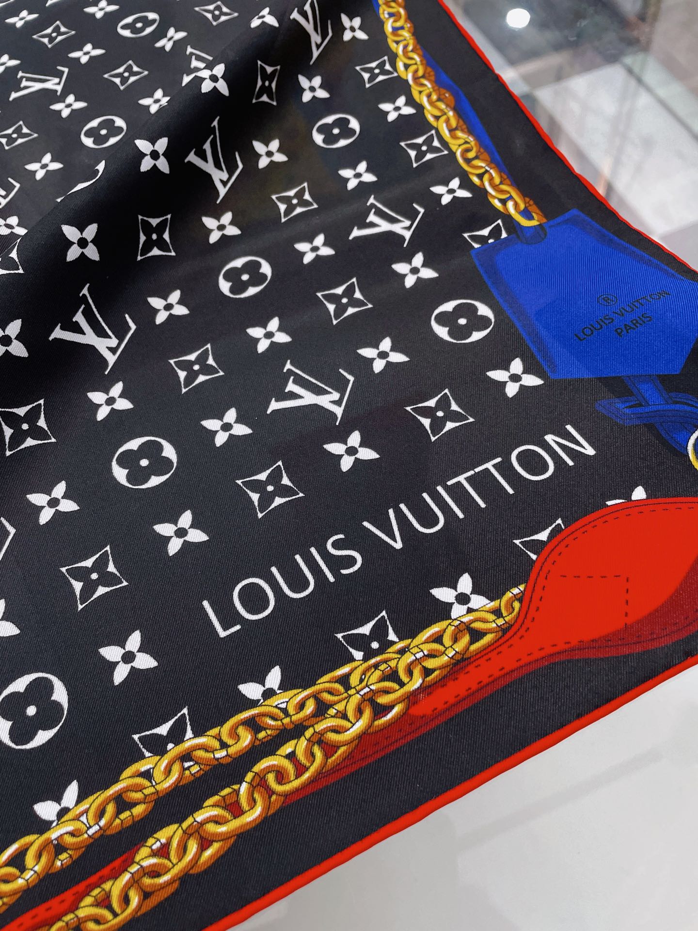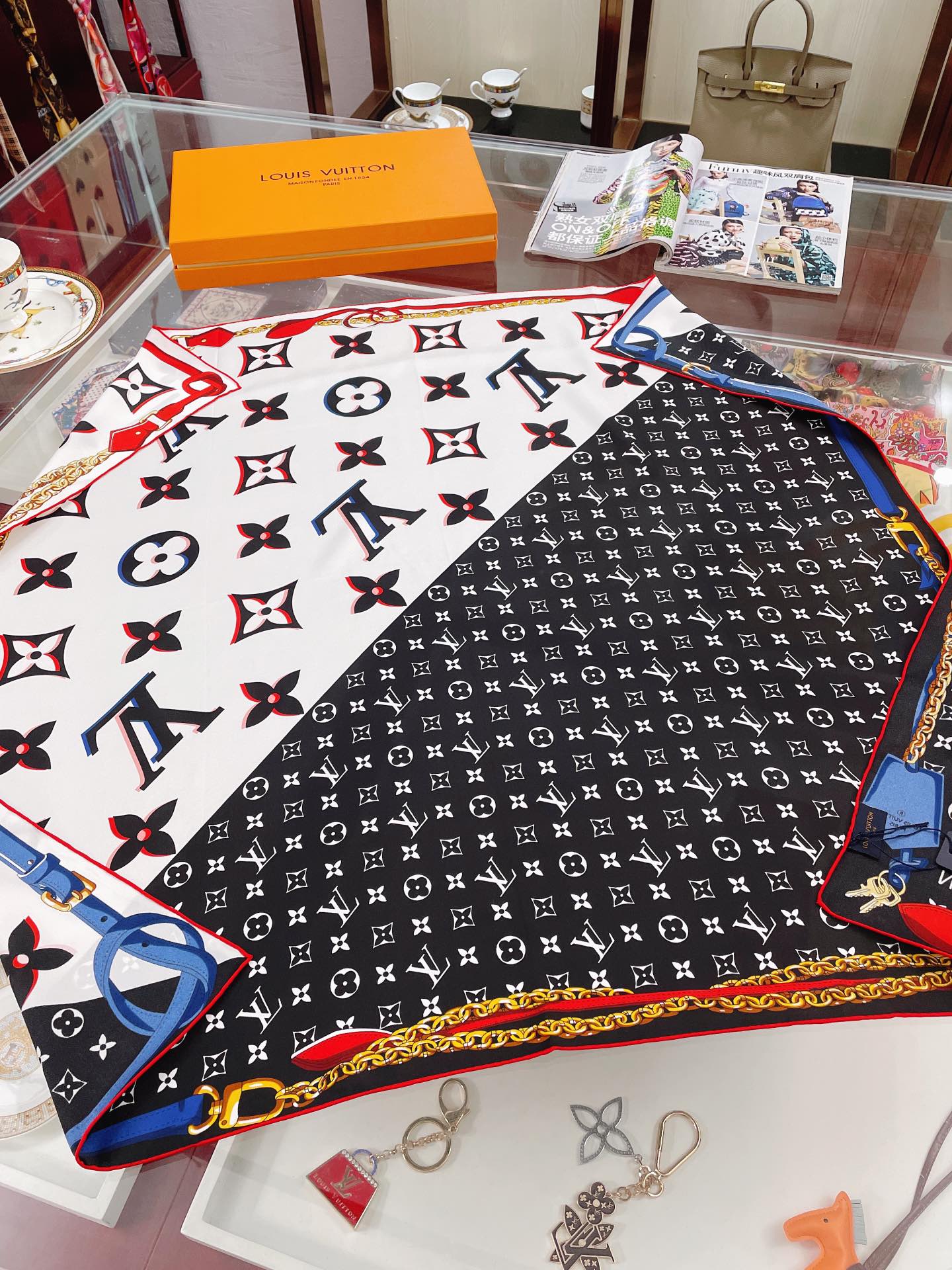 Louis Vuitton Monogram Pattern Black and White Square Scarf 90cm/35in