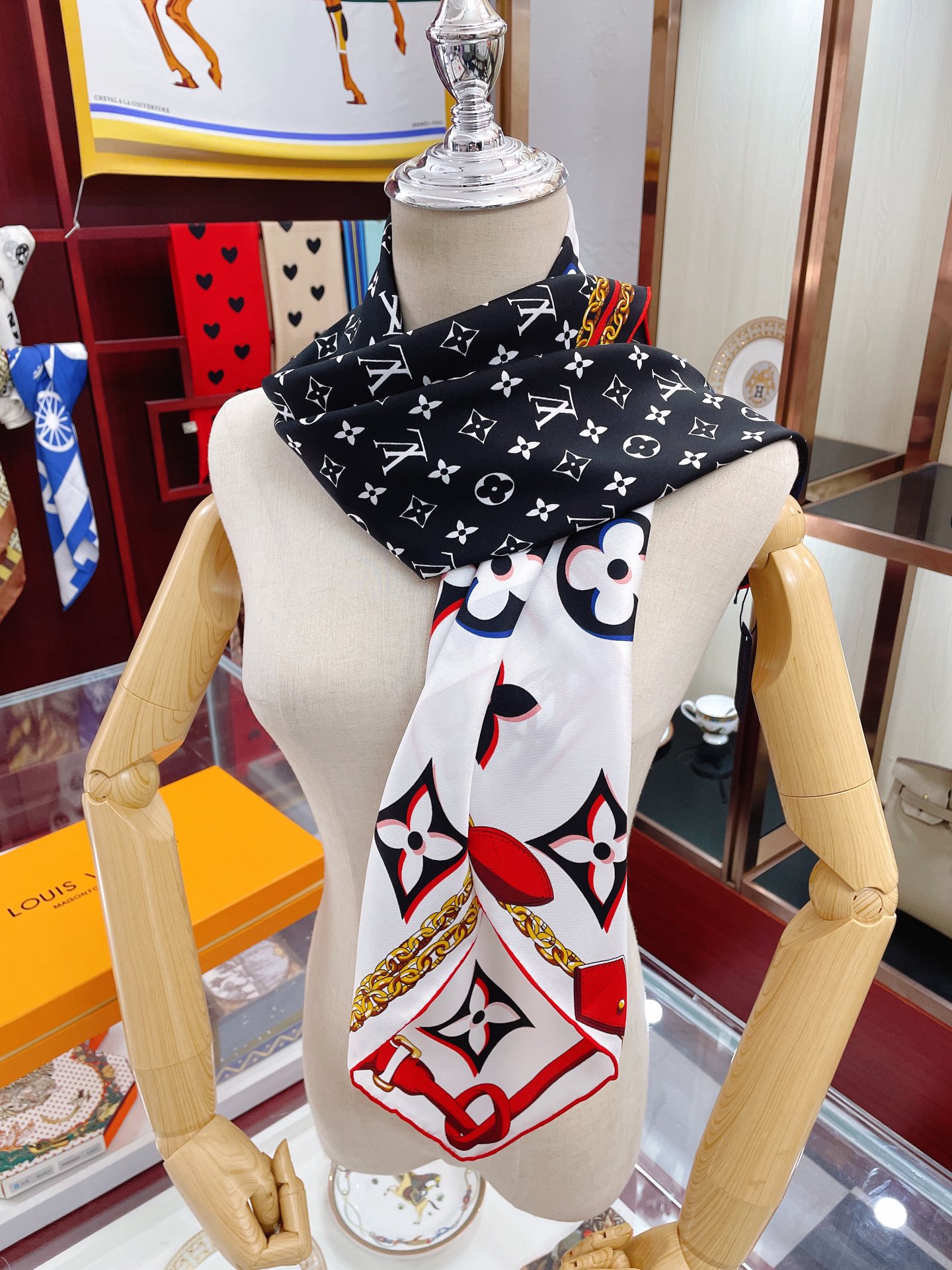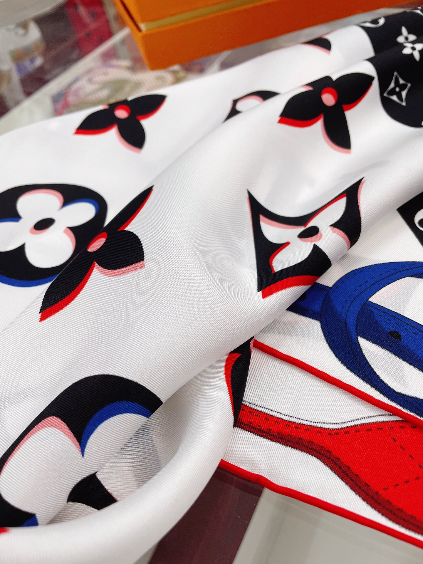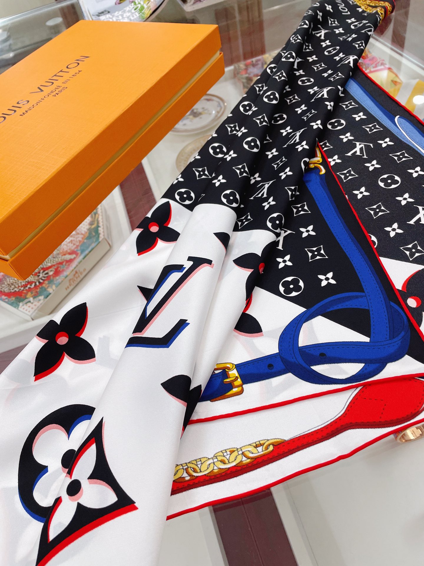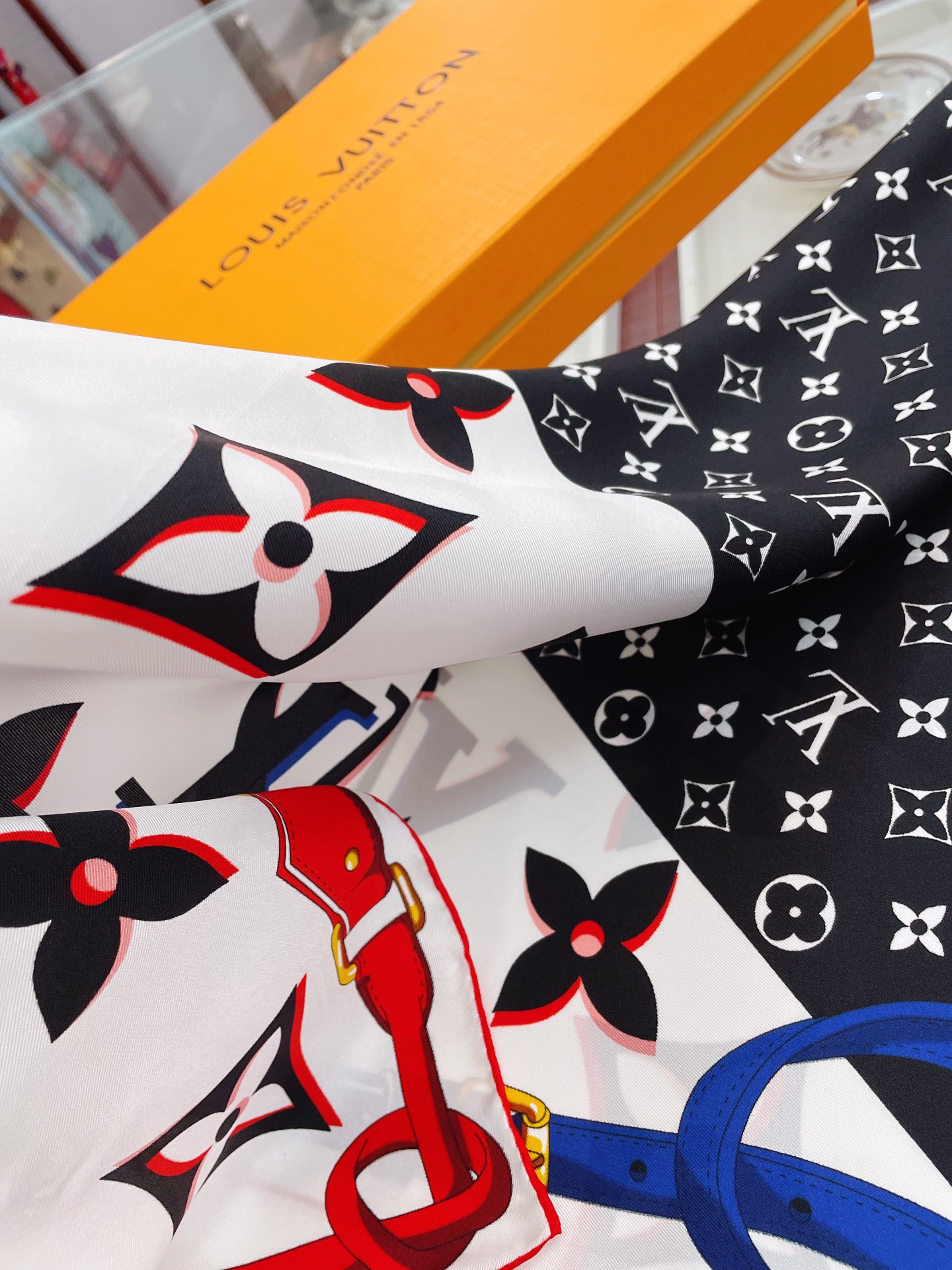 Louis Vuitton Monogram Pattern Black and White Square Scarf 90cm/35in