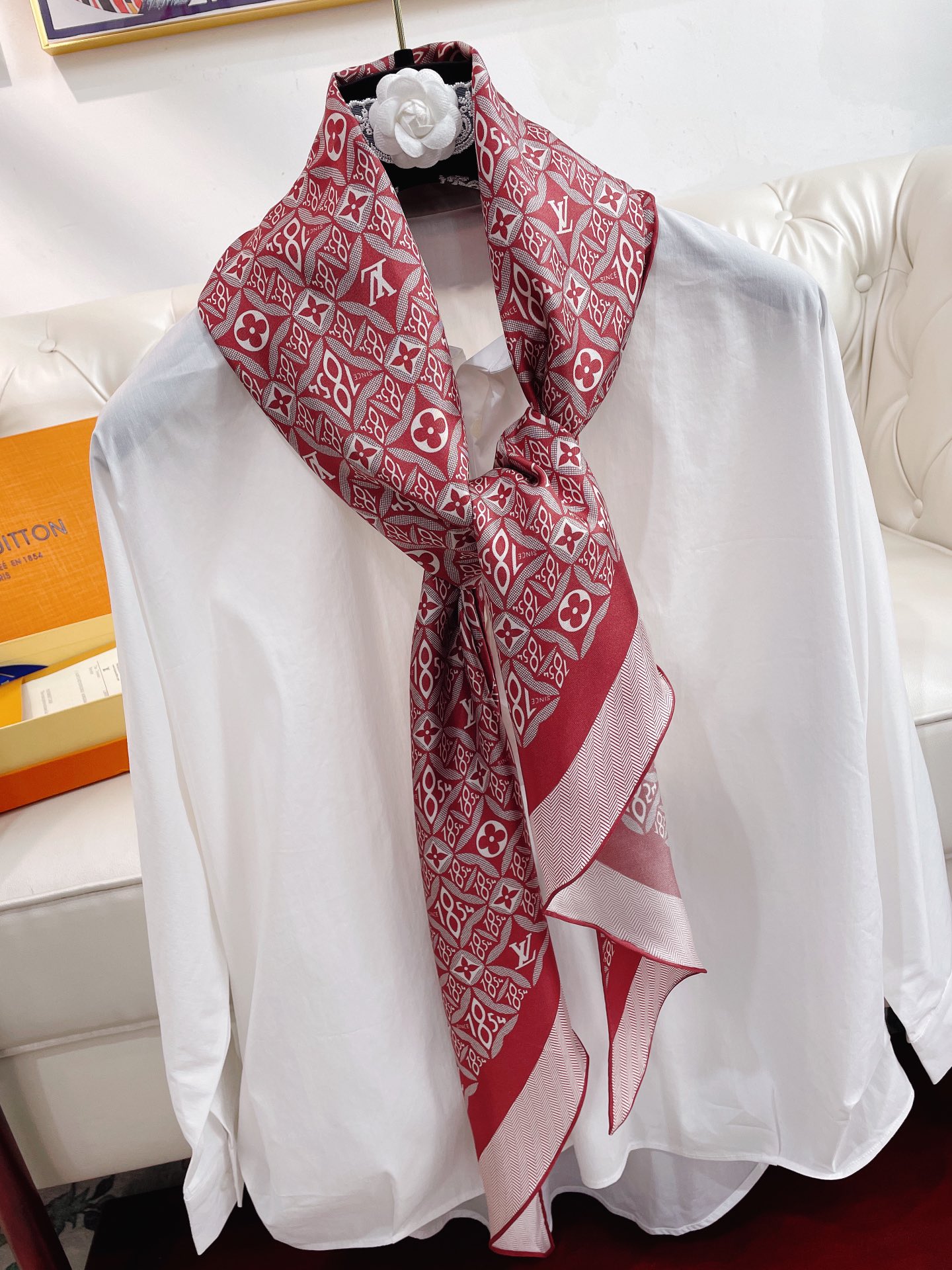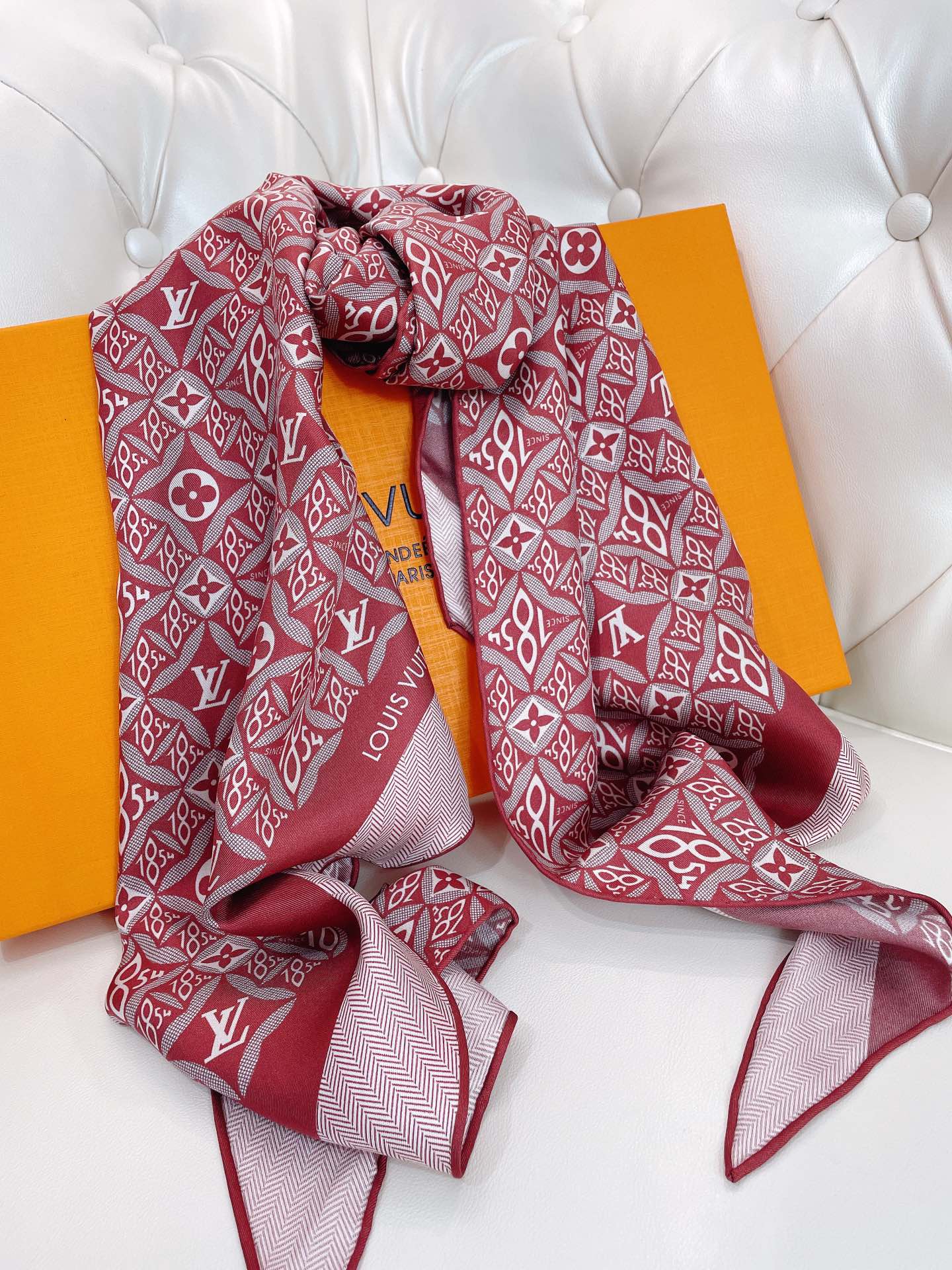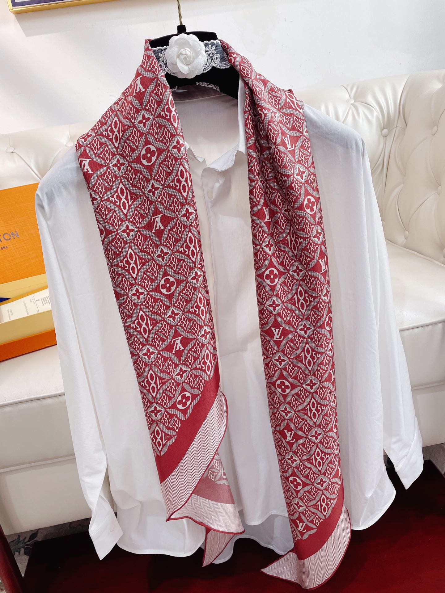 Louis Vuitton Monogram Pattern Red Scarf 175cm/69in