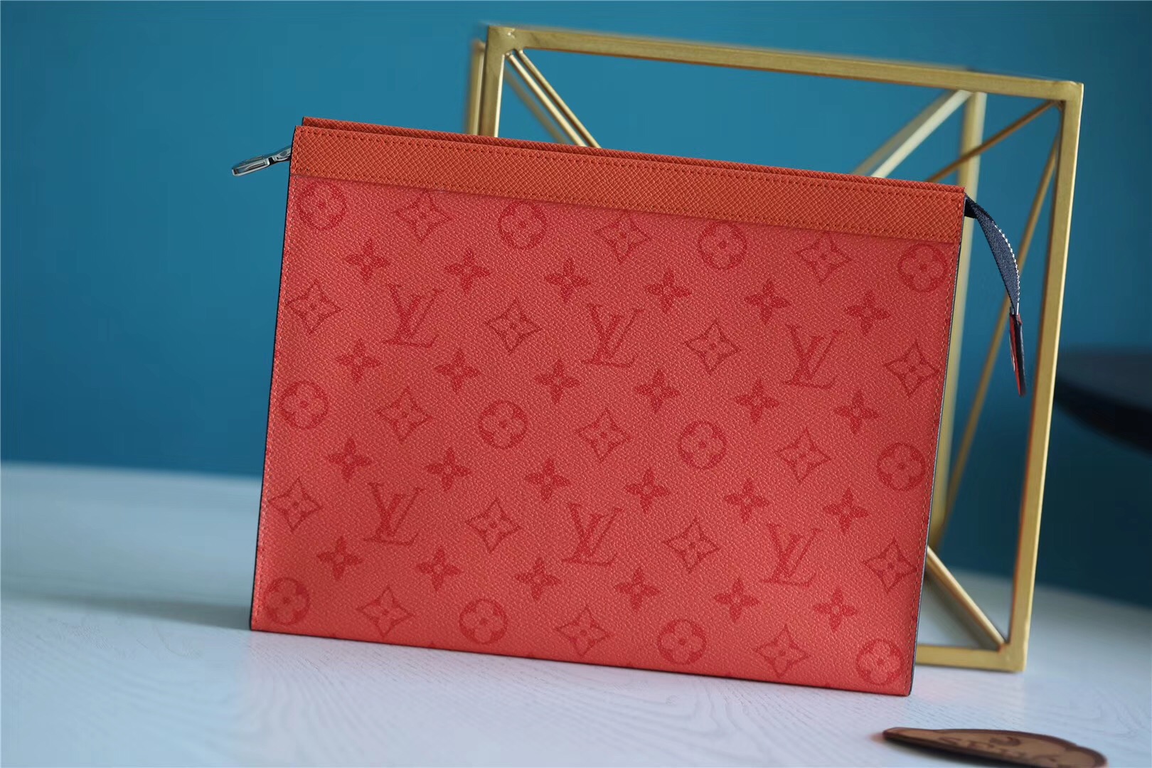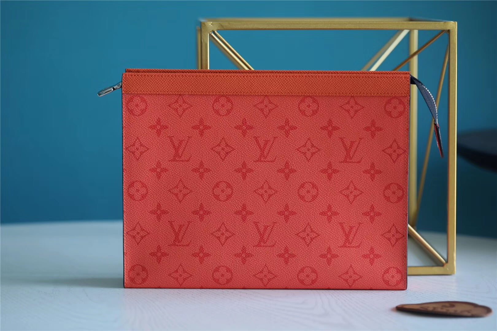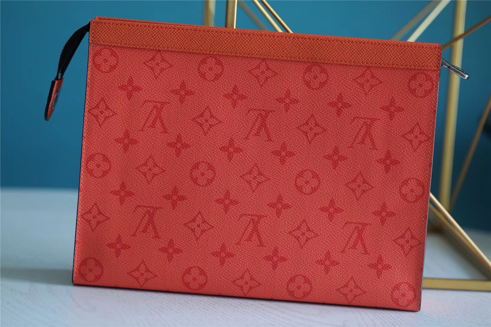 Louis Vuitton Pochette Voyage MM Taiga and Monogram Eclipse Canvas Red For Women, Women’s Wallets 10.6in/27cm LV