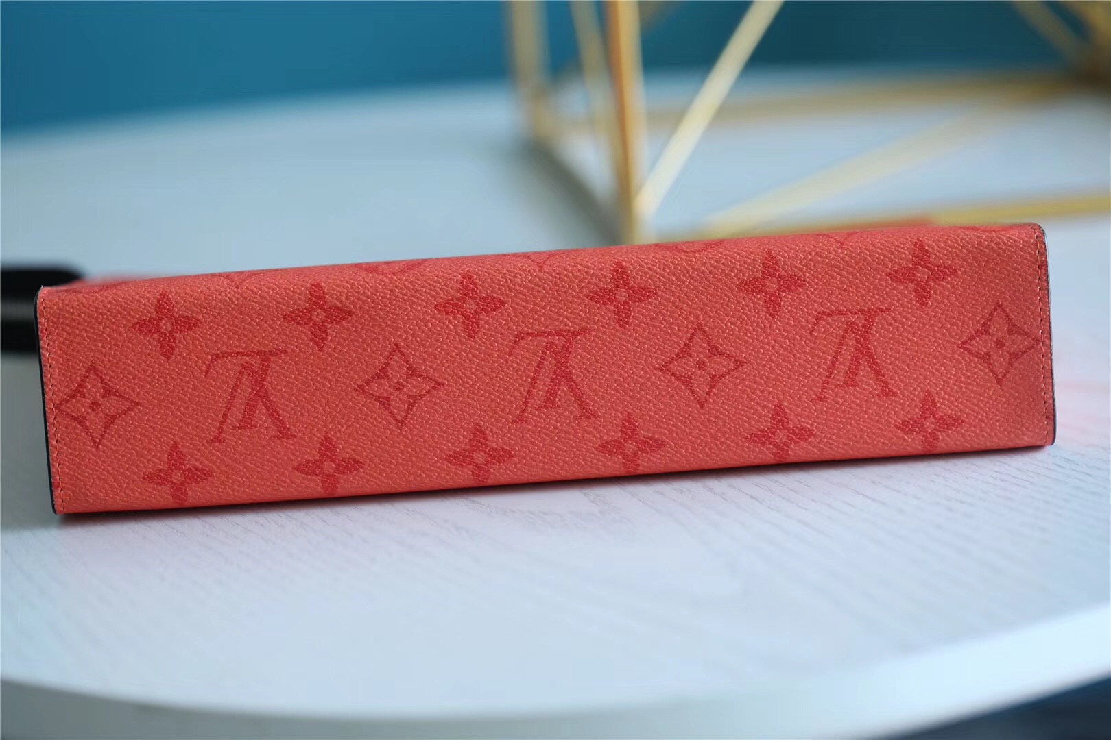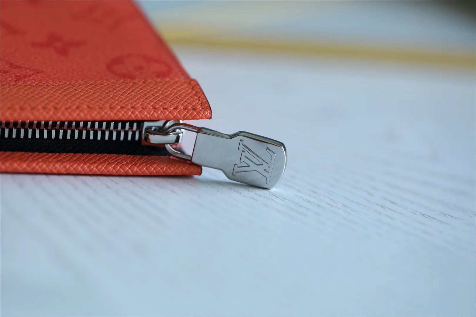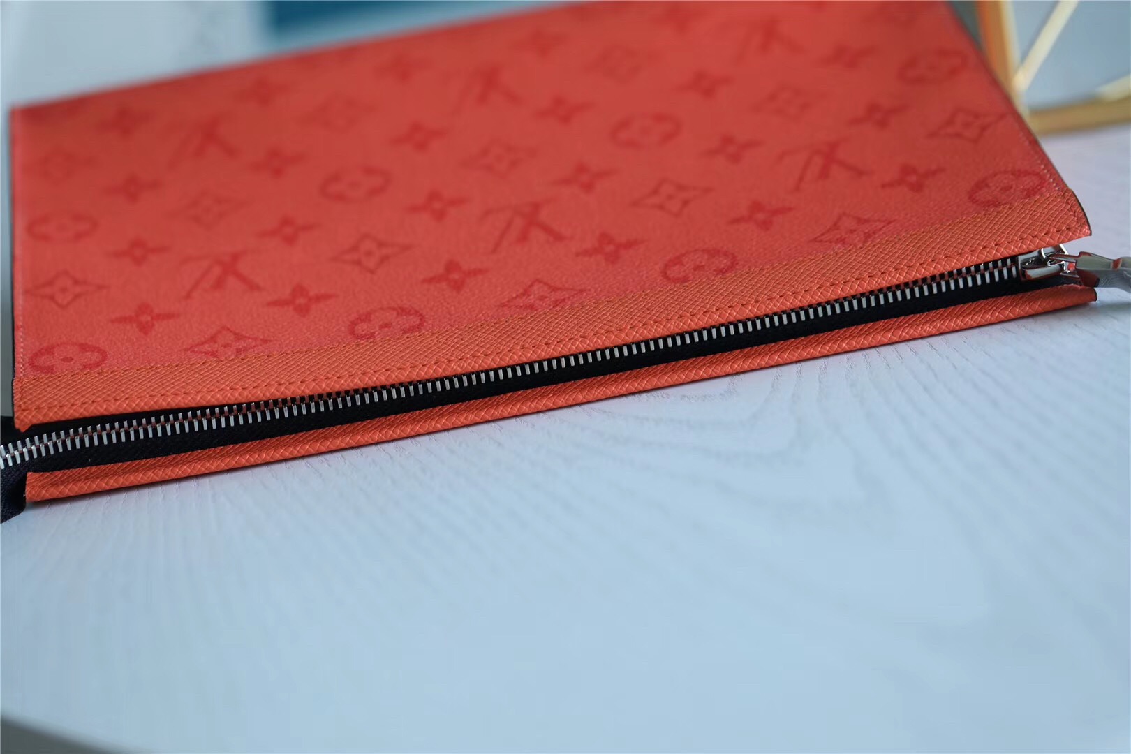 Louis Vuitton Pochette Voyage MM Taiga and Monogram Eclipse Canvas Red For Women, Women’s Wallets 10.6in/27cm LV