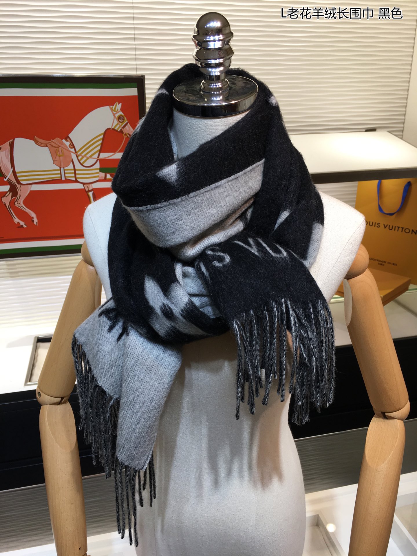 Louis Vuitton Reykjavik Scarf Black 75in/190cm M71040
