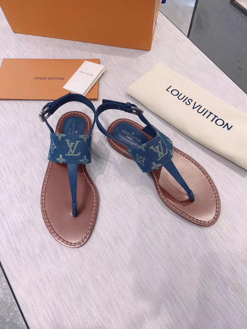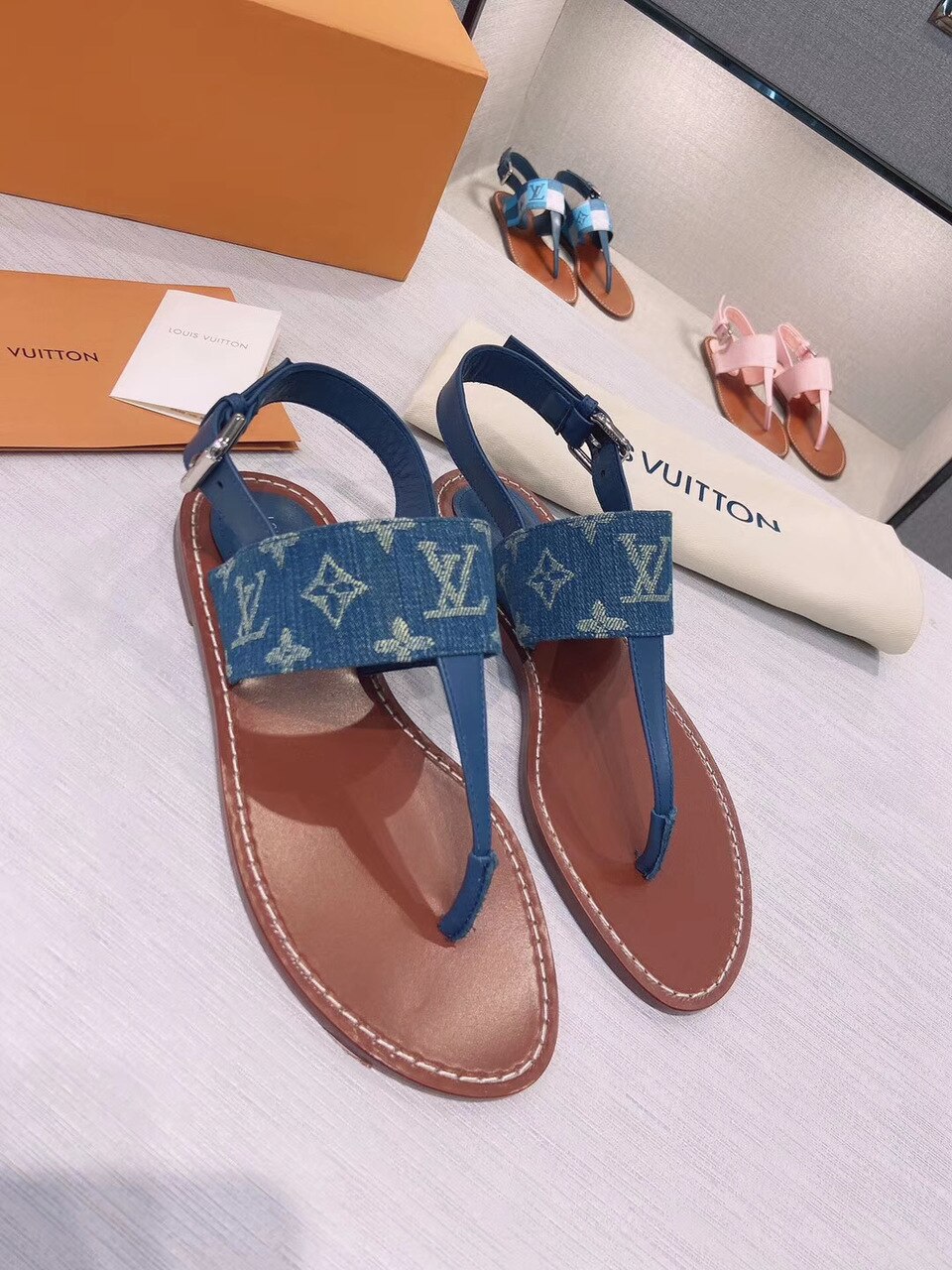 Louis Vuitton Starboard Flat Thong Sandal Monogram Denim Blue For Women LV 1A7RDP