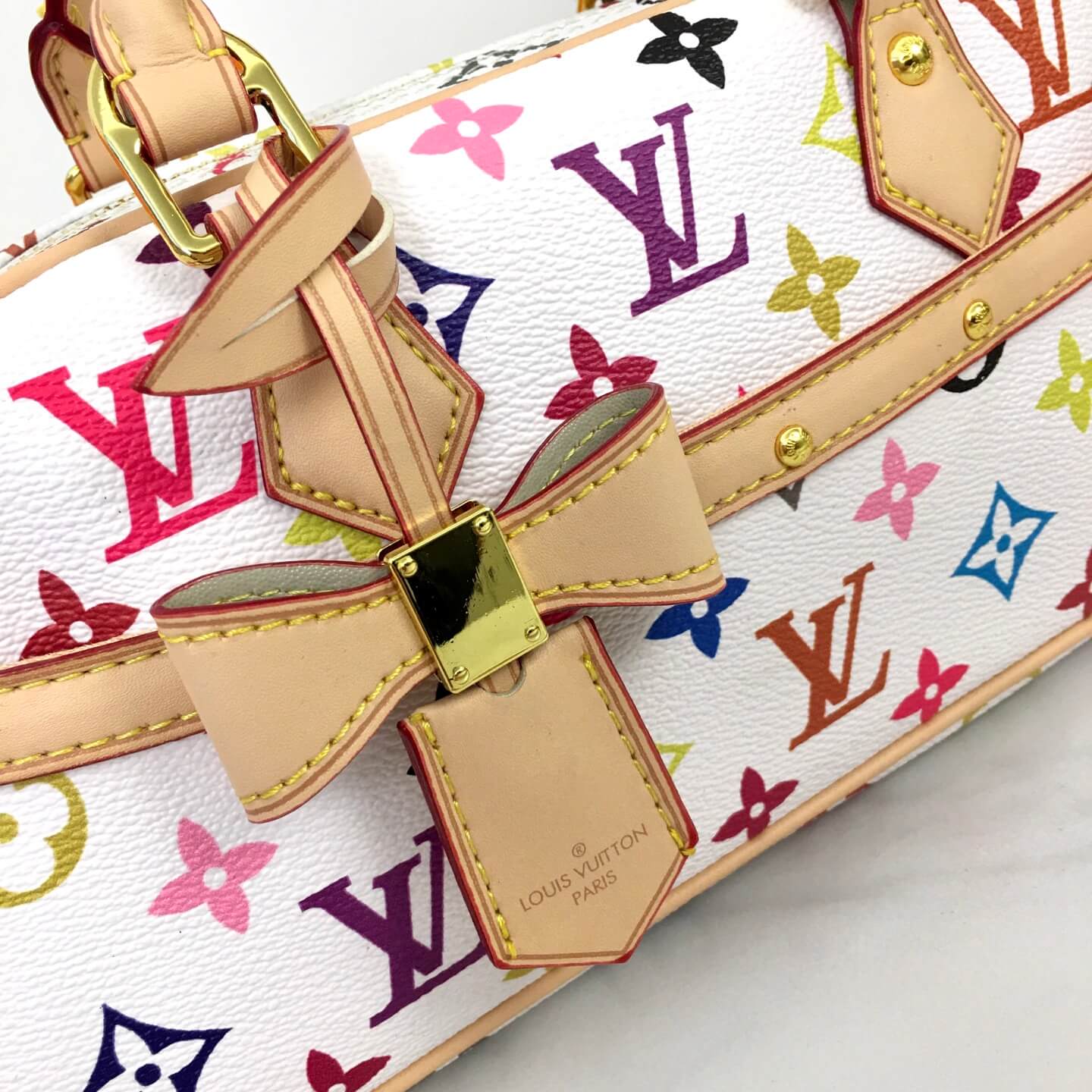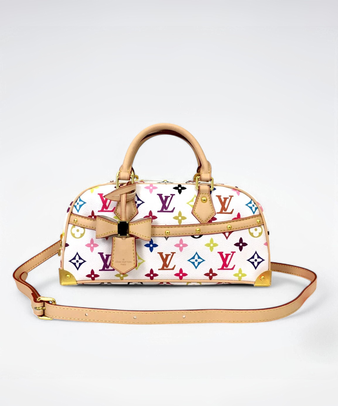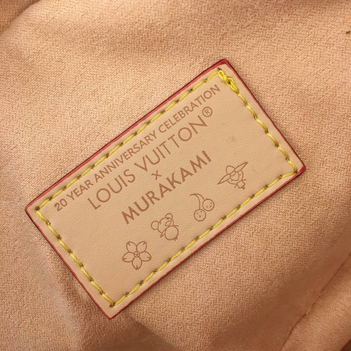 As part of the re-editon of the Louis Vuitton x Murakami collection, the Handbag East West is signed all over with a Monogram motif that has been joyfully reimagined with the Japanese artist’s signature rainbow hues. The sleek east-west design is detailed with emblematic natural cowhide leather details, including two top handles, a rebellious studded lateral band, an adjustable shoulder a removable strap and an exclusive LV x TM keybell, while golden corners nod to the House’s heritage travel trunks.