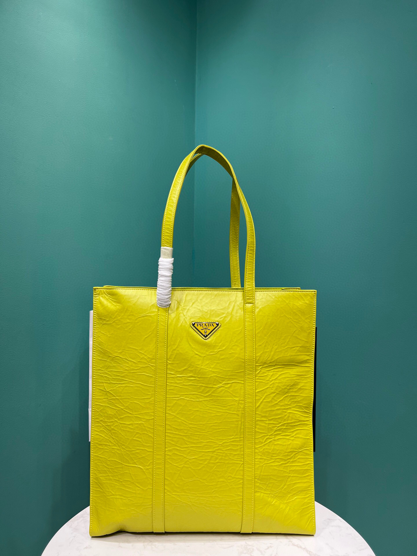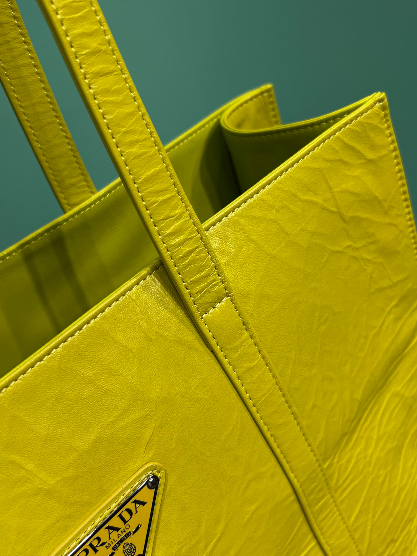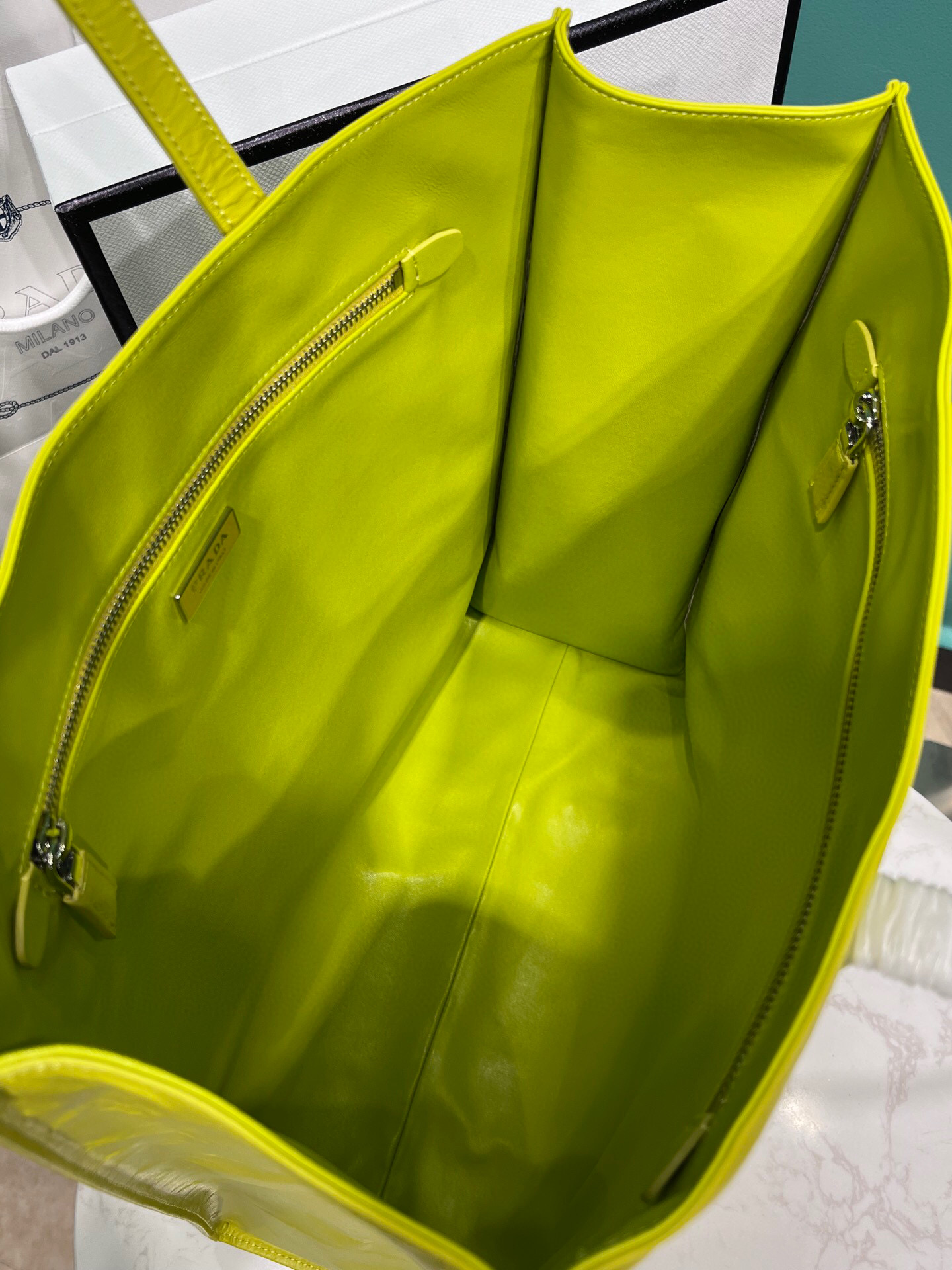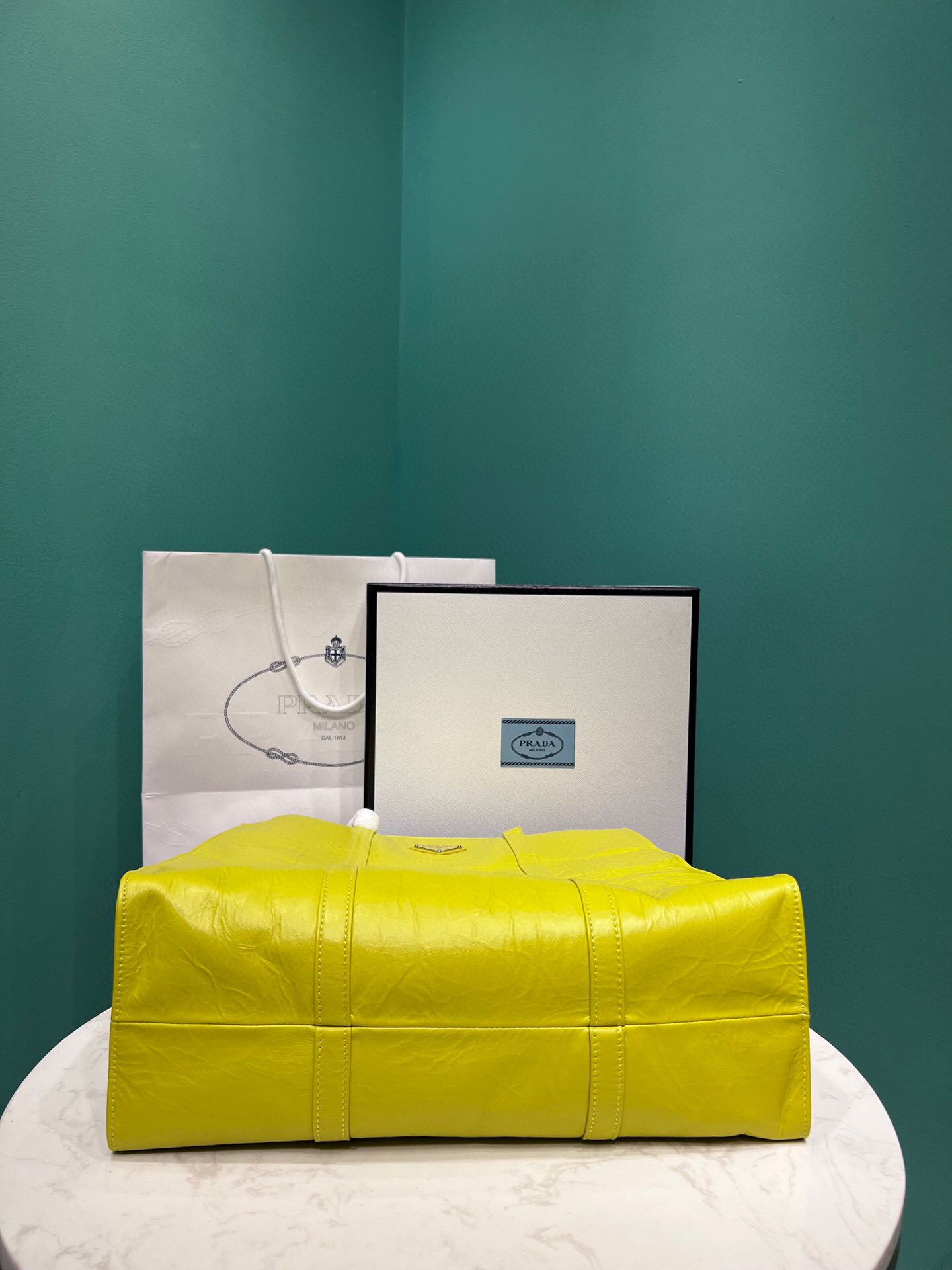 Prada Medium Antiqued Nappa Tote Bag In Yellow/Green