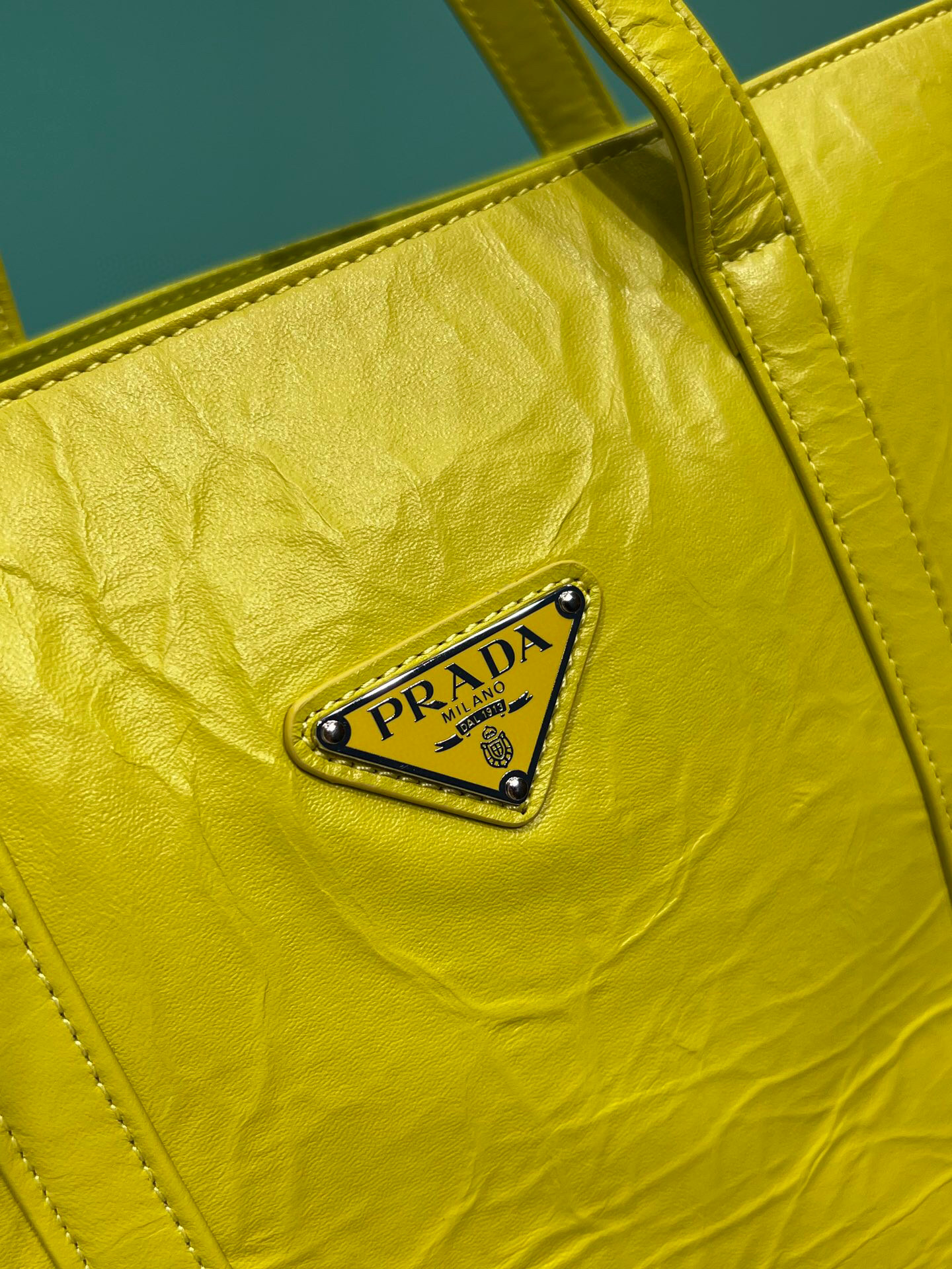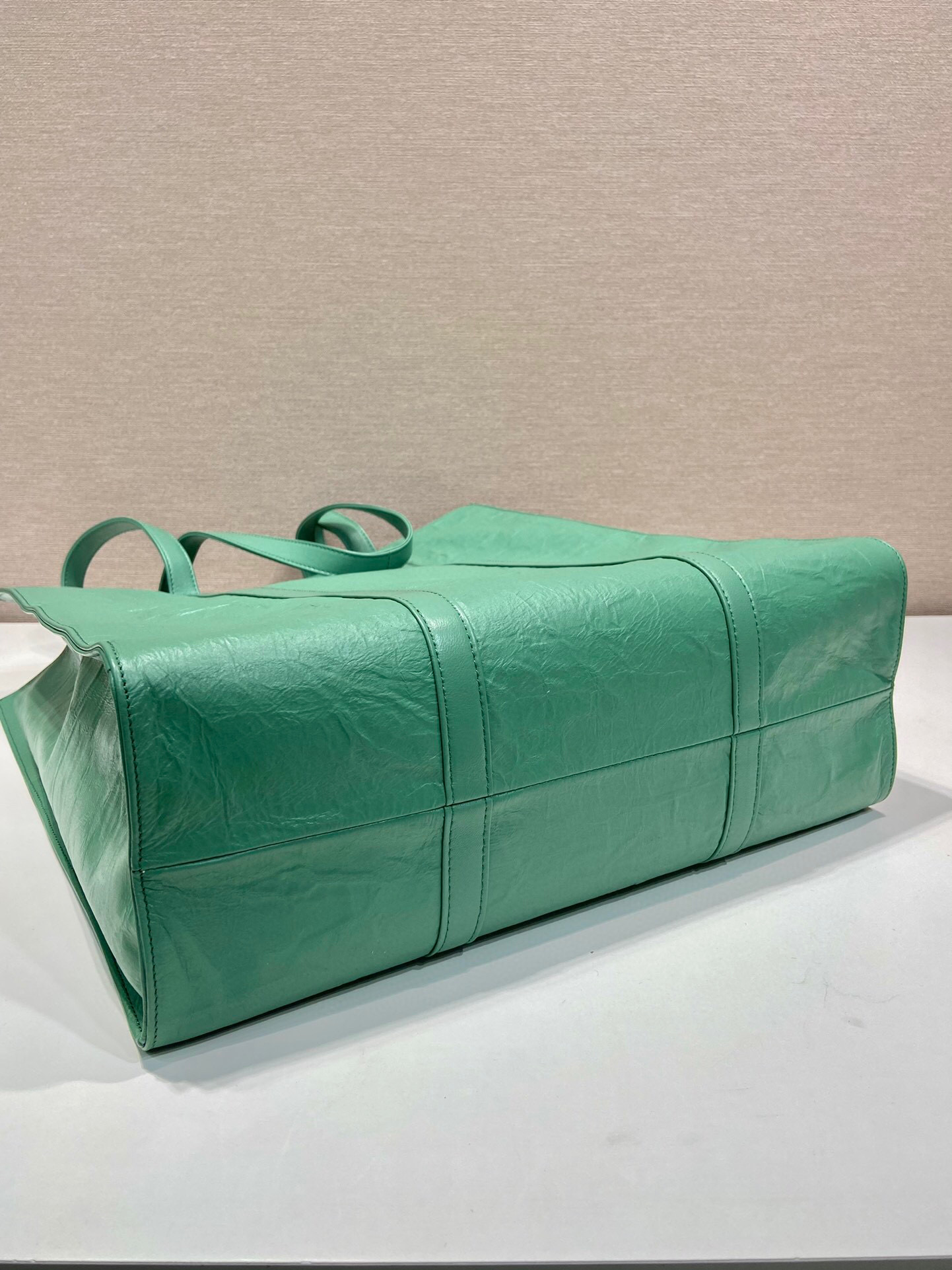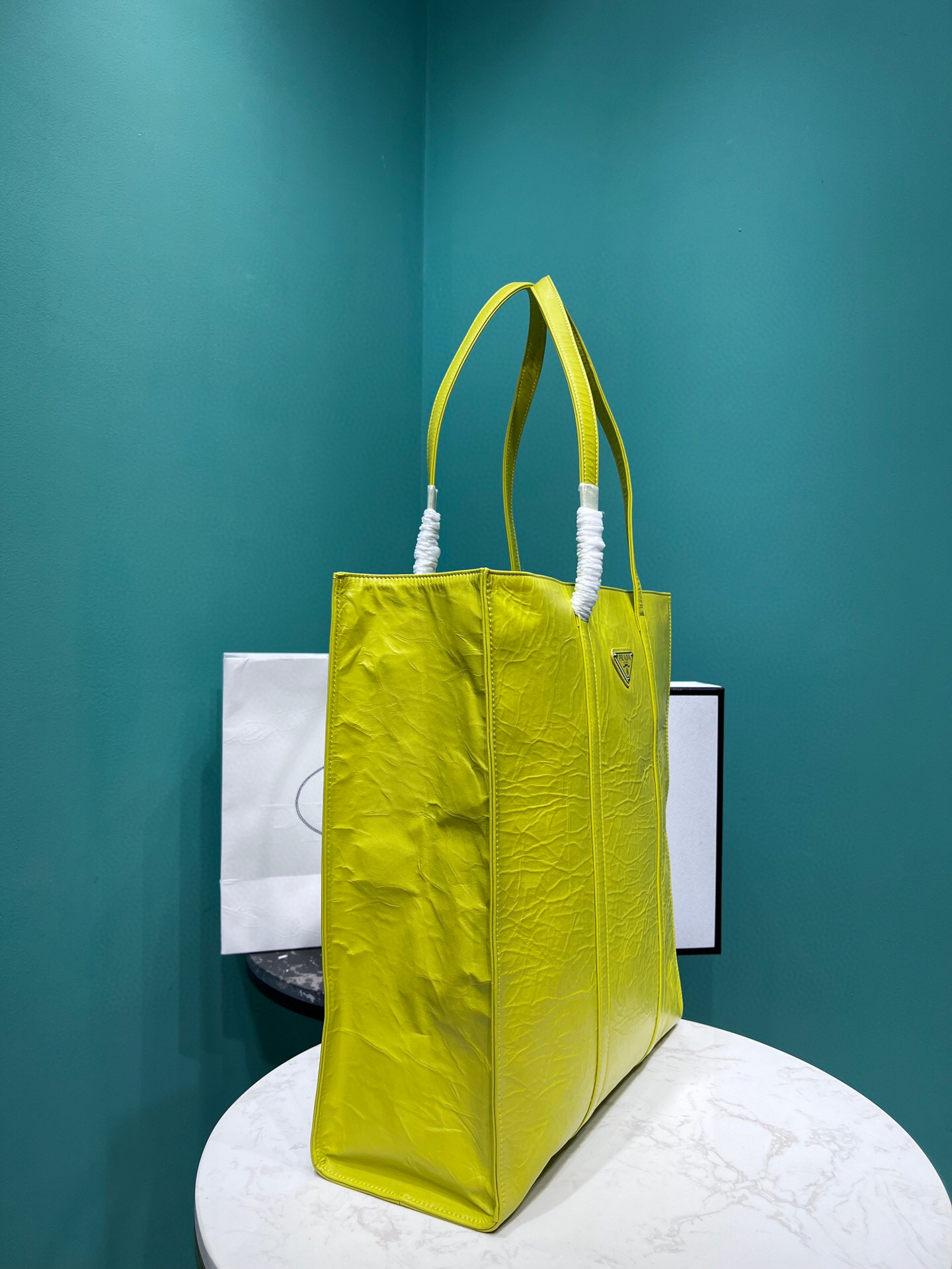 Prada Medium Antiqued Nappa Tote Bag In Yellow/Green