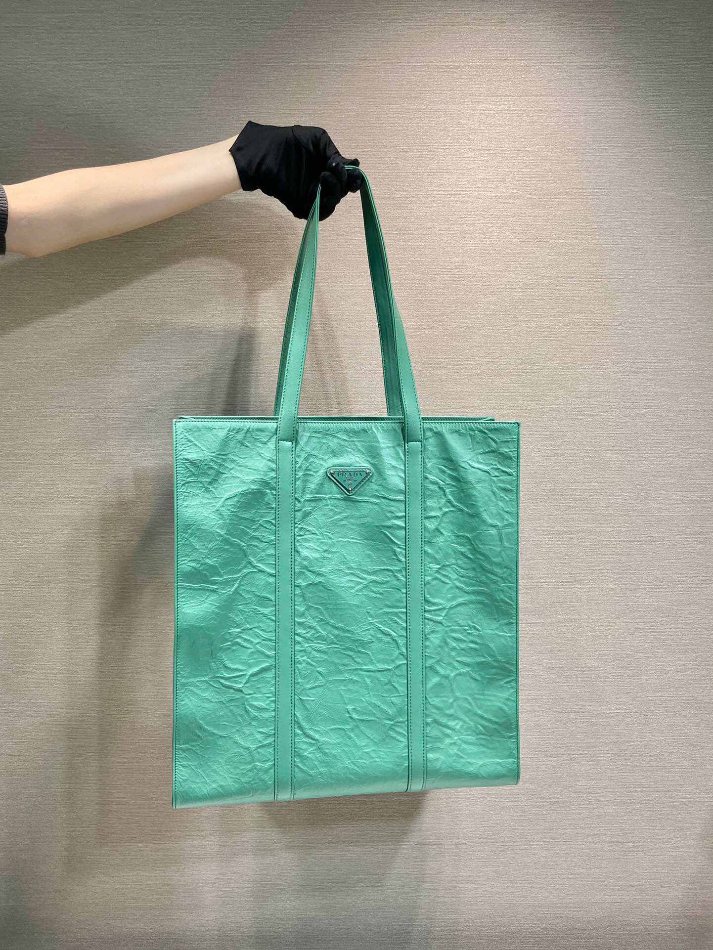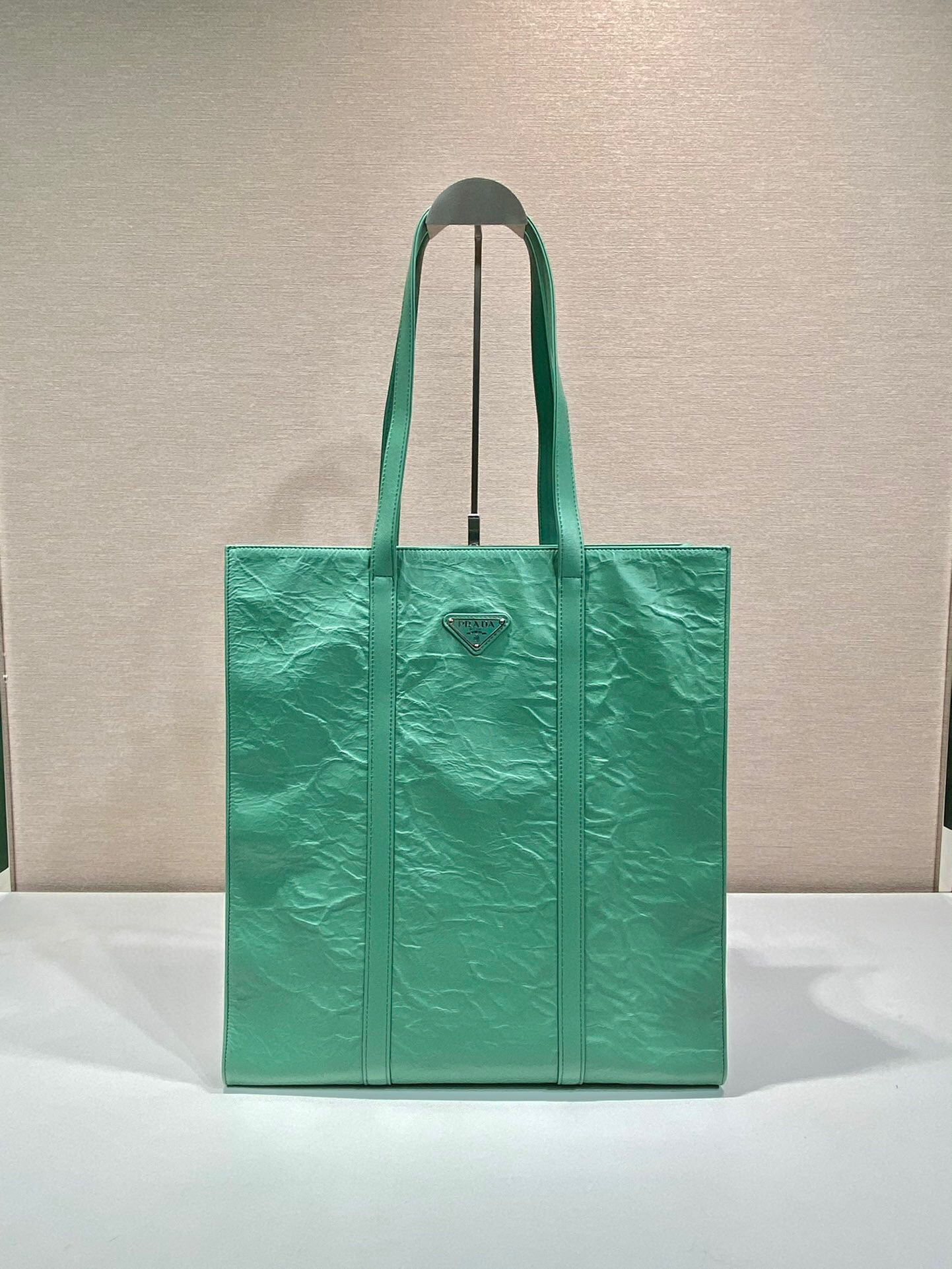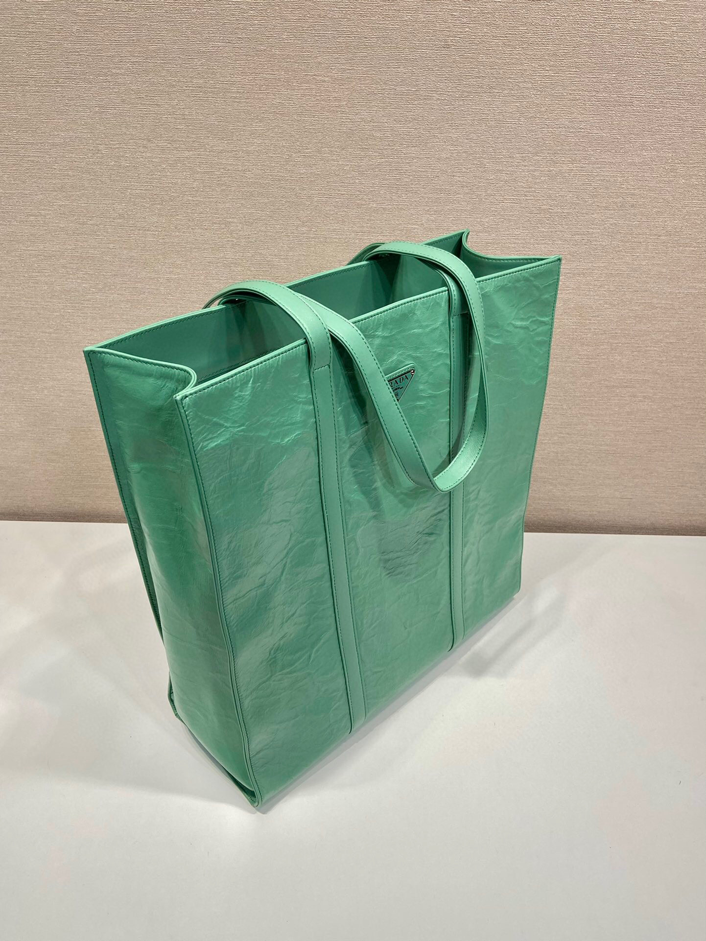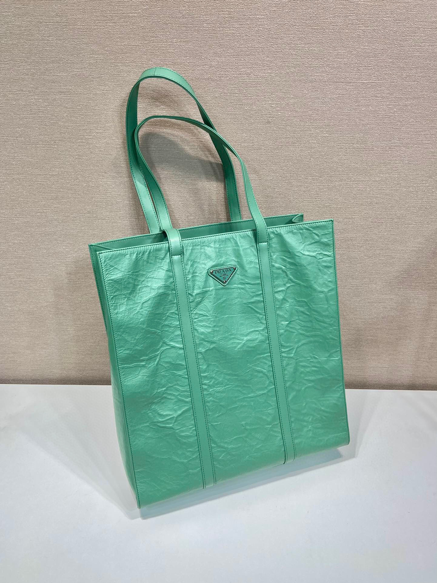 Prada Medium Antiqued Nappa Tote Bag In Yellow/Green