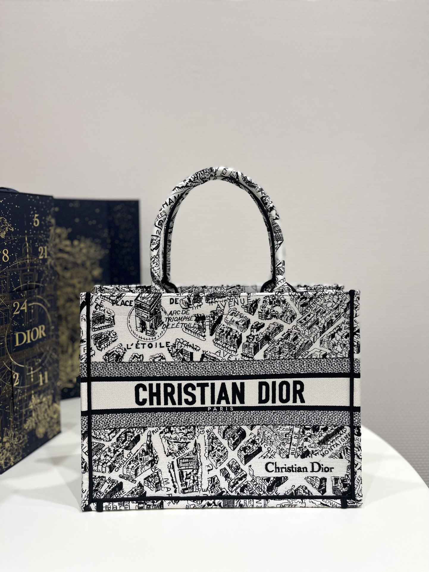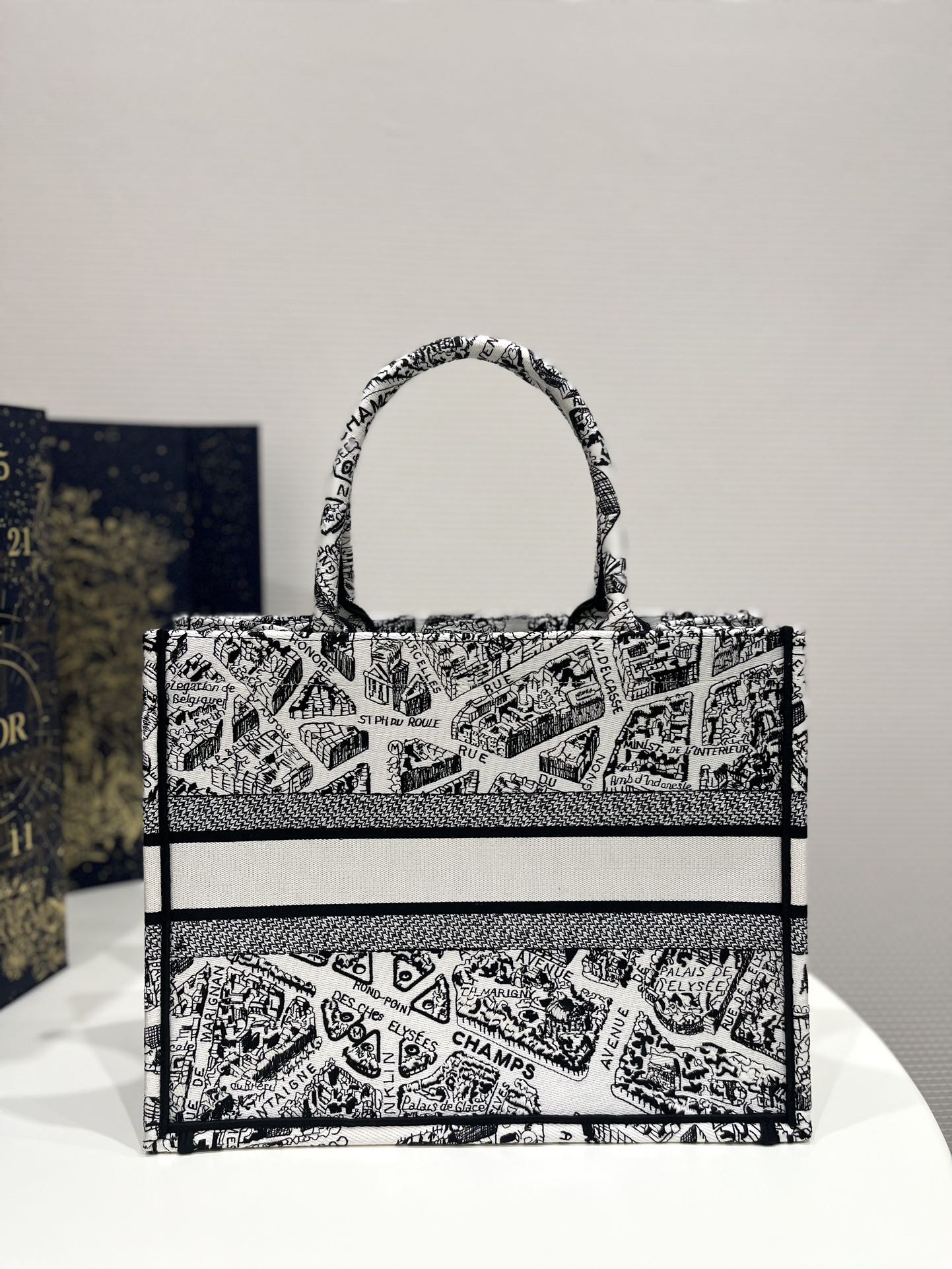 Christian Dior Medium Dior Tote Bag Black And – M1296ZOMP_M041