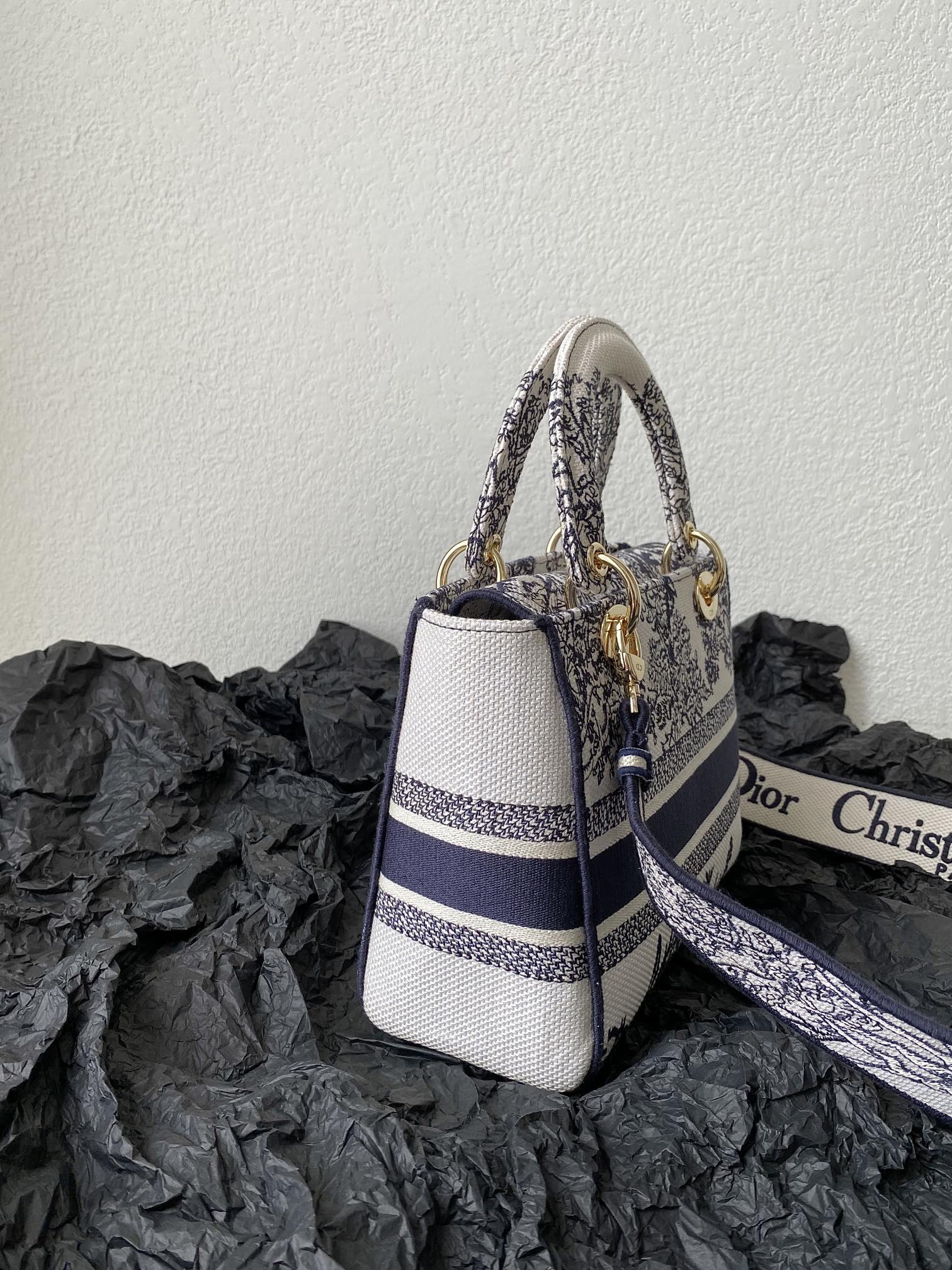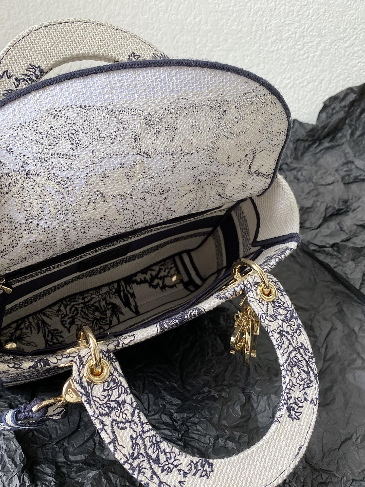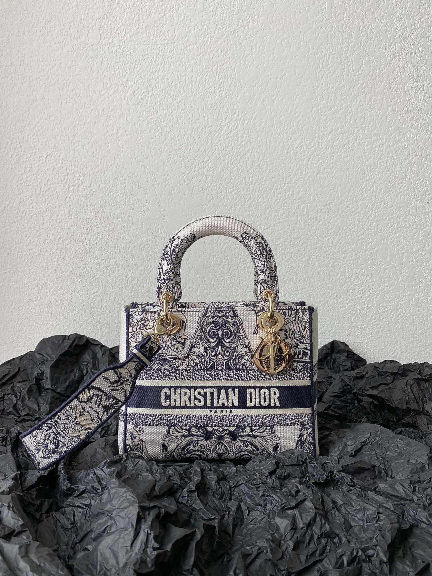 The Lady D-Lite bag combines classic elegance with House modernity. The style is fully embroidered with the season’s signature black and white Plan de Paris motif, inspired by House archives and centered around Dior’s historic address on Avenue Montaigne. The front features a Christian Dior Paris signature while the D.I.O.R. charms in pale gold-finish metal embellish and illuminate the silhouette. Equipped with a wide, reversible and removable embroidered shoulder strap, the medium Lady D-Lite bag can be carried by hand or worn crossbody.