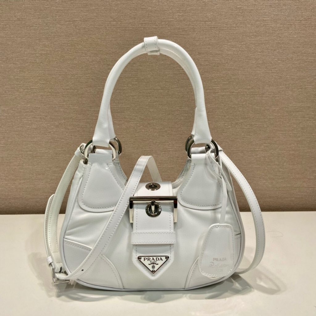 • Prada Brushed Leather Shoulder White Bag For Women 1BD345_ZO6_F02EU_V_HTO- 24 Cm/ 9.4 Inches